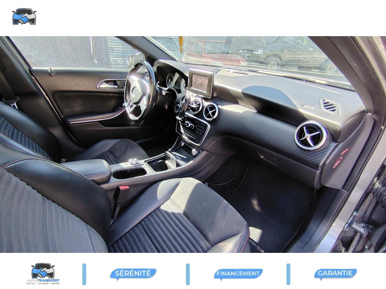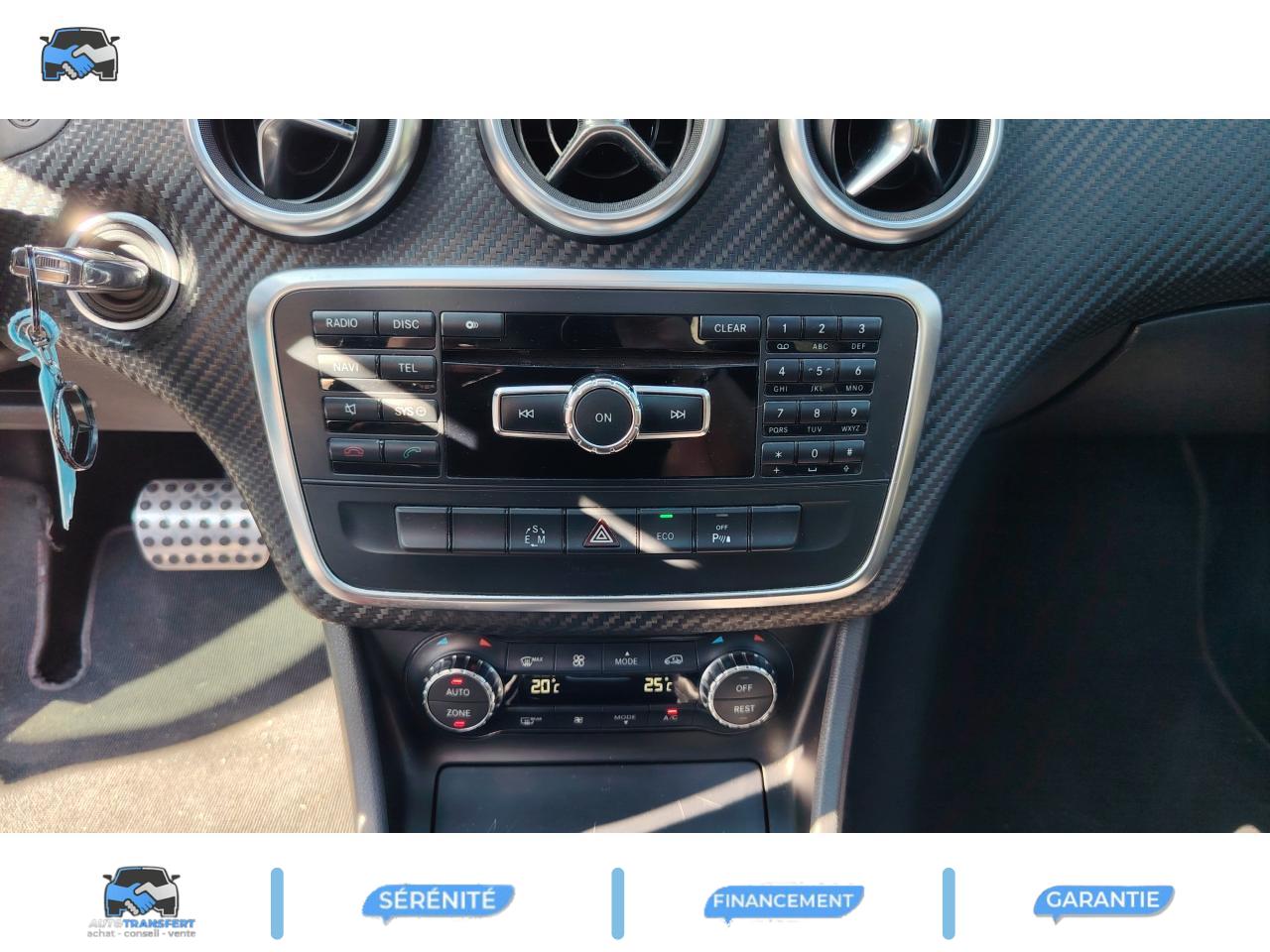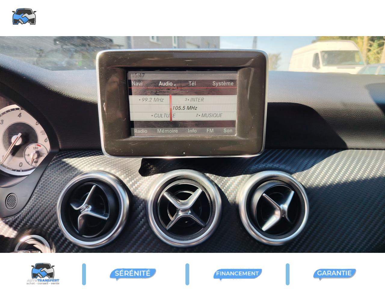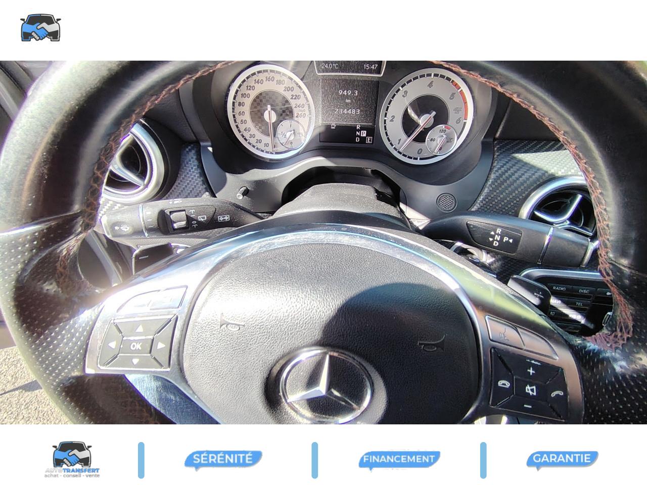 ABS (antiblocage de roues) et BAS (freinage d'urgence assisté)Accoudoir avant avec vide-pochesADAPTATIVE BRAKE avec fonction HOLD (aide au démarrage en côte)Airbag genoux conducteurAirbags bassin intégrés aux sièges conducteur et passager avantAirbags frontaux à plusieurs seuils de déclenchement pour le conducteur et le passager avantAirbags latéraux et airbags rideauxAllumage automatique des projecteursAPA (Aide au Parking Active) : système d'aide au stationnement avec radars de proximité avant/arrière et fonction manoeuvres automatiquesAttention Assist : système de détection de somnolenceAvertisseur de perte de pression des pneusBaguette de ligne de ceinture chroméeBanquette arrière rabattable 1/3-2/3BAS (freinage d'urgence assisté)Boîte à gants éclairéeBoîte automatique à double embrayage 7 rapports 7G-DCT avec palettes de commandes au volantCaméra de recul avec lignes de guidageCeintures de sécurité à 3 points à toutes les placesClé design chroméeClignotant avec fonction confortClimatisation automatique confort THERMOTRONIC à 2 zones avec affichage digital et réglages séparés conducteur/passagerCOLLISION PREVENTION ASSIST : système d'avertissement des risques de collisionColonne de direction réglable mécaniquement en hauteur et en profondeurCombiné d'instruments sportConnexion Bluetooth pour téléphone portable et clavier numérique intégréDétecteur d'occupation du siège passager avantDirection paramétrique asservie à la vitesseEclairage de secours en cas d'accidentÉléments décoratifs intérieurs et buses d'aération chromésESP (régulation de comportement dynamique)Feux arrière de brouillardFeux de stop adaptatifsFiltre à particulesFonction d'arrêt/redémarrage "Stop/Start ECO" avec commutateur de désactivation manuelleFonction sécurité piéton avec capot actifFrein de parking électriqueIndicateur de température extérieureIndicateur dynamique de maintenance (ASSYST PLUS)Interface USB dans l'accoudoir central avantISOFIX : fixations des sièges-enfants arrière (places extérieures)Lève-vitres électrique (x4) à commande séquentielle et dispositif anti-pincementNavigation Becker MAP PILOT : navigation 3D par disque dur avec information trafic TMC et affichage des limitations de vitesseOrdinateur de bordPack AMG Line ExtérieurPack AMG Line IntérieurPack d'éclairage intérieurPack de conduite dynamiquePack Sport BlackPare-chocs couleur carrosseriePneus avec possibilité de roulage à plat en liaison avec Jantes alliage AMGProjecteurs Bi-Xénon avec lave-phares, feux de jour,feux de position, clignotants, feux arrière et feux de stationnement à technologie LEDRadio Audio 20 avec écran couleur 15 cm (5,8"), double tuner et lecteur CD compatible MP3/WMA/AACRétroviseurs et poignées de portes de couleur carrosserieRétroviseurs extérieurs électriques chauffants et asphériques avec rappels de clignotant intégrésRétroviseurs extérieurs rabattables électriquement et rétroviseurs extérieur gauche et intérieur jour/nuit automatiqueSécurité enfant avec verrouillage manuel des portes arrière et électrique des vitres arrièreSiège conducteur réglable manuellement en hauteurSièges avant avec design spécifique et réglages manuel de l'inclinaison des assises et de la hauteur du siège passagerSièges Sport intégrauxTEMPOMAT (régulateur de vitesse) et SPEEDTRONIC (limiteur de vitesse)Toit ouvrant panoramique électrique avec store pare-soleil électrique, fonction de fermeture en cas de pluie et protection anti-pincementVerrouillage centralisé à télécommande avec fonction verrouillage automatique désactivableVitres teintées vertesVolant multifonctions à 12 touches