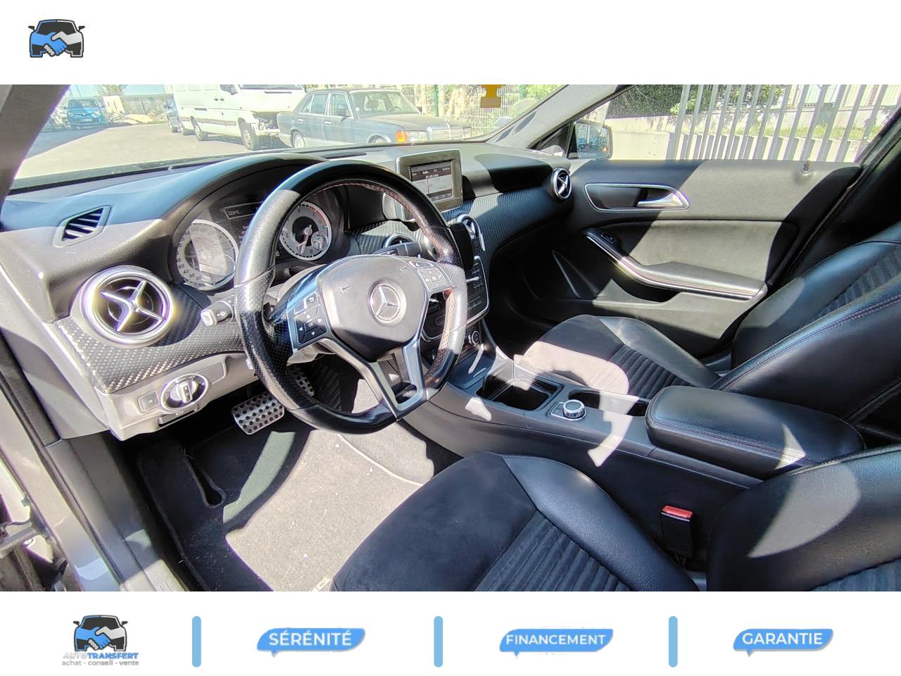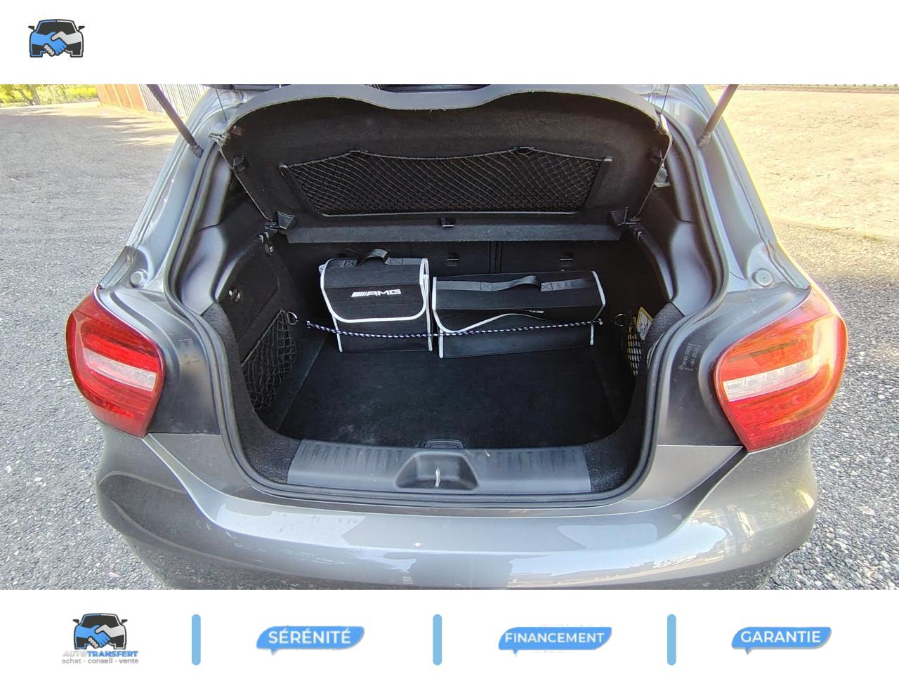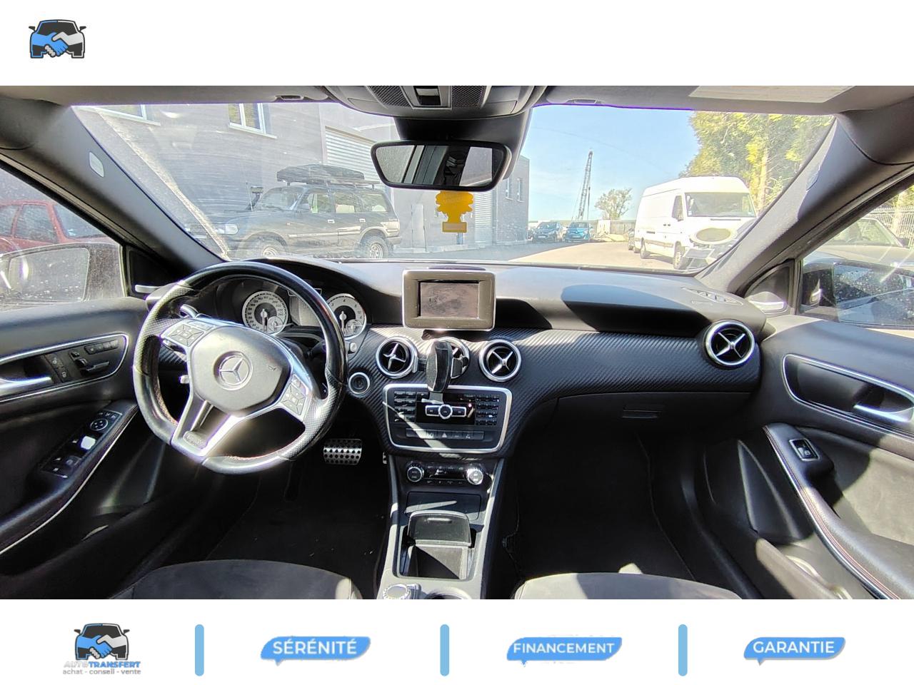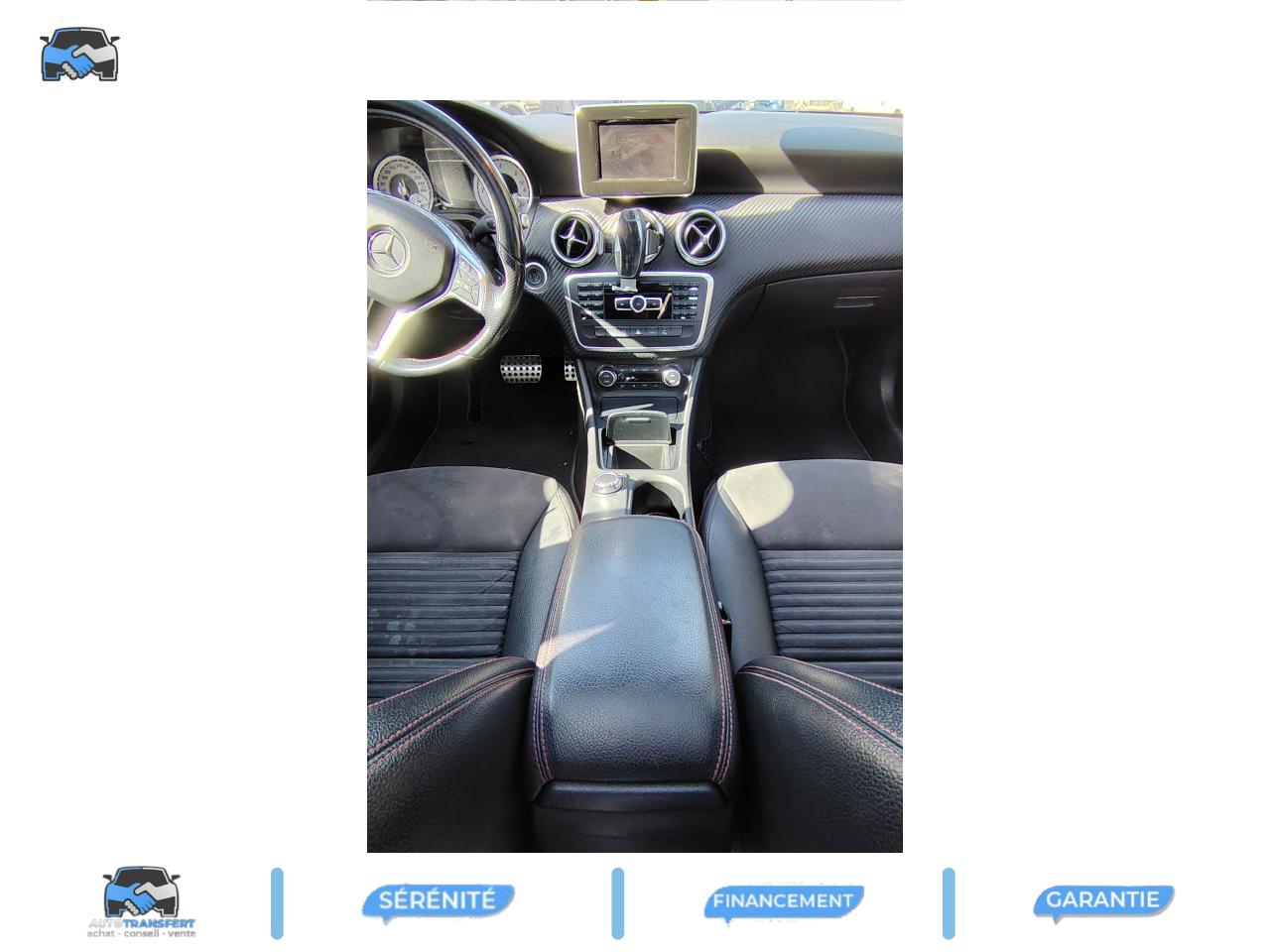 ABS (antiblocage de roues) et BAS (freinage d'urgence assisté)Accoudoir avant avec vide-pochesADAPTATIVE BRAKE avec fonction HOLD (aide au démarrage en côte)Airbag genoux conducteurAirbags bassin intégrés aux sièges conducteur et passager avantAirbags frontaux à plusieurs seuils de déclenchement pour le conducteur et le passager avantAirbags latéraux et airbags rideauxAllumage automatique des projecteursAPA (Aide au Parking Active) : système d'aide au stationnement avec radars de proximité avant/arrière et fonction manoeuvres automatiquesAttention Assist : système de détection de somnolenceAvertisseur de perte de pression des pneusBaguette de ligne de ceinture chroméeBanquette arrière rabattable 1/3-2/3BAS (freinage d'urgence assisté)Boîte à gants éclairéeBoîte automatique à double embrayage 7 rapports 7G-DCT avec palettes de commandes au volantCaméra de recul avec lignes de guidageCeintures de sécurité à 3 points à toutes les placesClé design chroméeClignotant avec fonction confortClimatisation automatique confort THERMOTRONIC à 2 zones avec affichage digital et réglages séparés conducteur/passagerCOLLISION PREVENTION ASSIST : système d'avertissement des risques de collisionColonne de direction réglable mécaniquement en hauteur et en profondeurCombiné d'instruments sportConnexion Bluetooth pour téléphone portable et clavier numérique intégréDétecteur d'occupation du siège passager avantDirection paramétrique asservie à la vitesseEclairage de secours en cas d'accidentÉléments décoratifs intérieurs et buses d'aération chromésESP (régulation de comportement dynamique)Feux arrière de brouillardFeux de stop adaptatifsFiltre à particulesFonction d'arrêt/redémarrage "Stop/Start ECO" avec commutateur de désactivation manuelleFonction sécurité piéton avec capot actifFrein de parking électriqueIndicateur de température extérieureIndicateur dynamique de maintenance (ASSYST PLUS)Interface USB dans l'accoudoir central avantISOFIX : fixations des sièges-enfants arrière (places extérieures)Lève-vitres électrique (x4) à commande séquentielle et dispositif anti-pincementNavigation Becker MAP PILOT : navigation 3D par disque dur avec information trafic TMC et affichage des limitations de vitesseOrdinateur de bordPack AMG Line ExtérieurPack AMG Line IntérieurPack d'éclairage intérieurPack de conduite dynamiquePack Sport BlackPare-chocs couleur carrosseriePneus avec possibilité de roulage à plat en liaison avec Jantes alliage AMGProjecteurs Bi-Xénon avec lave-phares, feux de jour,feux de position, clignotants, feux arrière et feux de stationnement à technologie LEDRadio Audio 20 avec écran couleur 15 cm (5,8"), double tuner et lecteur CD compatible MP3/WMA/AACRétroviseurs et poignées de portes de couleur carrosserieRétroviseurs extérieurs électriques chauffants et asphériques avec rappels de clignotant intégrésRétroviseurs extérieurs rabattables électriquement et rétroviseurs extérieur gauche et intérieur jour/nuit automatiqueSécurité enfant avec verrouillage manuel des portes arrière et électrique des vitres arrièreSiège conducteur réglable manuellement en hauteurSièges avant avec design spécifique et réglages manuel de l'inclinaison des assises et de la hauteur du siège passagerSièges Sport intégrauxTEMPOMAT (régulateur de vitesse) et SPEEDTRONIC (limiteur de vitesse)Toit ouvrant panoramique électrique avec store pare-soleil électrique, fonction de fermeture en cas de pluie et protection anti-pincementVerrouillage centralisé à télécommande avec fonction verrouillage automatique désactivableVitres teintées vertesVolant multifonctions à 12 touches
