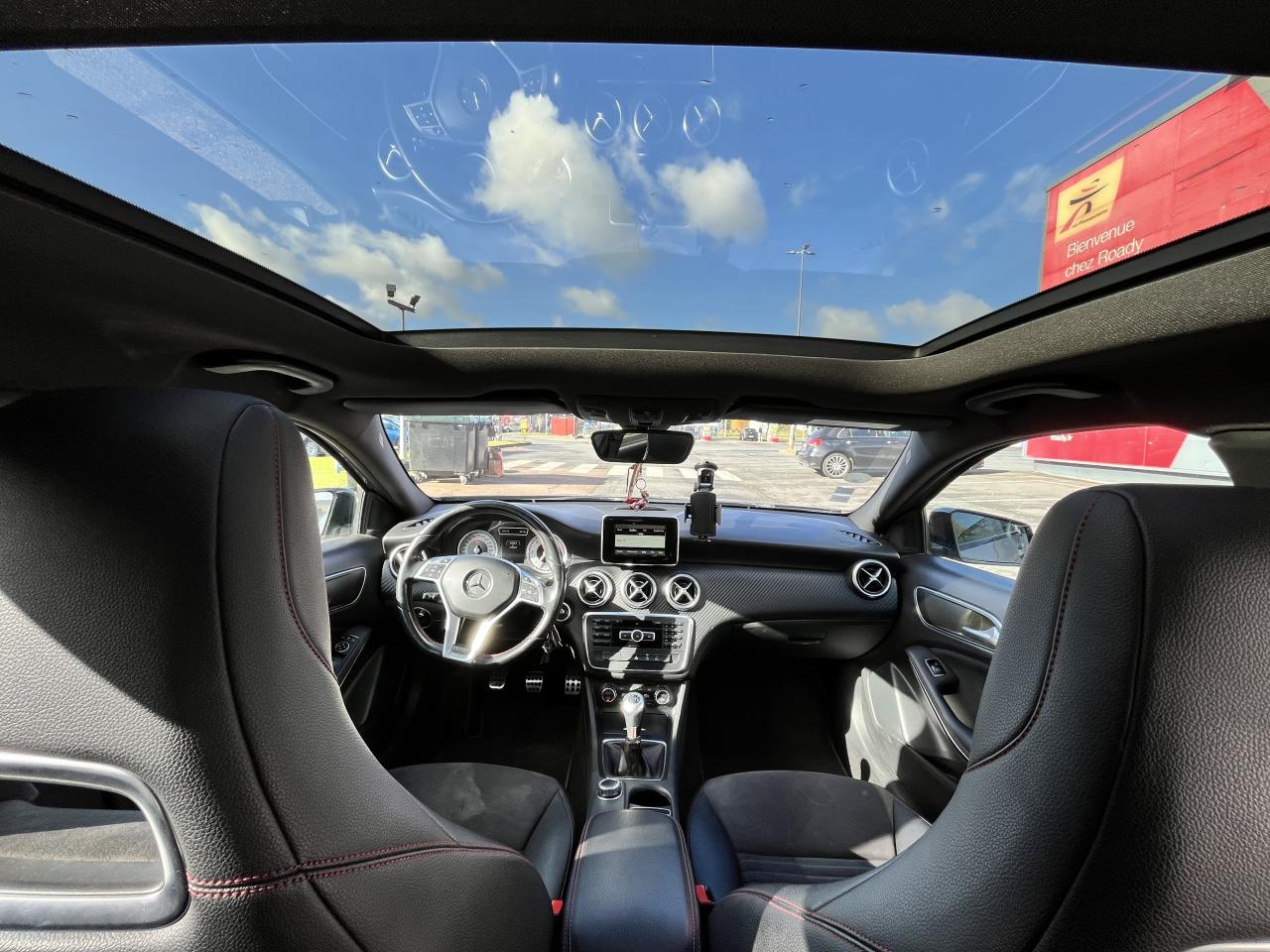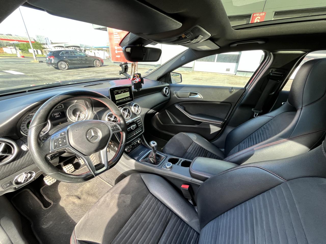 ABS (antiblocage de roues) et BAS (freinage d'urgence assisté)Accoudoir avant avec vide-pochesADAPTATIVE BRAKE avec fonction HOLD (aide au démarrage en côte)Airbag genoux conducteurAirbags bassin intégrés aux sièges conducteur et passager avantAirbags frontaux à plusieurs seuils de déclenchement pour le conducteur et le passager avantAirbags latéraux et airbags rideauxAllumage automatique des projecteursAPA (Aide au Parking Active) : système d'aide au stationnement avec radars de proximité avant/arrière et fonction manoeuvres automatiquesAttention Assist : système de détection de somnolenceAvertisseur de perte de pression des pneusBanquette arrière rabattable 1/3-2/3BAS (freinage d'urgence assisté)Boîte à gants éclairéeBoîte de vitesses mécanique à 6 rapports avec affichage du rapport préconiséCaméra de recul avec lignes de guidageCapot moteur actifCapteur de pluieCeintures de sécurité à 3 points à toutes les placesClé design chroméeClignotant avec commande confort par impulsionsClimatisation automatique confort THERMOTRONIC à 2 zones avec affichage digital et réglages séparés conducteur/passagerCOLLISION PREVENTION ASSIST : système d'avertissement des risques de collisionColonne de direction réglable mécaniquement en hauteur et en profondeurCombiné d'instrument couleurCombiné d'instruments sportConnexion Bluetooth pour téléphone portable et clavier numérique intégréContrôle de la pression des 4 pneus et alerte conducteur dans le combiné d'instrumentsDétecteur d'occupation du siège passager avantEclairage de secours en cas d'accidentÉléments décoratifs intérieurs et buses d'aération chromésESP (régulation de comportement dynamique)Feux arrière de brouillardFeux de stop adaptatifsFiltre à particulesFonction d'arrêt/redémarrage "Stop/Start ECO" avec commutateur de désactivation manuelleFrein de parking électriqueIndicateur de température extérieureIndicateur dynamique de maintenance (ASSYST PLUS)Interface USB dans l'accoudoir central avantISOFIX : fixations des sièges-enfants arrière (places extérieures)Kit anti-crevaison TIREFITLève-vitres électrique (x4) à commande séquentielle et dispositif anti-pincementNavigation Becker MAP PILOT : navigation 3D (cartographie Europe) par disque dur (situé dans la boîte à gants) avec information trafic TMC et affichage des limitations de vitesseOrdinateur de bordPack AMG Line ExtérieurPack AMG Line IntérieurPack d'éclairage intérieurPack de conduite dynamiquePack Sport BlackPare-chocs couleur carrosseriePommeau de levier de vitesses en cuirProjecteurs Bi-Xénon avec lave-phares, feux de jour,feux de position, clignotants, feux arrière et feux de stationnement à technologie LEDRadio Audio 20 avec écran couleur 15 cm (5,8"), double tuner et lecteur CD compatible MP3/WMA/AACRétroviseurs extérieurs électriques chauffants et asphériques avec rappels de clignotant intégrésRétroviseurs extérieurs rabattables électriquement et rétroviseurs extérieur gauche et intérieur jour/nuit automatiqueSécurité enfant avec verrouillage manuel des portes arrière et électrique des vitres arrièreSiège conducteur réglable manuellement en hauteurSièges avant avec design spécifique et réglages manuel de l'inclinaison des assises et de la hauteur du siège passagerSièges Sport intégrauxTEMPOMAT (régulateur de vitesse) et SPEEDTRONIC (limiteur de vitesse)Toit ouvrant panoramique électrique avec store pare-soleil électrique, fonction de fermeture en cas de pluie et protection anti-pincementVerrouillage centralisé à télécommande avec fonction verrouillage automatique désactivableVitres teintées vertesVolant multifonctions à 12 touches