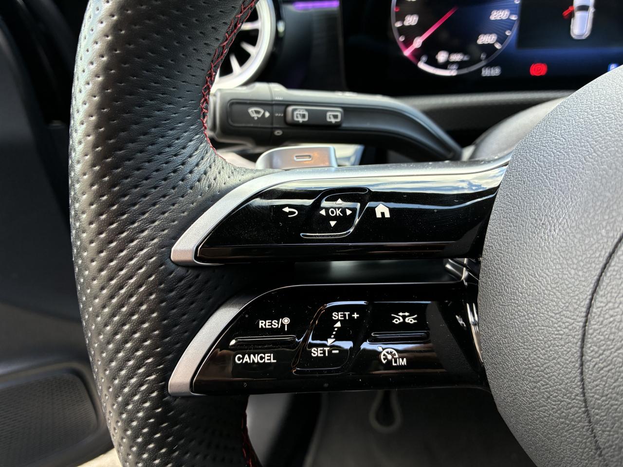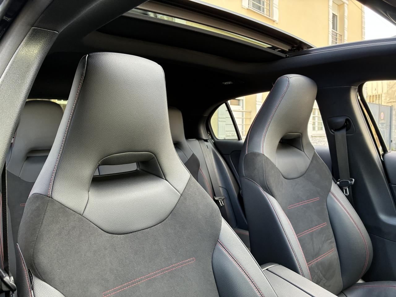 ABS (antiblocage de roues), ASR (antipatinage) et BAS (freinage d'urgence assisté)Accoudoir central avant rabattableADAPTIVE BRAKE avec fonction HOLD et aide au démarrage en côte, préremplissage et séchage des freins par freinage en cas de pluieAffichage du non bouclage des ceintures de sécurité aux places arrièreAirbag frontaux conducteur et passagerAirbag genoux conducteurAirbags latéraux avantAirbags rideauxAssistant de franchissement de ligne actifAssistant de limitation de vitesse par lecture des panneaux grâce à une caméraAttention Assist : système de détection de somnolenceBaguettes de seuil avec monogramme "Mercedes-Benz"Boîte à gants éclairéeBuses de ventilation dans le ton noir avec bague extérieure en argent matCalandre avec motif étoilé Mercedes-Benz en chrome, étoile centrale Mercedes et lamelle unique chroméesCapot moteur actif pour la protection des piétonsCapot moteur avec bossages stylisésCiel de pavillon en tissu noirClimatisation automatique THERMATIC à 1 zone avec filtre à poussières fines à charbon actifConnexion Bluetooth pour téléphone portableConsole centrale avec cache coulissant, vide-poches et double porte-gobeletsContrôle de la pression des pneumatiquesDésactivation automatique de l'airbag passager AVDétecteur de pluie et allumage automatique des projecteursDirection paramétrique assistée et asservie à la vitesseDYNAMIC SELECT avec les programmes de conduite « ECO », « Confort », « Sport » et « Individual »Ecran couleur tactile 10,25''Etriers de freins avant avec monogramme "Mercedes-Benz"Feux de route adaptatifsFeux stop adaptatifsFrein de stationnement électriqueFreinage d'urgence assisté actif (alerte visuelle et sonore en cas de risque de collision et freinage d'urgence autonome dans certaines conditions)Garnitures de sièges en similicuir ARTICO/microfibre MICROCUT noire agrémentés de surpiqûres contrastées rougesHabillages des bas de caisse AMG peints dans le ton carrosserieInserts décoratifs en microfibre MICROCUTInstrumentation digitale avec écran 10,25''Jupe arrière AMG avec enjoliveurs de sortie d’échappement et insert décoratif chroméJupe avant AMG avec splitter en finition chromeKEYLESS-GO : système de démarrage sans cléModule de communication LTE pour l'utilisation des services Mercedes me connectNavigation haute résolution par disque dur MBUX Premium avec mises à jour des données cartographiques gratuites jusqu’à 7 ans à partir de l’activationPack Confort siègesPack RétroviseursPack StationnementPack USB PlusPack VisibilitéPalettes de changement de vitesse galvanisées en argent chroméPédalier sport AMG en acier inoxydable brossé, avec picots en caoutchouc noirsPeinture non métallisée NoirPré-équipement pour la surveillance du véhiculeProjecteurs hautes performances à technologie LEDRadio Numérique DABSièges avant chauffantsSièges sport à l'avant avec appuie-tête intégrauxSoutien lombaire à 4 réglages pour conducteur et passagerSystème multimédia MBUX avec fonctionnalités élargies (profils personnalisés, fonctions prédictives)Tapis de sol AMGTEMPOMAT (régulateur et limiteur de vitesse)Train de roulement confort avec châssis surbaisséVolant sport multifonction en cuir Nappa avec méplat dans la partie inférieure, perforé dans la zone de préhension, avec commandes tactiles à gauche et à droite