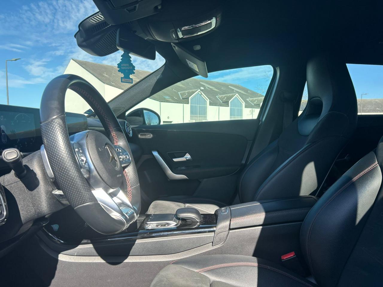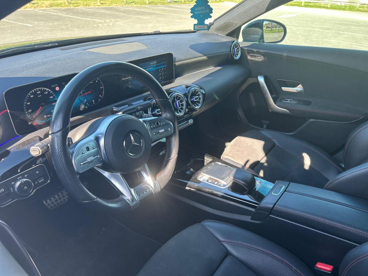 Aide au démarrage en côteAllumage automatique des projecteursAntiblocage ABSAvertisseur de franchissement de ligne actifAvertisseur de limitation de vitesseAvertisseur de perte de pression des pneusBaguette de ligne de ceinture chroméeCapteur de pluieCiel de pavillon en tissu noirClimatisation automatique "Thermatic"DYNAMIC SELECT controller : 4 programmes de conduiteEssieu arrière multibrasFonctionnalités élargies MBUXFrein de stationnement électriqueFreinage d'urgence assisté actif : système d'avertissement des risques de collision et de pré-freinage incluant l'assistance au freinage adaptifGarnitures en similicuir ARTICOGrille de calandre diamant avec pastilles chromées et lamelleIndicateur de ceinture de sécuritéJantes alliage AMG 45,7 cm (18") à 5 doubles branches avec pneus 225/45 R18Kit anti-crevaison TIREFITKit carrosserie AMGMBUX système multimédiaOrdinateur de bordPédalier sport en aluminium avec picotsPack AdvantagePack ConfortPack visibilitéPARKTRONIC (aide au parking)Pavé tactile TOUCHPAD avec sélecteurPeinture non métalliséePré-équipement autopartagePré-équipement pour radio numériqueProjecteurs hautes performances à technologie LEDRégulateur et limiteur de vitesseRétroviseurs extérieurs électriques intégrant le rappel de clignotantRadio Numérique DABSièges avant sport intégrauxSystème d'Appel d'Urgence Mercedes-BenzSystème de commande vocale et assistant personnel activable grâce à "Hey Mercedes"Tapis de sol AMGTrain de roulement confort avec châssis surbaisséVolant sport multifonctions en cuir Nappa à 3 branches avec méplatZAS : coupure d'alimentation des cylindres