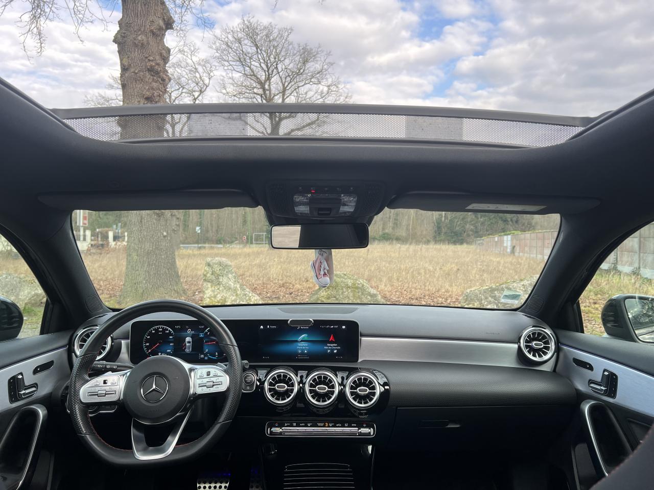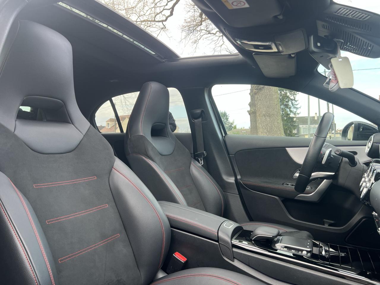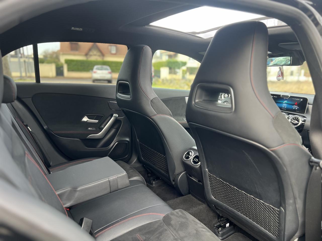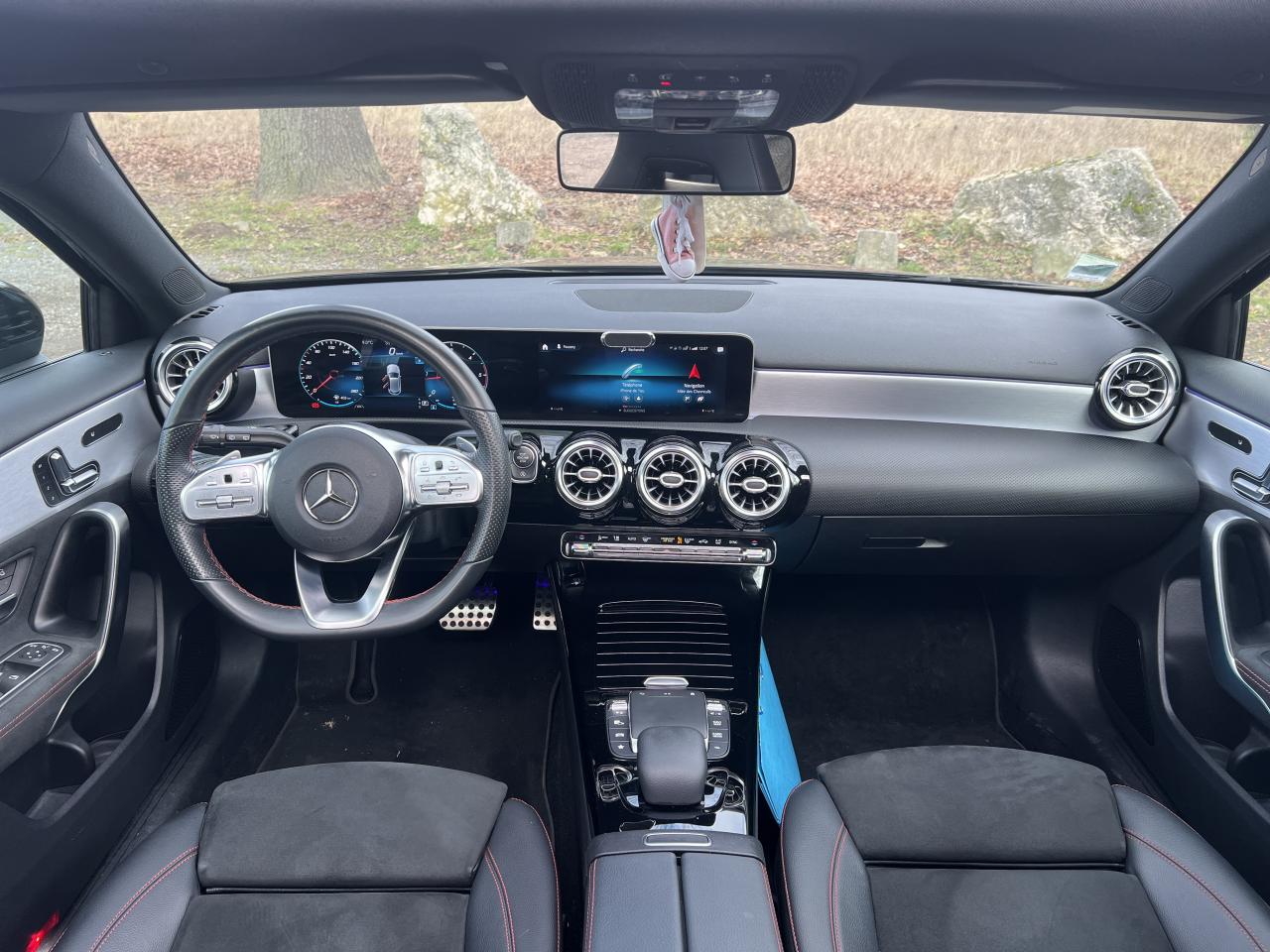 ABS (antiblocage de roues), ASR (antipatinage) et BAS (freinage d'urgence assisté)Accoudoir central avantADAPTIVE BRAKE avec fonction HOLD et aide au démarrage en côte, préremplissage et séchage des freins par freinage en cas de pluieAffichage du non bouclage des ceintures de sécurité aux places arrièreAirbag frontaux conducteur et passagerAirbag genoux conducteurAirbags latéraux (thorax / bassin) avantAirbags rideauxAttention Assist : système de détection de somnolenceAvertisseur de franchissement de ligne actifBaguettes de ligne de ceinture et entourages de vitres chromésBaguettes de seuil avec monogramme "Mercedes-Benz"Boîte à gants éclairéeBoîte de vitesses à double embrayage 8G-DCTBuses de ventilation noires avec cerclage chroméCalandre diamant avec pastilles chromées et lamelle avec insert chroméCapot moteur actif pour la protection des piétonsCiel de pavillon en tissu noirClimatisation automatique THERMATIC à 1 zone avec filtre à charbons actifs contre la poussière, la suie et le pollenConnexion Bluetooth pour téléphone portableConsole centrale Noir brillantDésactivation automatique de l’airbag passager avantDirection paramétrique asservie à la vitesseDossier AR rabattable 40/20/40Double porte-gobelet dans la console centraleDYNAMIC SELECT avec les programmes de conduite « ECO », « Confort », « Sport » et « Individual »Essieu arrière à bras combinésEtriers de freins avant avec monogramme Mercedes-Benz et disques perforésFeux de stop adaptatifsFilets à bagages au dossier des sièges AVFrein de stationnement électriqueFreinage d'urgence assisté actifGarnitures intérieures en microfibre DINAMICA/similicuir ARTICOI-Size et Top Tether pour les sièges arrière extérieursInserts décoratifs en microfibre DINAMICAInterface USB-C dans le vide-poches et dans la console centrale arrièreJantes alliage AMG 45,7 cm (18'') à 5 doubles branches gris titane et argentJupe arrière AMG avec insert décoratif chroméJupe avant AMG avec splitter en finition chromeKit anti-crevaison TIREFITKit carrosserie AMG composé de jupe avant, protections de bas de caisse et jupe arrièreModule de communication LTE pour l'utilisation des services Mercedes me connectPack AdvantagePack visibilitéPavé tactile TouchpadPédalier sport AMG en acier inoxydable brossé avec picots en caoutchoucPeinture noirePré-équipement pour l'autopartage via l'application Mercedes me Car SharingPré-équipement pour Live Traffic Information (service gratuit pendant 3 ans après activation Mercedes me)Pré-équipement pour réglages et suivi du véhicule à distance (service gratuit pendant 3 ans après activation Mercedes me)Prise 12V dans le vide poche de la console centraleProjecteurs hautes performances à technologie LEDRainsensor (Capteur de pluie et de luminosité)Réception radio numérique (DAB)Reconnaissance des panneaux de limitation de vitesseSièges avant avec réglages de la hauteur et de l'approche du siège, de l'inclinaison du dossier, de l'inclinaison de l'assise, de la profondeur de l'assiseSièges avant sport intégrauxSorties d'échappement apparentes en chrome (non fonctionnelles)Système d'Appel d'Urgence Mercedes-BenzSystème de commande vocale et assistant personnel activable grâce à "Hey Mercedes"Système de contrôle de la pression des pneusSystème de stabilisation en cas de vent latéralSystème multimédia MBUX avec fonctionnalités élargies (profils personnalisés, fonctions prédictives, borne Wifi, webradio)Tapis de sol AMGTEMPOMAT (régulateur et limiteur de vitesse)Train de roulement confort avec châssis surbaisséVolant sport multifonction à 3 branches en cuir Nappa, avec méplat, perforations au niveau de la zone de préhension, boutons tactiles Touch-Control, cache chromé et surpiqûres rouges