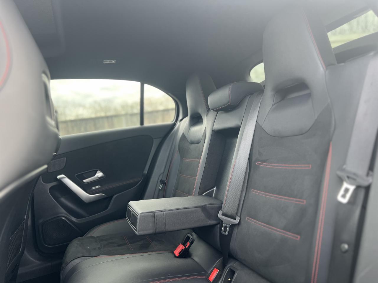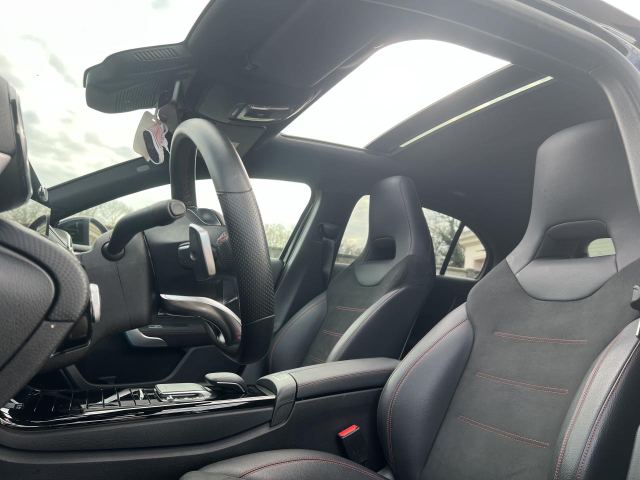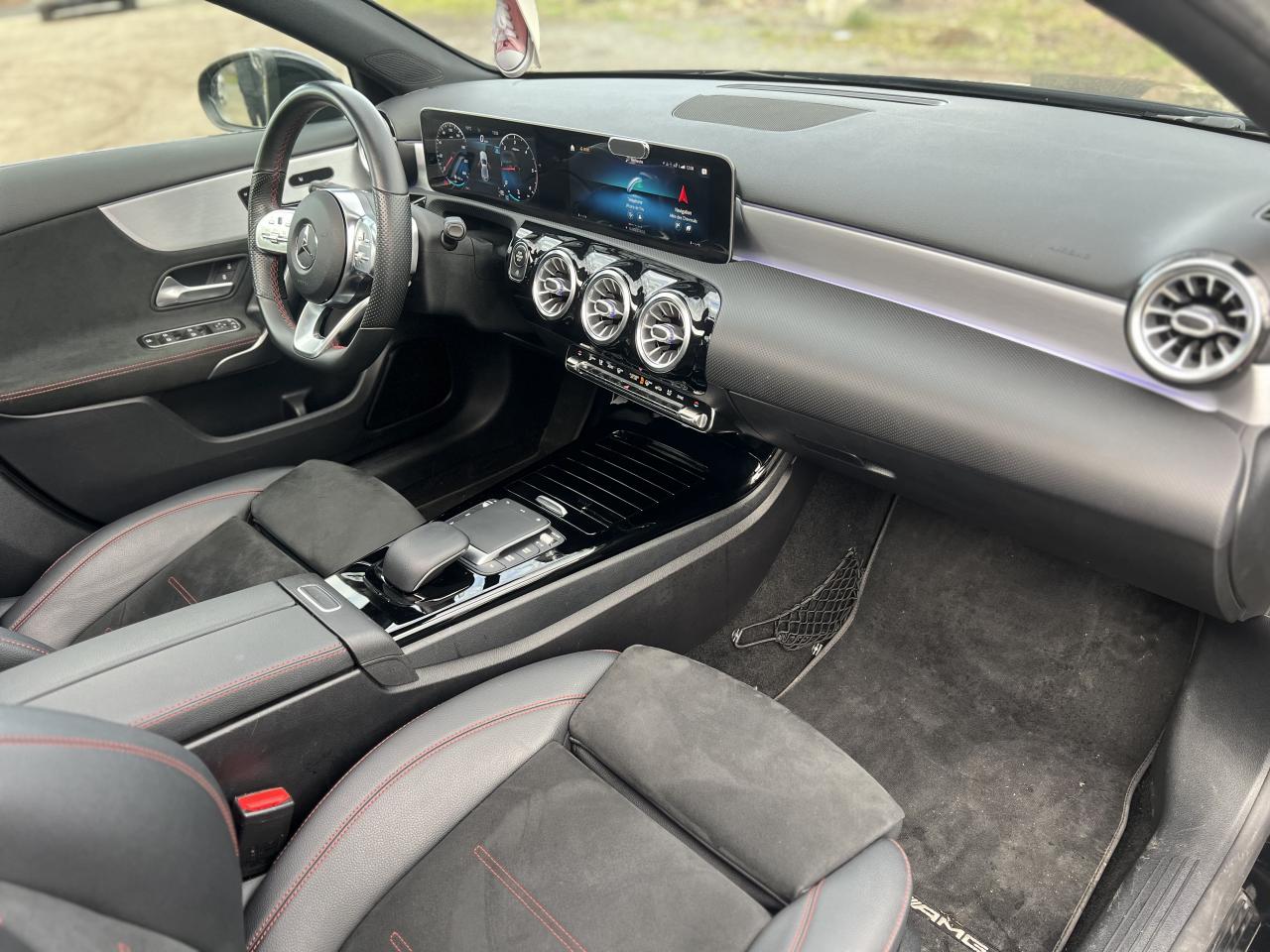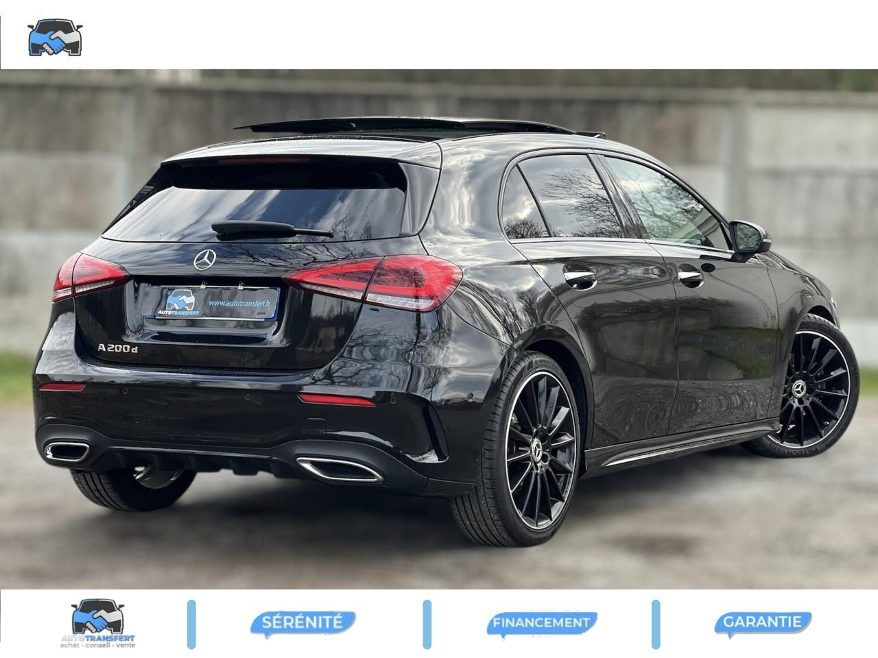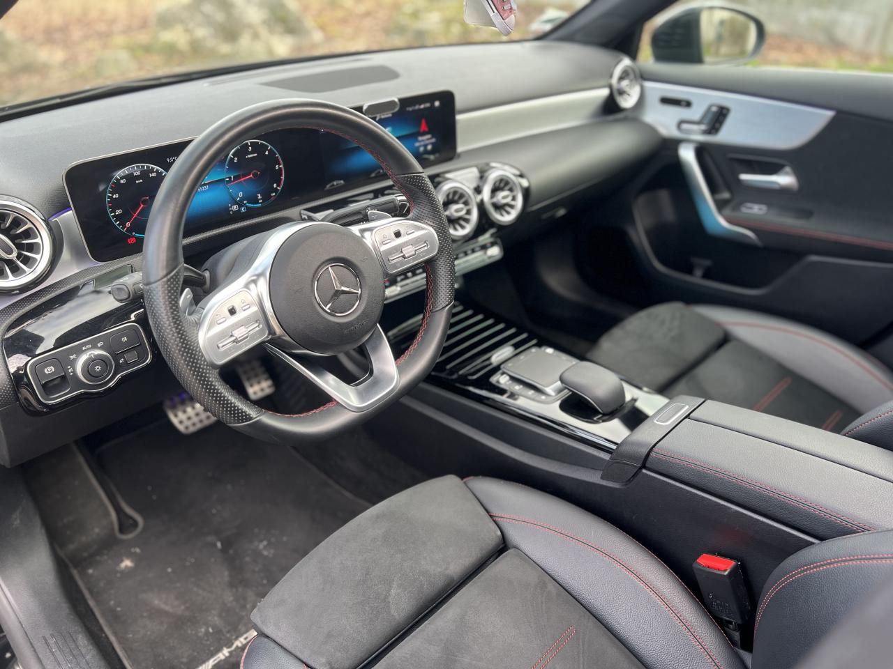 ABS (antiblocage de roues), ASR (antipatinage) et BAS (freinage d'urgence assisté)Accoudoir central avantADAPTIVE BRAKE avec fonction HOLD et aide au démarrage en côte, préremplissage et séchage des freins par freinage en cas de pluieAffichage du non bouclage des ceintures de sécurité aux places arrièreAirbag frontaux conducteur et passagerAirbag genoux conducteurAirbags latéraux (thorax / bassin) avantAirbags rideauxAttention Assist : système de détection de somnolenceAvertisseur de franchissement de ligne actifBaguettes de ligne de ceinture et entourages de vitres chromésBaguettes de seuil avec monogramme "Mercedes-Benz"Boîte à gants éclairéeBoîte de vitesses à double embrayage 8G-DCTBuses de ventilation noires avec cerclage chroméCalandre diamant avec pastilles chromées et lamelle avec insert chroméCapot moteur actif pour la protection des piétonsCiel de pavillon en tissu noirClimatisation automatique THERMATIC à 1 zone avec filtre à charbons actifs contre la poussière, la suie et le pollenConnexion Bluetooth pour téléphone portableConsole centrale Noir brillantDésactivation automatique de l’airbag passager avantDirection paramétrique asservie à la vitesseDossier AR rabattable 40/20/40Double porte-gobelet dans la console centraleDYNAMIC SELECT avec les programmes de conduite « ECO », « Confort », « Sport » et « Individual »Essieu arrière à bras combinésEtriers de freins avant avec monogramme Mercedes-Benz et disques perforésFeux de stop adaptatifsFilets à bagages au dossier des sièges AVFrein de stationnement électriqueFreinage d'urgence assisté actifGarnitures intérieures en microfibre DINAMICA/similicuir ARTICOI-Size et Top Tether pour les sièges arrière extérieursInserts décoratifs en microfibre DINAMICAInterface USB-C dans le vide-poches et dans la console centrale arrièreJantes alliage AMG 45,7 cm (18'') à 5 doubles branches gris titane et argentJupe arrière AMG avec insert décoratif chroméJupe avant AMG avec splitter en finition chromeKit anti-crevaison TIREFITKit carrosserie AMG composé de jupe avant, protections de bas de caisse et jupe arrièreModule de communication LTE pour l'utilisation des services Mercedes me connectPack AdvantagePack visibilitéPavé tactile TouchpadPédalier sport AMG en acier inoxydable brossé avec picots en caoutchoucPeinture noirePré-équipement pour l'autopartage via l'application Mercedes me Car SharingPré-équipement pour Live Traffic Information (service gratuit pendant 3 ans après activation Mercedes me)Pré-équipement pour réglages et suivi du véhicule à distance (service gratuit pendant 3 ans après activation Mercedes me)Prise 12V dans le vide poche de la console centraleProjecteurs hautes performances à technologie LEDRainsensor (Capteur de pluie et de luminosité)Réception radio numérique (DAB)Reconnaissance des panneaux de limitation de vitesseSièges avant avec réglages de la hauteur et de l'approche du siège, de l'inclinaison du dossier, de l'inclinaison de l'assise, de la profondeur de l'assiseSièges avant sport intégrauxSorties d'échappement apparentes en chrome (non fonctionnelles)Système d'Appel d'Urgence Mercedes-BenzSystème de commande vocale et assistant personnel activable grâce à "Hey Mercedes"Système de contrôle de la pression des pneusSystème de stabilisation en cas de vent latéralSystème multimédia MBUX avec fonctionnalités élargies (profils personnalisés, fonctions prédictives, borne Wifi, webradio)Tapis de sol AMGTEMPOMAT (régulateur et limiteur de vitesse)Train de roulement confort avec châssis surbaisséVolant sport multifonction à 3 branches en cuir Nappa, avec méplat, perforations au niveau de la zone de préhension, boutons tactiles Touch-Control, cache chromé et surpiqûres rouges