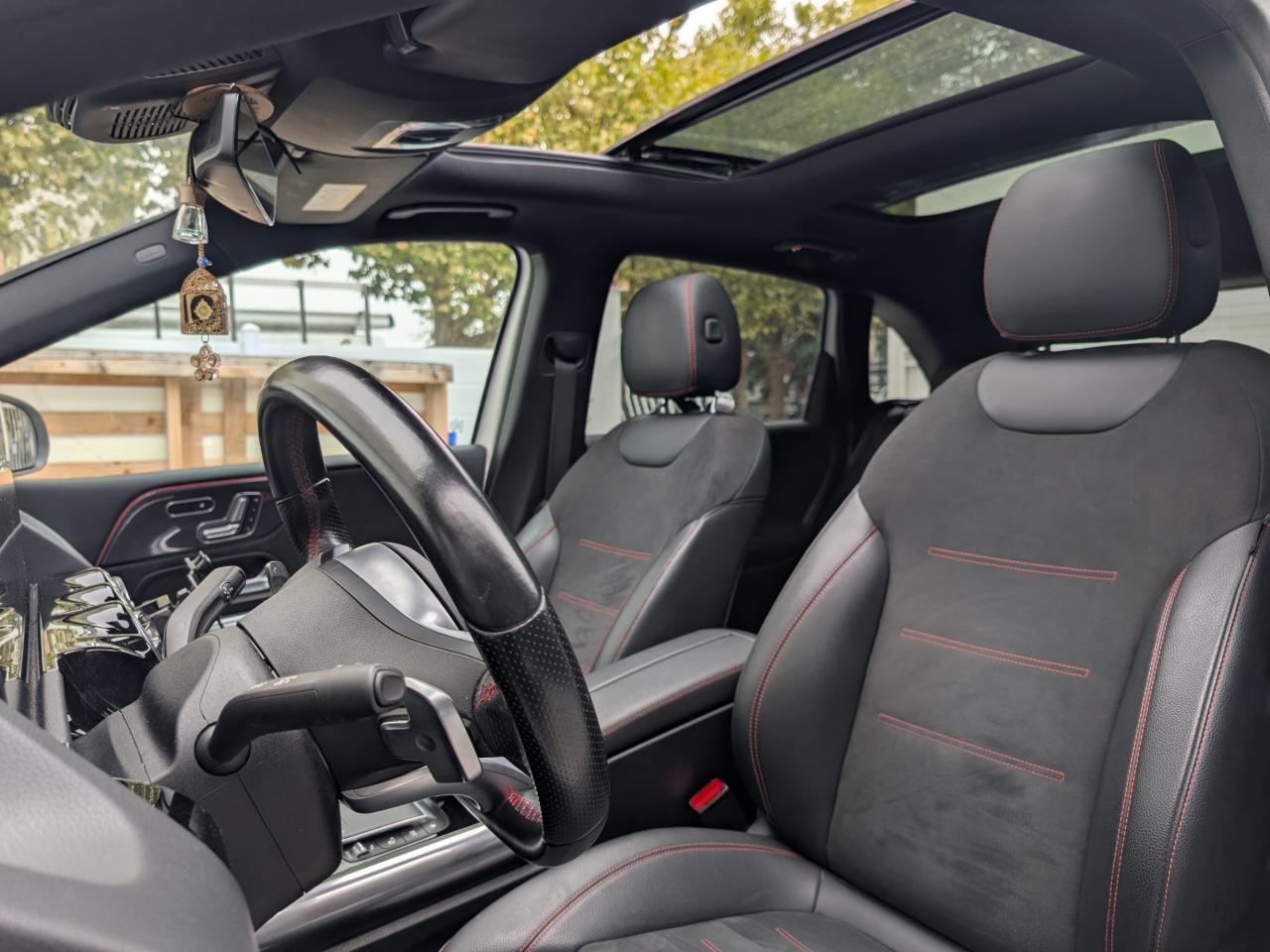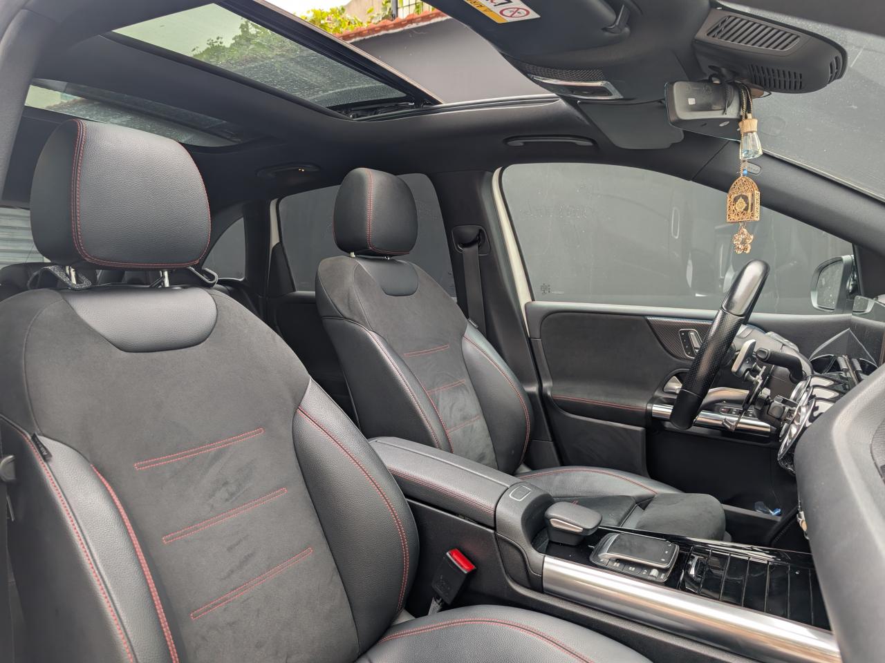 2 Porte-gobelets avant (dans la console centrale)ABS (antiblocage de roues) et ASR (antipatinage)Accoudoir central avantADAPTIVE BRAKE avec fonction HOLD et aide au démarrage en côte, préremplissage et séchage des freins par freinage en cas de pluieAffichage du non bouclage des ceintures de sécurité aux places arrièreAirbag frontaux conducteur et passagerAirbag genoux conducteurAirbags latéraux pour le conducteur et le passager avantAirbags rideauxAssistant de limitation de vitesse par lecture des panneaux grâce à une caméraAttention Assist : système de détection de somnolenceAvertisseur de franchissement de ligne actifBaguettes de ligne de ceinture et entourages de vitres chromésBaguettes de seuil avec monogramme "Mercedes-Benz"Banquette arrière rabattable 40/20/40BAS (freinage d'urgence assisté)Boîte à gants éclairéeBoîte de vitesses à double embrayage 8G-DCTBuses de ventilation noires avec cerclage chroméCalandre diamant avec pastilles chromées et lamelle avec insert chroméCapot moteur actif pour la protection des piétonsCiel de pavillon en tissu noirClimatisation automatique THERMATIC à 1 zone avec filtre à charbons actifs contre la poussière, la suie et le pollenConnexion Bluetooth pour téléphone portableContrôle de la pression des pneumatiquesDésactivation automatique de l'airbag passager AVDétecteur de pluie et allumage automatique des projecteursDirection paramétrique assistée et asservie à la vitesseDisques perforés à l’avant et étriers avec monogramme « Mercedes-Benz » à l’avantDYNAMIC SELECT avec les programmes de conduite « ECO », « Confort », « Sport » et « Individual »Eléments de la console centrale en finition galvanisée argentESP (Correcteur électronique de trajectoire)Feux stop adaptatifsFilet au dos des sièges avantFilet sur le plancher du coffreFixations iSize pour siège-enfant avec sangle Top Tether aux places extérieures arrièreFrein de stationnement électriqueFrein multi-collisionFreinage d'urgence assisté actif : système d'avertissement des risques de collision incluant l'assistance au freinage adaptatifGarnitures en ARTICO/microfibre DINAMICA noirHabillages des bas de caisse AMG peints dans le ton carrosserieHayon électrique EASY-PACKInserts décoratifs finition carboneInstrumentation digitale avec écran central 18 cm (7'') offrant une résolution de 960 x 540 pixelsInterface USB-C dans le vide-poches et dans la console centrale arrièreJantes alliage AMG 45,7 cm (18'') à 5 doubles branches avec pneus 225/45 R18Jupe arrière AMG avec insert décoratif chroméJupe avant AMG avec splitter en finition chromeKEYLESS-GO : système de démarrage sans cléKit anti-crevaison TIREFITModule de communication LTE pour l'utilisation des services Mercedes me connectPack AdvantagePack visibilitéPare-soleil avec miroirs de courtoisie éclairésPavé tactile TouchpadPédalier sport AMG en acier inoxydable brossé avec picots en caoutchoucPeinture non métalliséePlancher de coffre amoviblePlancher du coffre réglable en hauteurPoignées de portes en finition galvanisée argentPré-équipement pour l'autopartage via l'application Mercedes me Car SharingPré-équipement pour Live Traffic Information (service gratuit pendant 3 ans après activation Mercedes me)Pré-équipement pour services de charge et services à distance Plus (services de charge gratuit pendant 1 an, services à distance plus gratuit pendant 3 ans)Prise 12 V dans l'espace de chargementPrise 12 V dans le vide-pochesProjecteurs hautes performances à technologie LEDRadio Numérique DABRéglage de l'inclinaison de l'assiseRéglage du dossier en inclinaisonRéglage en profondeur de l'assiseSièges avant avec réglage de la longueur d'assiseSièges avant réglables en hauteurSièges avant sportSorties d'échappement apparentes en chrome (non fonctionnelles)Start AssistSystème d'Appel d'Urgence Mercedes-BenzSystème de commande vocale et assistant personnel activable grâce à "Hey Mercedes"Système de stabilisation en cas de vent latéralSystème multimédia MBUX avec fonctionnalités élargies (profils personnalisés, fonctions prédictives, borne Wifi, webradio)Tapis de sol AMGTapis réversible dans le coffreTEMPOMAT (régulateur et limiteur de vitesse)Train de roulement confort avec châssis surbaisséTrousse de premiers secours et triangle de signalisationVolant sport multifonction a 3 branches en cuir Nappa, avec méplat dans la partie inferieure, perforations au niveau de la zone de préhension, surpiqûres rouges, éléments en chrome et boutons Touch-Control