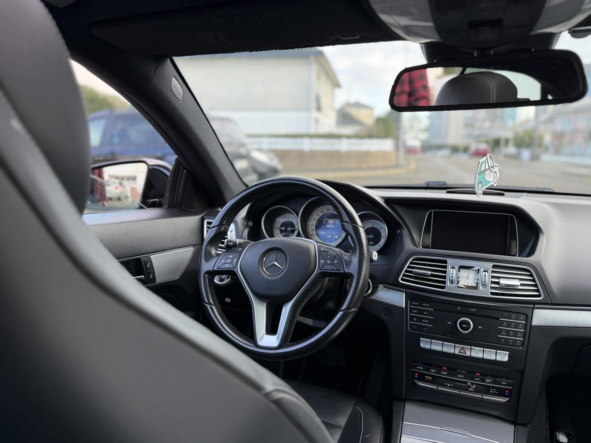 ABS (antiblocage de roues) et BAS (freinage d'urgence assisté)Accoudoir central avant avec vide-pochesADAPTIVE BRAKE avec aide au démarrage en côteAGILITY CONTROL : train de roulement avec système d'amortissement sélectifAide au Parking Active : système d'aide au stationnement avec radars de proximité avant/arrièreAirbag genoux conducteurAirbags bassinAirbags frontaux à deux seuils de déclenchementAirbags latéraux avantAirbags rideauxAllumage automatique des projecteursAntivol à clé électronique avec système de verrouillage ELCODEAppuie-tête avant actifs NECK-PROAssistant de signalisation routièreAssistant feux de route PlusAttention Assist : système de détection de somnolenceAvertisseur dynamique de maintenance (ASSYST PLUS)Banquette AR 1/3 2/3Boîte de vitesses automatique à 9 rapports 9G-TRONIC avec fonction "Stop/Start ECO" et levier sélecteur DIRECT SELECT avec palettes de commande au volantCaméra de reculCapot moteur actif pour la protection des piétonsCapteur de pluieCeintures de sécurité 3 points avec rétracteurs à l'avant et limiteurs d'effort (x4)Clignotants à commande confort par impulsionsClimatisation automatique THERMATIC à 2 zonesCOLLISION PREVENTION ASSIST : système d'avertissement des risques de collisionCOMAND Online : système multimédia avec écran couleur 18 cm (7") et commande vocale LINGUATRONIC, navigation 3DCombiné d'instruments à fond noir avec écran couleur 10,9 cm (4,3'')Contrôle de la pression des pneumatiquesDétecteur d'occupation du siège passager avantDirection paramétrique assistée et asservie à la vitesseEclairage des seuils de portesESP (régulation de comportement dynamique) avec ASR (antipatinage)Feux arrières à technologie LEDFeux de jour à LEDFeux de stop adaptatifsFiltre à particulesGarnitures intérieures en cuirHorloge analogique au niveau de la console centraleILS (Intelligent Light System) à LED : projecteurs à technologie LED avec répartition variable de l'éclairage, éclairage actif dans les virages et correcteur dynamique de portéeInserts décoratifs en aluminium clair sur la console centrale,le tableau de bord et les contre-portesISOFIX : fixation sièges-enfants arrièreKit anti-crevaison TIREFITLève-vitres électrique (x4) à commande séquentielle et dispositif anti-pincementOrdinateur de bordPack Sport ExtérieurPRE-SAFE : système de sécurité préventivePrises 12 V à l'avantRemote Online : Géolocalisation, localisation et repérage du véhicule, vérification à distance de l'état des systèmes du véhiculeRétroviseurs intérieur et extérieur gauche jour/nuit automatiques et rétroviseurs extérieurs rabattables électriquementSièges avant avec fonction Easy EntrySièges avant chauffantsSièges avant tout électriques avec fonction Mémoires incluant la colonne de direction et les rétroviseurs extérieursSuspension et train de roulement sportSystème d'Appel d'Urgence Mercedes-BenzTEMPOMAT (régulateur de vitesse) et SPEEDTRONIC (limiteur de vitesse)Toit ouvrant panoramique électriqueVolant multifonctions en cuir Nappa à 3 branches avec insert chromé et cuir perforé au niveau des zones de préhension