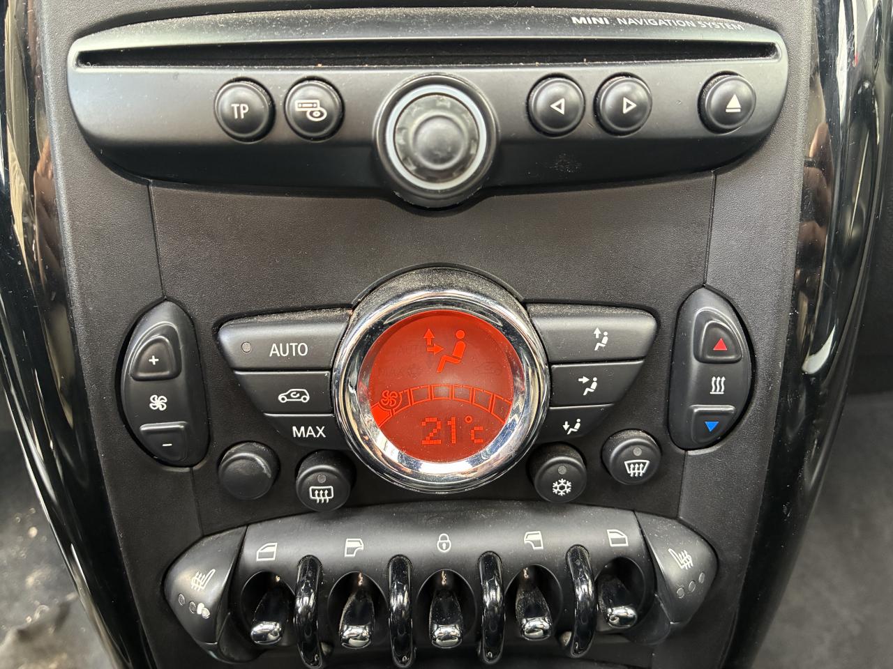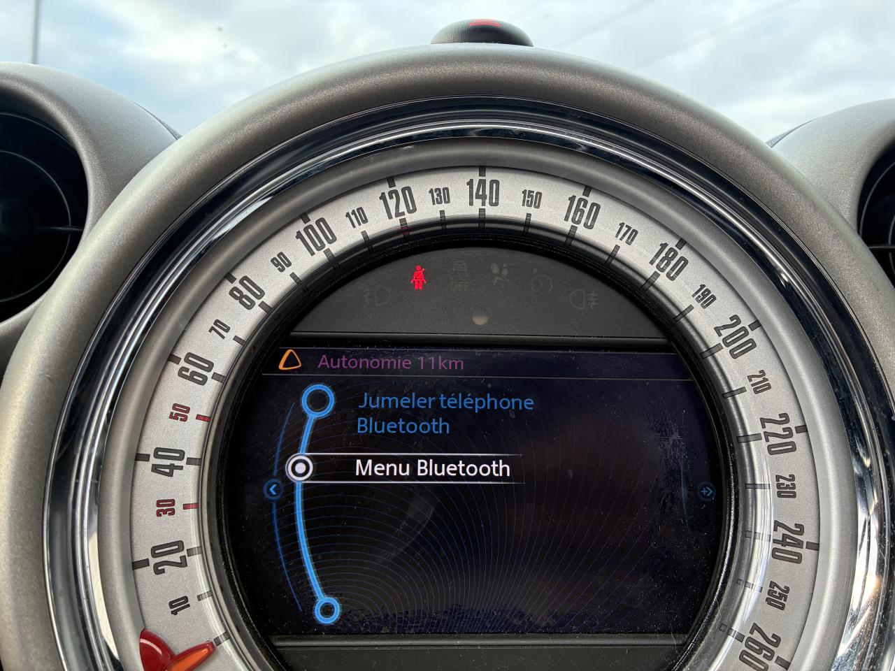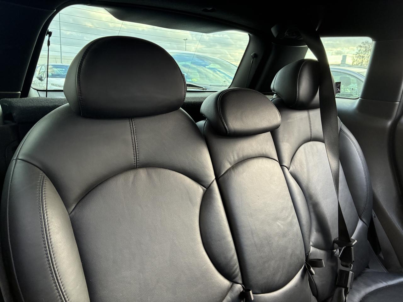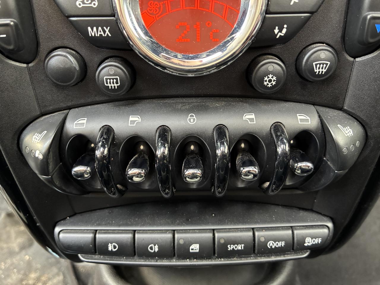 2 clés radiocommandées2 porte gobelets à l'avant6 AirbagsABS (Antiblocage de roues)Anti-démarrage électronique EWS IVAutoradio MINI CD avec prise AUX-IN, 5 haut-parleurs et compatibilité MP3Bagues décoratives Silver autour du compteur de vitesse central, des aérateurs centraux et du soufflet de levier de vitessesBanquette arrière 3 places coulissante (60/40) avec dossiers rabattables (40/20/40)Becquet arrièreBoîte de vitesses manuelle 6 rapportsBouton de démarrage “Start/Stop”Calandre au contour chromé avec grille façon “nid d'abeilles”Climatisation automatiqueContrôle de freinage en courbe CBCContrôle dynamique de la motricité DTC y compris blocage électronique de différentiel EDLCContrôle Dynamique de la Stabilité DSC, y compris assistant de démarrage en côteDésactivation de l'airbag du passager avantDirection à assistance électriqueDouble sortie d'échappement chromée gauche/droiteFeux de stop dynamiquesFixations ISOFIX aux places arrièreFonction d'arrêt et de redémarrage automatique du moteurIndicateur de changement de rapportIndicateur de perte de pression des pneumatiques (RPA)Lève-vitres électriques à l'avant et à l'arrièreMINI Mobility SystemOrdinateur de bordOuïes latérales Dark Anthracite “S” avec répétiteurs de clignotants blancs intégrésPare-chocs avant et arrière dans la couleur de la carrosseriePédalier et repose-pied avec inserts en acier inoxydablePoignées de portes chroméesPrise d'air supplémentaire au centre de la calandreProjecteurs antibrouillardProjecteurs avant et feux arrière au contour chroméRails de toit Dark AnthraciteRétroviseurs extérieurs à réglage électriqueSiège conducteur réglable en hauteurSièges avant sportSystème d'aide au stationnement PDC arrièreToit et coques de rétroviseurs de couleur blanche ou noireTouches multifonctions avec régulateur de vitesse au volantVerrouillage centralisé des portes, du coffre et de la trappe à essenceVitres teintéesVolant sport 3 branches gainé de cuir
