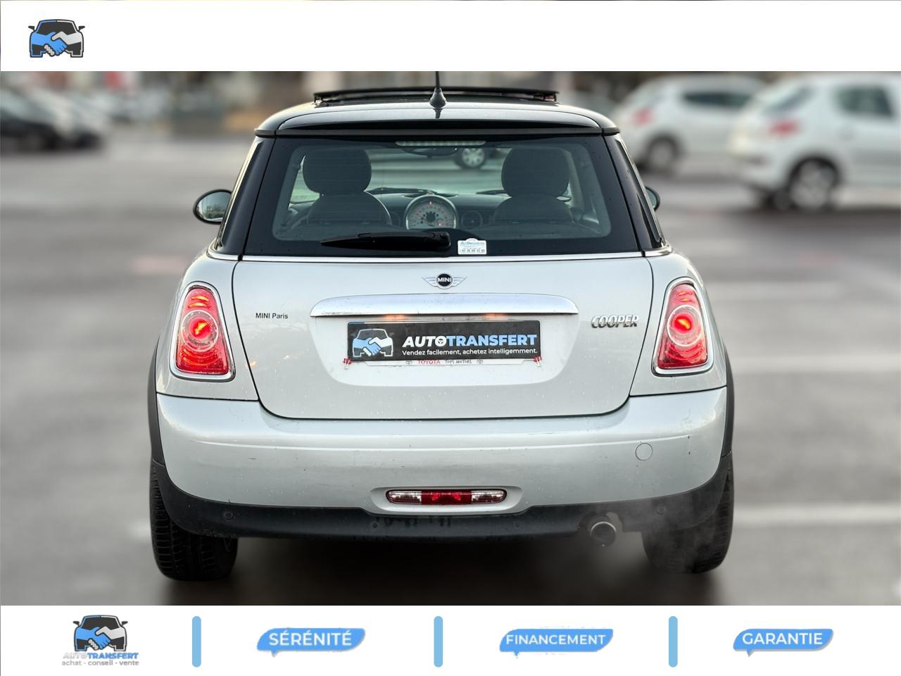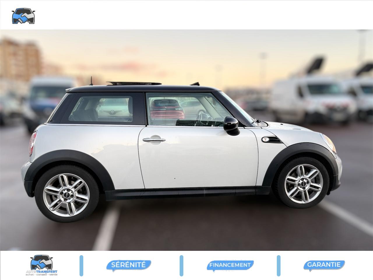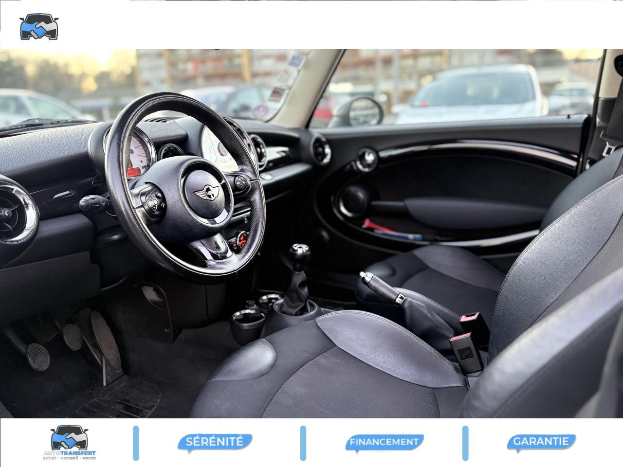 2 clés radiocommandées6 AirbagsABS (Antiblocage de roues)Anti-démarrage électronique EWS IVAutoradio MINI CD avec prise AUX-IN et 6 haut-parleurs et compatibilité MP3Boîte de vitesses manuelle 6 rapportsBouton de démarrage “Start/Stop”Calandre au contour chromé avec lamelles chroméesClimatisation manuelleContrôle de freinage en courbe CBCContrôle Dynamique de la Stabilité DSC, y compris assistant de démarrage en côteDirection à assistance électriqueDossiers de banquette arrière rabattables 50/50Ecrous antivolFeux arrière à technologie DELFeux de stop dynamiquesFixations ISOFIX aux places arrièreFonction d'arrêt et de redémarrage automatique du moteurIndicateur de changement de rapportIndicateur de perte de pression des pneumatiques (RPA)Inserts décoratifs "Fine White Silver"Jantes en alliage léger 15'' design "5-Star Spooler"Lève-vitres et rétroviseurs extérieurs électriquesMINI Mobility System et cricOrdinateur de bordOuïes latérales noires avec répétiteurs de clignotants orange intégrésPare-chocs avant et arrière dans la couleur de la carrosseriePoignée de hayon chroméePoignées de portes chroméesPorte-gobelets à l'avant (x2) et à l'arrièrePrise 12V entre les porte-gobelets avantProjecteurs avant et feux arrière au contour chroméSellerie tissu "Cosmos"Siège conducteur réglable en hauteurSortie d'échappement simple, droite et chroméeSystème d'accès aux places arrière Easy-EntrySystème de récupération de l'énergie au freinageToit et coques de rétroviseurs de couleur blanche ou noireTriangle de présignalisation avec kit de premiers secoursVerrouillage centralisé des portes, du coffre et de la trappe à essenceVitres teintéesVolant gainé cuir 2 branches