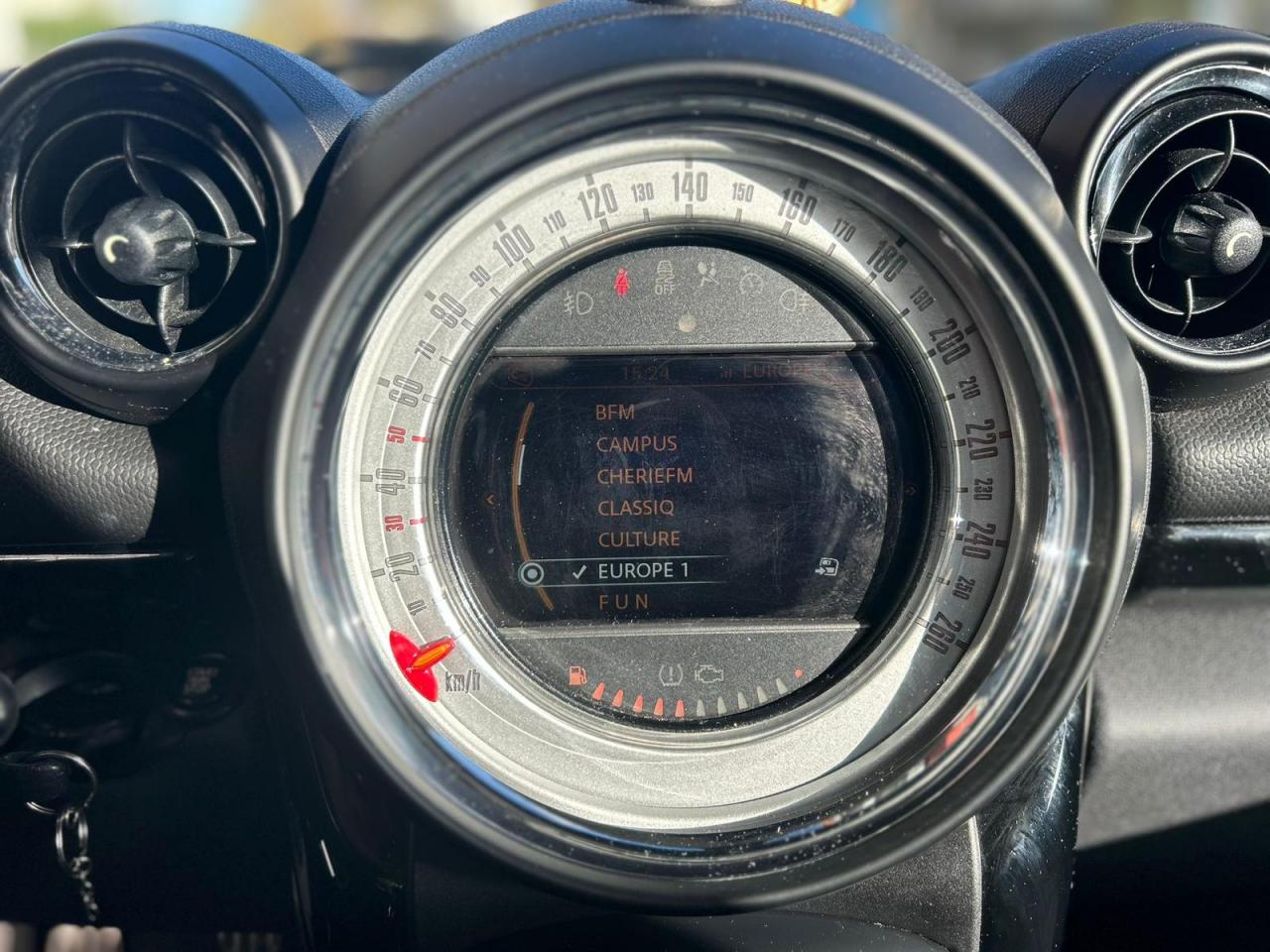 2 clés radiocommandées6 AirbagsABS (Antiblocage de roues)Anti-démarrage électronique EWS IVAutoradio MINI CD avec prise AUX-IN, 5 haut-parleurs et compatibilité MP3Bagues décoratives Silver autour du compteur de vitesse central, des aérateurs centraux et du soufflet de levier de vitessesBanquette arrière 3 places coulissante (60/40) avec dossiers rabattables (40/20/40)Becquet de toit spécifique Cooper SBouton de démarrage “Start/Stop”Calandre au contour chromé avec grille façon “nid d'abeilles”Climatisation automatiqueContrôle de freinage en courbe CBCContrôle dynamique de la motricité DTC y compris blocage électronique de différentiel EDLCContrôle Dynamique de la Stabilité DSC, y compris assistant de démarrage en côteDésactivation de l'airbag du passager avantDirection à assistance électriqueDouble sortie d'échappement chromée gauche/droiteEcrous antivolFeux de stop dynamiquesFiltre à particulesFixations Isofix aux places latérales arrièreFonction d'arrêt et de redémarrage automatique du moteurIndicateur de changement de rapportIndicateur de perte de pression des pneumatiques (RPA)Inserts décoratifs et cadres ellipsoïdaux des panneaux de porte Dark AnthraciteJantes en alliage léger 17” design “5-Star Double Spoke”Lève-vitres électriques à l'avant et à l'arrièreMINI Mobility SystemOrdinateur de bordOuïes latérales Dark Anthracite “S” avec répétiteurs de clignotants blancsPare-chocs avant et arrière dans la couleur de la carrosseriePédalier et repose-pied avec inserts en acier inoxydablePoignées de portes chroméesPorte-boissons à l'avant (x2)Prise d'air supplémentaire au centre de la calandreProjecteurs antibrouillardRails de toit anthraciteRétroviseurs extérieurs à réglage électriqueSellerie tissu “Diagonal Track”Siège conducteur réglable en hauteurSièges avant sportSystème d'aide au stationnement PDC arrièreSystème de récupération de l'énergie au freinageToit et coques de rétroviseurs extérieurs dans la teinte de la carrosserie, blancs ou noirsTouches multifonctions avec régulateur de vitesse au volantTriangle de présignalisation avec kit de premiers secoursVerrouillage centralisé des portes, du coffre et de la trappe à essenceVolant sport 3 branches gainé de cuir