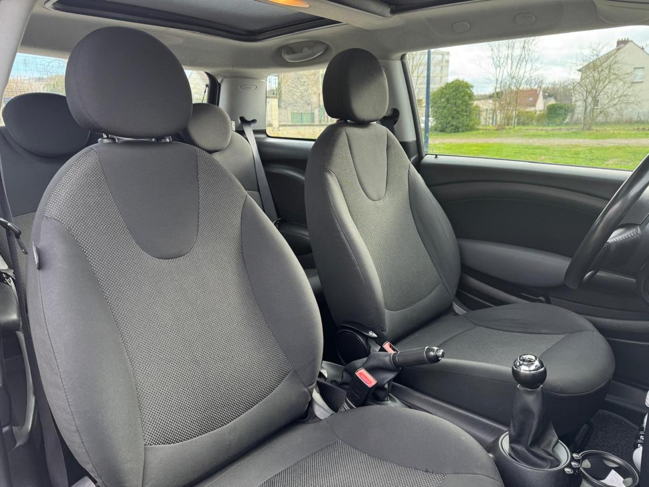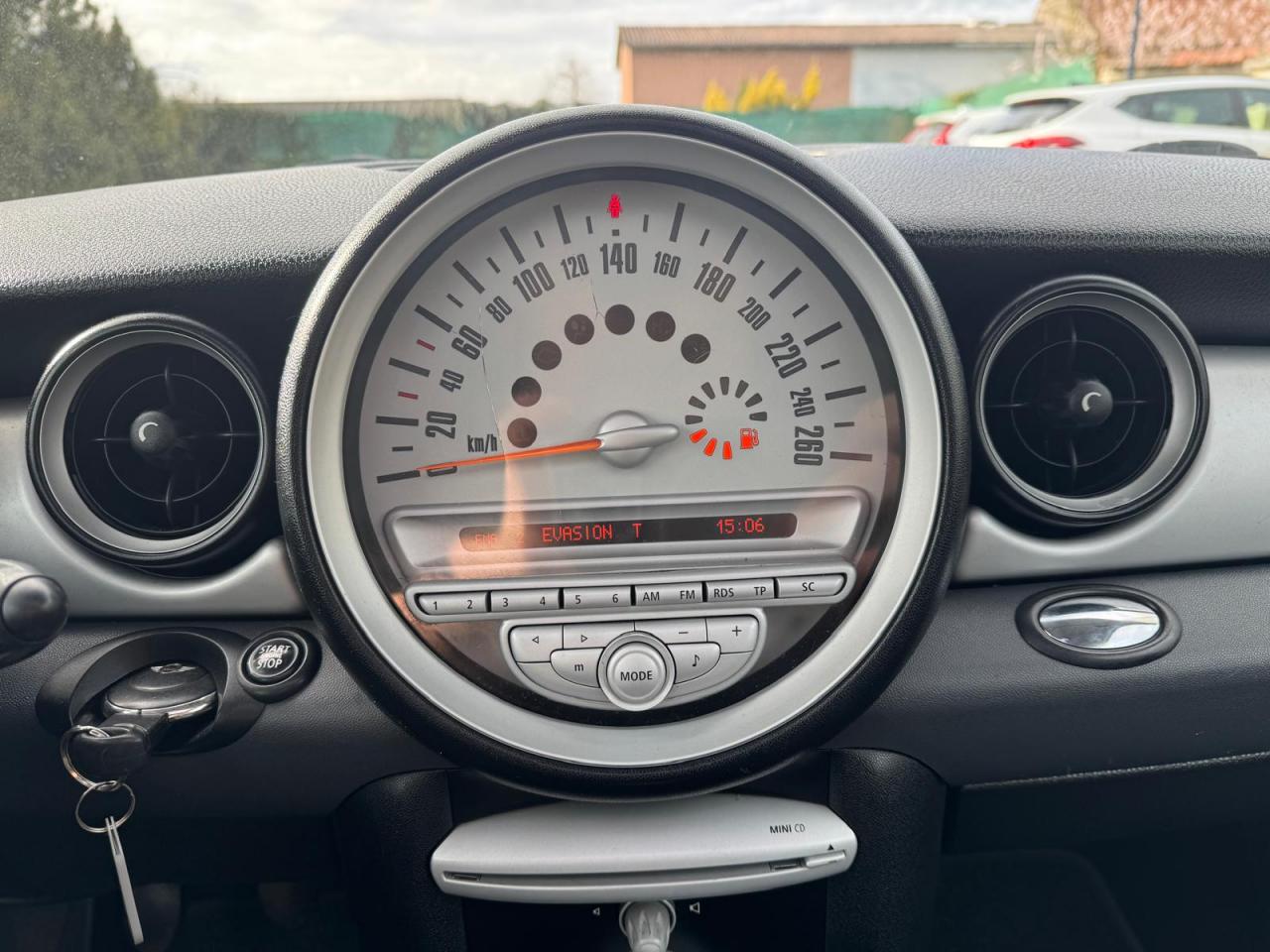6 AirbagsABS (Antiblocage de roues)Anti-démarrage électronique EWS IVAutoradio MINI CD avec prise Aux-In et 6 haut-parleursBanquette AR rabattable 50/50Barres de calandre noir matBouton de démarrage “Start/Stop”Câble iPodContour chromé des projecteurs avant et des feux arrièreContrôle de freinage en courbe CBCContrôle Dynamique de la Stabilité DSC, y compris assistant de démarrage en côteCoques de rétroviseurs noir matCricDirection à assistance électriqueFixations ISOFIX aux places arrièreIndicateur de perte de pression des pneumatiques (RPA)Inserts décoratifs "Fine White Silver"Jantes en acier 5,5 J x 15'' avec couvre-moyeuLève-vitres et rétroviseurs extérieurs électriquesMINI Mobility SystemPare-chocs avant et arrière dans la couleur de la carrosseriePartie inférieure du tableau de bord et accoudoirs de portes en plastique couleur Dark GreyPoignées de portes chroméesPorte-gobelets à l'avant (x2) et à l'arrièrePrise 12V entre les porte-gobelets avantSellerie tissu "Cosmos"Siège conducteur réglable en hauteurSortie d'échappement simple et droiteSystème d'accès aux places arrière Easy-EntryToit couleur carrosserieTriangle de présignalisation avec kit de premiers secoursVerrouillage centralisé des portes, du coffre et de la trappe à essenceVolant 2 branches réglable en hauteur et en profondeur
