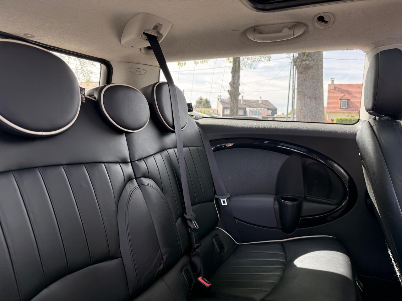 6 Airbags : 2 frontaux, 2 latéraux et 2 rideaux gonflables latérauxABS avec aide au freinage d'urgenceAffichage en temps réel les besoins de maintenance du véhiculeAutoradio MINI AM/FM avec prises AUX-IN et port USBBaguettes de seuil de porte avec inscription de la motorisation façon métalliqueBanquette arrière : trois places, rabattable 40/60Becquet arrière de toitCalandre au contour chromé avec lamelles “White aluminium”Cerclage des buses d'aération chroméesClimatisation manuelleColour Line Carbon BlackCompte-tours et ordinateur de bord multifonctionsContrôle Dynamique de la Stabilité DSC, y compris assistant de démarrage en côteCric et clé pour écrous antivolDécoration intérieure MINI Yours Off-WhiteEclairage d'accompagnement "Follow me Home"Ecrous antivolFeux arrière à technologie LEDFixation ISOFIX à l'arrièreFonction sécurité piéton avec capot actifFonction Start & Stop et démarrage sans cléIndicateur de crevaisonOuïes latérales noires avec répétiteurs de clignotants orange intégrésPare-chocs avant et arrière couleur carrosseriePoignée de hayon chromée “White aluminium”Poignées de portes chroméesPoignées de portes intérieures chroméesPorte-boissons à l'avant (x2)Prise 12V sous la console centraleRétroviseurs extérieurs couleur carrosserieSiège conducteur réglable en hauteurSortie d'échappement simple, droite et chroméeSurveillance de pression des pneumatiquesToit couleur carrosserieVolant en cuir 3 branches réglable en hauteur et en profondeur avec insert Piano Black