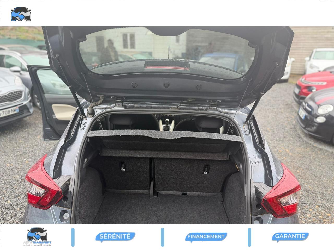 2 porte gobelets à l'avantABS (Antiblocage de roues)Accoudoir des contre-portes avant en TEP NoirAide au démarrage en côteAirbags frontaux avant (déconnectable côté passager)Airbags latéraux avantAirbags rideauxAllumage automatique des projecteursAvertisseur de bouclage de ceintureBacs de rangement dans les contre-portes avantBanquette arrière rabattable 40/60Cache-bagages amovibleCeintures de sécurité arrière 3 points à enrouleur (x3)Ceintures de sécurité avec prétensionneur et limiteur d'effort à l'avant et à l'arrièreCerclages aérateurs Chrome SatinClimatisation manuelleCombiné d’instrumentation avec écran LCD-TFT 5" couleurCommandes au volantContrôle de pression des pneus ( TPMS )Direction assistée asservie à la vitesseEclairage de coffreESP (Correcteur électronique de trajectoire)Feux de détresse automatiquesFeux de route halogène avec signature lumineuseFeux diurnes à LEDFinition chrome satiné du pommeau de levier de vitesseFreinage d'urgence intelligent (AEB) avec détection piétonIndicateur de changement de rapportIntelligent Ride ControlIntelligent Trace ControlJantes alliage 16''Kit de réparation pneumatiqueNBAS (Amplificateur de freinage d'urgence)Pare-soleil côté conducteur et passager avec miroir de courtoisiePartie supérieure du tableau de bord mousséePoignées de portes avant couleur carrosseriePoignées de portes intérieures chromePorte-bouteille dans les portières avantPorte-gobelets arrière (x1)Prise 12V (x1)Régulateur et limiteur de vitesseRépartiteur électronique de freinage (EBD)Repose-genoux rembourrés avec surpiqûres en TEP NoirRétroviseurs extérieurs à réglage électrique,rabattables manuellementRétroviseurs extérieurs couleur carrosserie avec indicateurs de changement de directionSécurité enfants sur les serrures des portes arrièresSellerie Tissu noirSiège avant anti-fatigueSiège conducteur réglable en hauteurSignature Made in France sur les montants arrière et en bas du volant 3 branchesSpoiler arrièreStickers latéreaux en bas des portières et sur les pare-chocsSystème anti-patinage (TCS)Système audio radio RDS avec écran tactile 7"Système d'antidémarrageSystème Isofix aux places latérales arrière et passager avantSystème Stop & StartTableau de bord en TEP BeigeVitres arrière manuellesVitres arrière teintéesVitres électriques à l'avantVolant réglable en hauteur et en profondeur