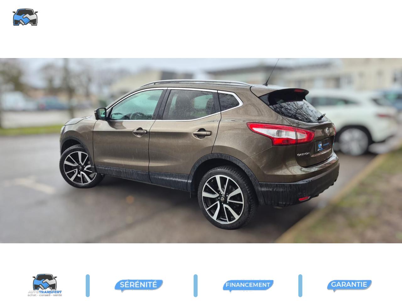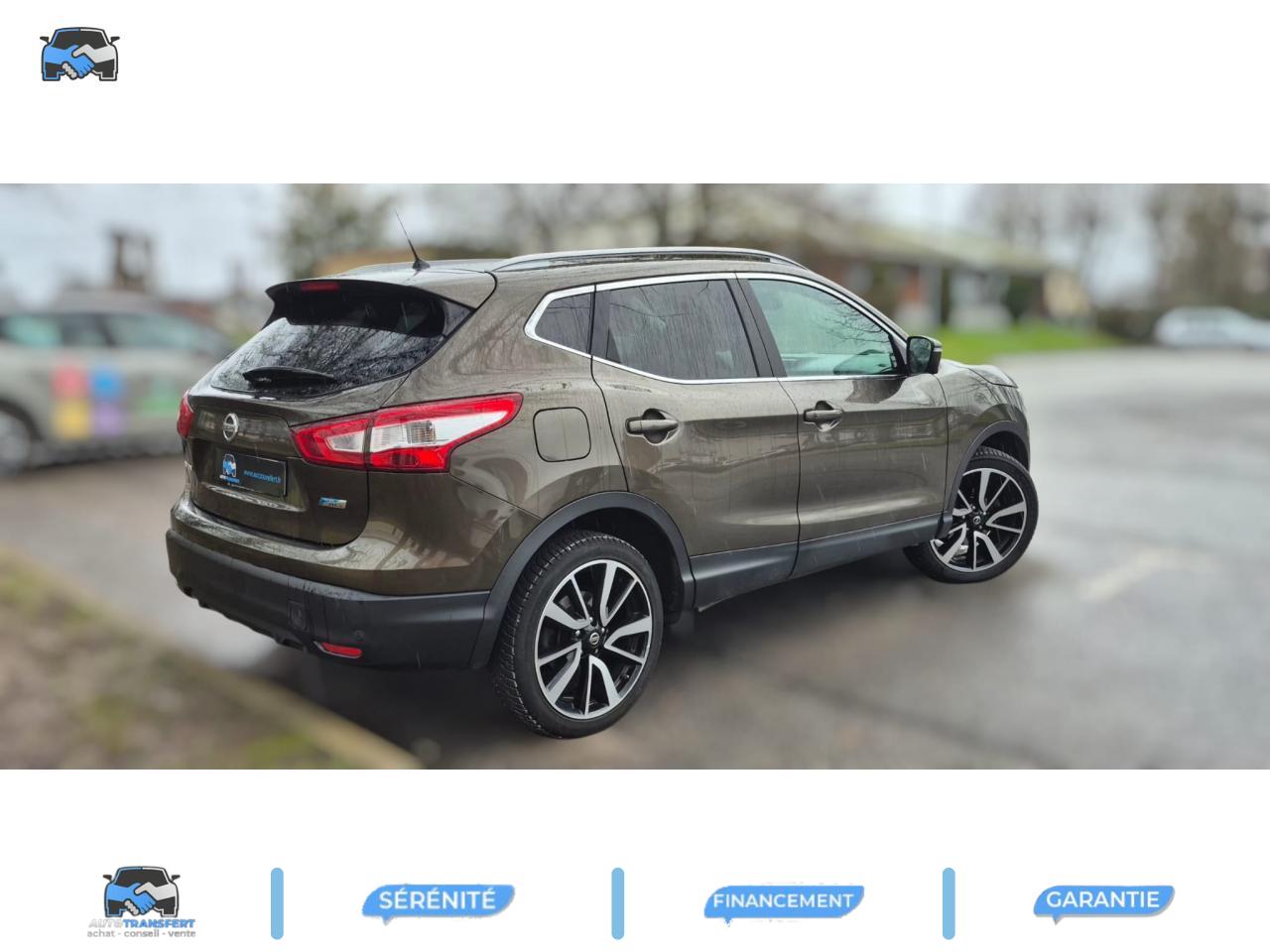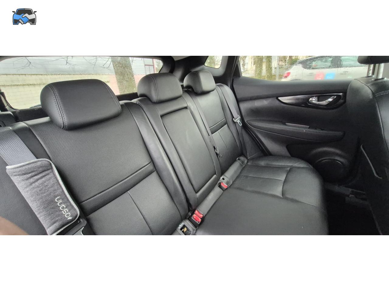 ABS (Antiblocage de roues)Accoudoir arrière avec porte-gobeletscamera 360°Pack City Camera PlusAide au démarrage en côteAide au stationnement avant/arrièreAllumage automatique des projecteursBarres de toit longitudinales couleur argentClimatisation automatique bi-zoneContour des vitres latérales chroméContrôle de pression des pneus ( TPMS )Direction assistée électrique ajustable (mode Sport ou Normal)Eclairage d'ambiance intérieurEcran TFT couleur HD 5''ESP (Correcteur électronique de trajectoire)Essuie-glace à déclenchement automatiqueFermeture et ouverture centralisées des portes à distanceFeux antibrouillard avant avec cerclage chroméFeux diurnes à LED avec signature lumineuseFrein de parking électriqueJantes alliage 19''Kit de réparation pneumatiqueLimiteur et régulateur de vitesse avec commandes au volantNBAS (Amplificateur de freinage d'urgence)Nissan Safety ShieldNissan Safety Shield PlusNissanConnectPare-brise chauffantPare-soleil côté conducteur et passager avec miroir de courtoisie éclairéPhares Bi-LEDPlancher de coffre modulablePoignées de portes couleur carrosserieProtection de bas de caisse noireRépartiteur électronique de freinage (EBD)Rétroviseur intérieur électrochromeRétroviseurs extérieurs rabattables électriquementSellerie cuir noirSiège avant anti-fatigueSiège conducteur à réglages électriquesSiège conducteur avec réglage en hauteurSiège conducteur avec réglage lombaireSièges avant chauffantsSystème "Chassis Control"Système anti-démarrageSystème audio RDS CD avec commandes au volant, 6 HP et connexion USBSystème d'ouverture et de démarrage sans clé "Intelligent Key"Système de stationnement intelligent (IPA)Système mains libres Bluetooth avec commandes au volantToit panoramique en verreVitres électriques à l'arrièreVitres électriques à l'avant (avec mode impulsionnel côté conducteur)Vitres latérales arrière et vitre de hayon surteintéesVolant et levier de vitesse gainés cuirVolant réglable en hauteur et en profondeur