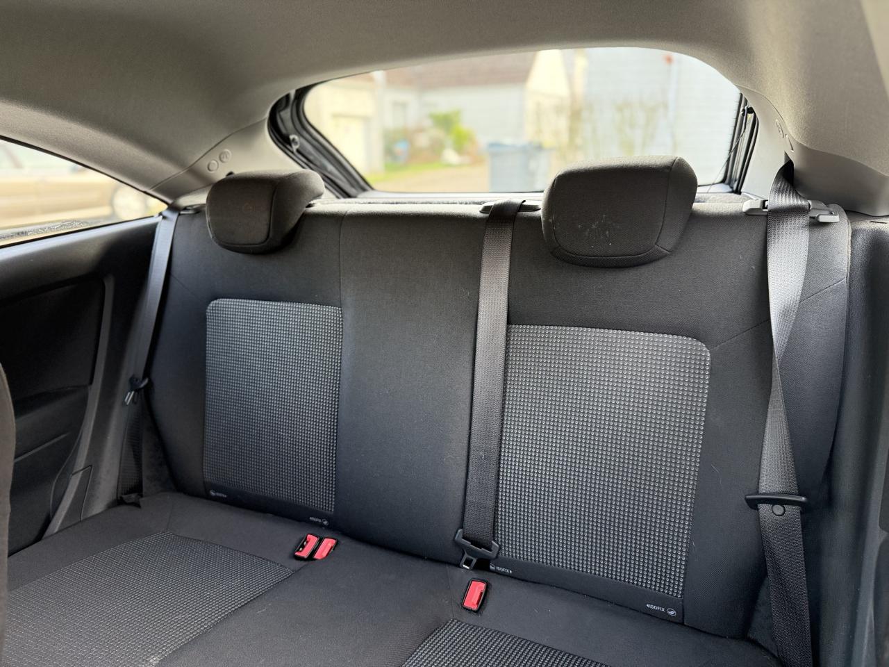 2 appuis-tête AR réglables en hauteurAirbag frontaux conducteur et passagerAirbag Opel passager déconnectable par interrupteur depuis la console centrale avec témoin sur tableau de bordAirbags Opel latéraux sur sièges avantAlarme sonore d'oubli d'extinction des feuxAllumage automatique (5 fois par seconde) des feux stop en cas de freinage d'urgenceAllumage automatique des feux de détresse en cas de déclenchement des airbags et / ou des prétensionneursBacs de rangement intégrés aux portes AVCache-bagages rigide avec glissière de rangement au dos de la banquette arrièreCalandre chroméeCarrosserie galvaniséeCeintures de sécurité 3 points à enrouleur AV et ARCeintures de sécurité anthracitesCeintures de sécurité AV avec pré-tensionneurs (thorax) et limiteur d'effortClignotants latéraux additionnelsColonne de direction à déformation préprogrammée et absorption d'énergieCommandes centrales de radio et de l'aérateur rétro-éclairéesCommandes des clignotants et des essuie-glaces par impulsionCompte-tours électroniqueCompteur kilométrique et totalisateur journalier à affichage digitalConsole centrale chrome matCoques de rétroviseurs extérieurs, ton caisseDirection électrique à assistance variable (EPS)Eclairage du coffreEssuie-glace arrière avec déclenchement automatique en marche arrièreEssuie-glaces AV électriques 3 vitesses dont une intermittenteExtinction différée des phares "Porte-à-porte"Fixations Isofix sur les deux sièges latéraux arrièreJantes 14'' avec enjoliveursJauge à carburant avec alerte miniKit anti-crevaisonLunette AR dégivranteMiroirs de courtoisie passager avantPlafonnier central à extinction automatiquePoches aumônières au dos des sièges avantPoignée d'ouverture du coffre électrique couleur carrosseriePoignées de maintien pour passager AVPré-équipement radio comprenant : 4 haut-parleurs, antenne de toit avec amplificateur électronique, écran triple fonction (date, heure, température extérieure et fréquence radio avec les postes Opel)Renforts latéraux de sécuritéRétroviseurs extérieurs, asphérique côté conducteur, à réglage électriqueSellerie tissu Punch / Elba, anthraciteSiège conducteur réglable en hauteurSystème "entrée facile" avec mémorisation de la position des sièges conducteur et passagerSystème antiblocage des roues (ABS électronique) avec contrôle de freinage en courbe (CBC) et aide au freinage d'urgenceSystème de pédalier rétractable en cas de choc frontalTroisième feu stopVerrou électronique Opel (antidémarrage)Vitres teintéesVolant réglable en hauteur et en profondeur