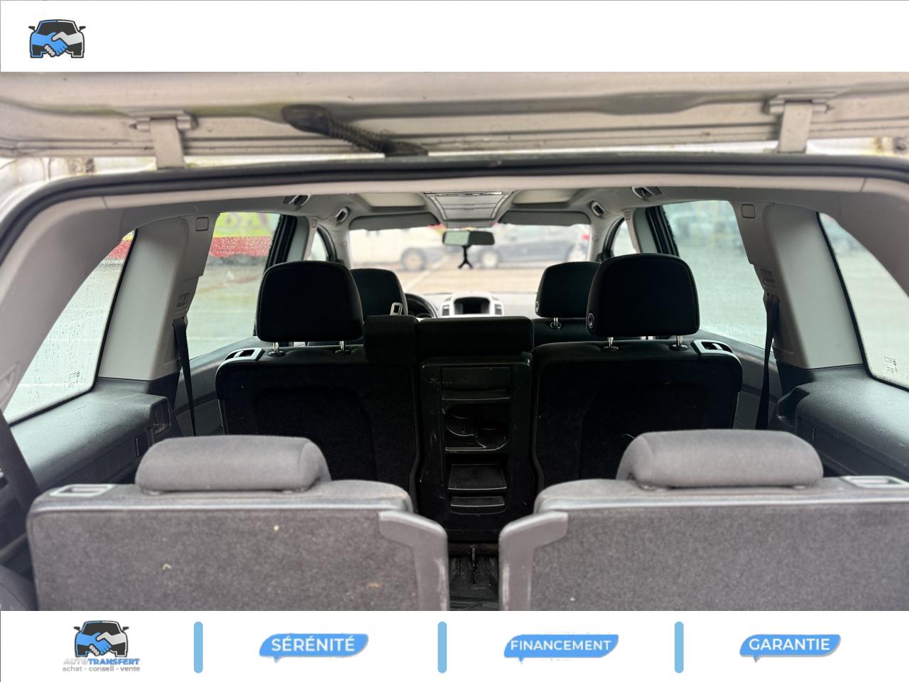 3ème feu stop arrière7 Appuis-tête réglables en hauteur7 Ceintures de sécurité 3 points à enrouleurAirbags conducteur et passagerAirbags latéraux sur sièges avantAirbags rideauxAlarme sonore d'oubli d'extinction des feuxAntenne de toitAvertisseur ''2 tons''Bandeaux de décor sur tableau de bord, portières, console centrale et radio "Chrome mat"Boîte à gants éclairéeBoucliers couleur carrosserieCache-bagages utilisable en 5 et 7 placesCalandre chroméeCarrosserie galvaniséeCeintures de sécurité avant avec prétensionneurs et limiteur d'effortClé avec télécommande intégréeClignotants latéraux additionnelsClimatisation manuelle avec système de recyclage d'airColonne de direction à déformation programmée et absorption d'énergieCommandes des clignotants et des essuie-glaces par impulsionCompte-tours électroniqueCompteur kilométrique et totalisateur journalier à affichage digitalContrôle électronique de trajectoire ESP+ avec contrôle de traction électronique TC+Direction à assistance variableEssuie-glace arrière avec déclenchement automatique en marche arrièreEssuie-glaces AV à 3 vitesses dont une intermittenteFixations Isofix sur les deux sièges arrièreFonds de blocs optiques avant à traitement chroméIndicateur de maintenanceInstrumentation avec cadrans noirs et cerclages chromésJantes de style 16" - 205 / 55 R 16Jauge à carburant avec témoin d'alerte de niveau minimumKit anti-crevaisonLunette arrière dégivranteMontants latéraux noirsMoulures de pare-chocs couleur carrosserieOrdinateur de bord 6 fonctions (consommation moyenne, consommation instantanée, distance parcourue, autonomie, durée du trajet, vitesse moyenne)Pavillon Aviation avec jalousies électriques à commande à impulsion et 5 logementsPoignées de portes chromées, frein à main type aviationPoignées de portes couleur carrosserieProtections latérales couleur carrosserieRadio CD 30 MP3 avec prise auxiliaire audio - CD - RDS - AM/FM - 4x17 W - Double Din - 6 haut-parleurs - volant multifonctionRéglage électrique de l'assiette des pharesRéglage lombaire côté conducteurRétroviseurs extérieurs couleur carrosserieRétroviseurs extérieurs, asphérique côté conducteur, à réglage électrique et dégivrantsSellerie drap "Tabita / Elba" anthraciteSiège conducteur réglable dans 8 directions dont réglage en hauteurSpots de lecture avant et arrièreSystème "Flex7" comprenant : Banquette AR coulissante avec dossier rabattable en 40/20/40, 2 sièges séparés en 3ème rangée entièrement escamotables dans le plancherSystème antiblocage des roues (ABS électronique) avec contrôle de freinage en courbe (CBC) et aide au freinage d'urgenceSystème de pédalier rétractable (PRS) en cas de choc frontal (EPRS)Verrou électronique Opel (antidémarrage)Verrouillage centralisé des portes, du coffre et de la trappe à carburant à télécommandeVide-pochesVitres électriques AR à impulsion et fonction anti-pincementVitres électriques AV avec fonction anti-pincementVolant 3 branches avec 2 inserts "Anthracite métal"Volant réglable en hauteur et en profondeur