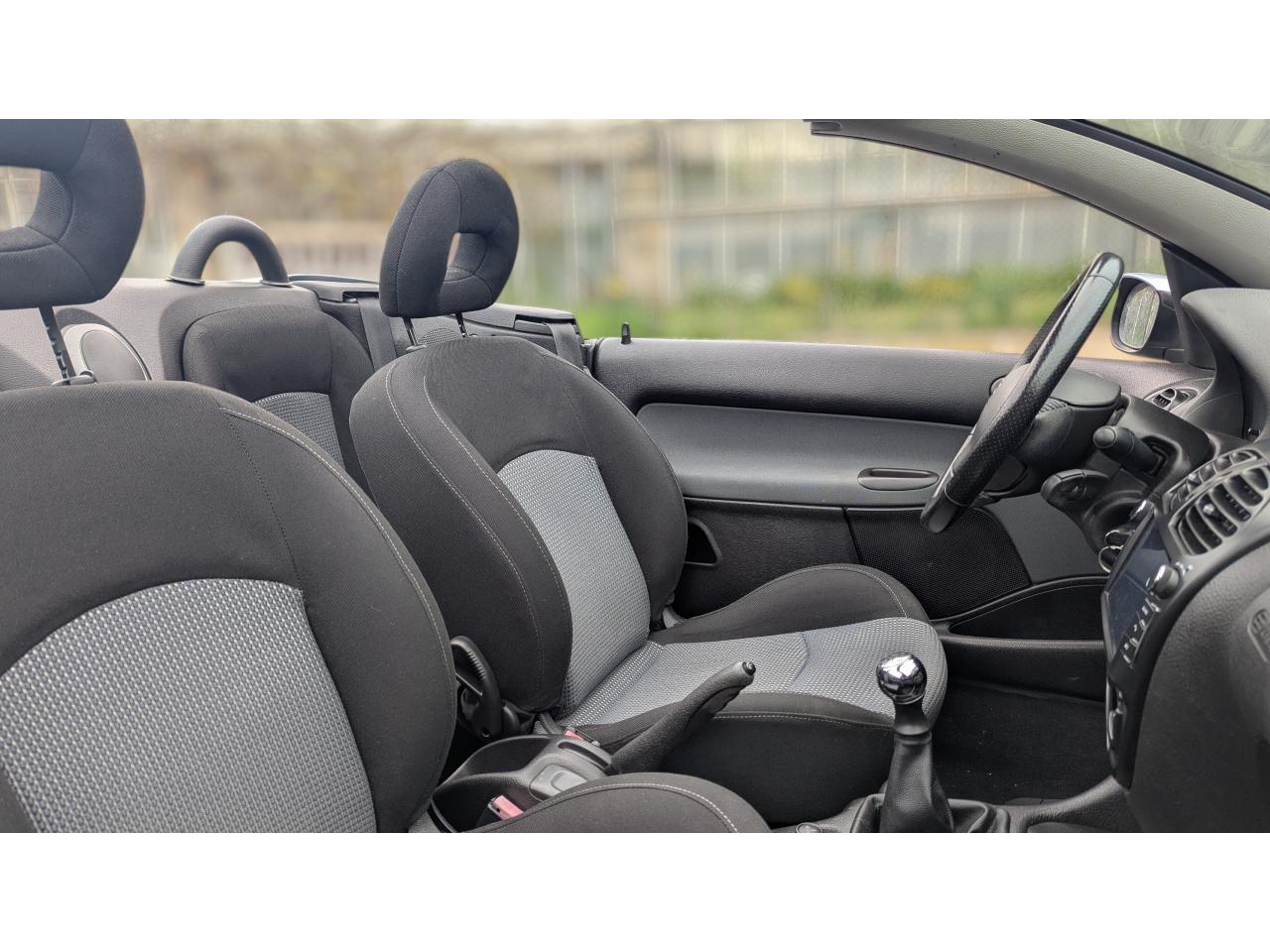 2 sièges AR non rabattables avec arceaux de style noirs3ème feu stop arrièreABS (Antiblocage de roues)ABS, Répartiteur électronique, aide au freinage d'urgence, allumage auto des feux de détresseAir conditionné, filtre anti-pollen et recyclage de l'airAirbag conducteurAirbag frontal passagerAirbags conducteur et passagerAirbags latérauxAlarme sonore d'oubli de clef sur le contactAlarme sonore d'oubli des feuxAlarme sonore de fin de cycle de toitAllume-cigare et cendrier éclairésAnneau arrimageAntenne courte de pavillon préamplifiéeAnti-démarrage électroniqueAnti-démarrage par transpondeurAppuie-tête annulaires sur sièges AVAutoradio CD frontalAutoradio Peugeot Audio CD RD3Avertisseur de portes ouvertesBacs de rangement dans les portesBaguettes de protection latérale noiresBoîte à gants avec couvercle revêtu de tissu, velours ou AlcantaraCanule d'échappement chroméeCeintures de sécurité à enrouleur 3 pointsCeintures de sécurité avant à prétensionneurs pyrotechnique et limiteurs d'effortCombiné à cadrans noirs et aiguilles blanchesCommandes de l'autoradio au volantCompte-tours électroniqueCondamnation centralisée à distance avec plip haute fréquenceCorrecteur automatique de la hauteur des projecteursCrochets d'arrimage dans le coffreDirection assistéeEclairage de coffreEssuie-vitre avant à 2 vitesses avec balayage intermittent et lave-glace électriqueEssuie-vitre avant à intermittenceFacade centrale technique et rehaut compteur gris carboneFeu arrière antibrouillardFeux de reculFiltre à pollenGarnissage plancher et côtés de coffreHabillage des sièges tressé et chaîne et trameIndicateur de maintenanceIndicateur de niveau d'huileIndicateur de température d'huile et voltmètreIndicateur de température extérieureISOFIX : Ancrages normalisés pour sièges enfantsJupes avant et arrière couleur caisseKit anti-crevaisonLave-glace électriqueLève-vitres arrières électriquesLève-vitres avant électriques, à impulsion côté conducteurLève-vitres électriquesLève-vitres électriques avantLunette AR chauffante temporiséeLunette arrière chauffanteMiroir(s) de courtoisieMontre digitale (ou numérique)Montre électronique à affichage numérique, écran déporté sur la facade centraleOrdinateur de bordPeugeot Services MobilesPoignées de portes couleur carrosseriePorte-gobeletsProjecteurs à iodeProjecteurs antibrouillardProjecteurs principaux à double optique, lampes H7 et glace lisseRecyclage de l'air dans l'habitacleRéglage de site des projecteursRéhostat d'éclairage du combinéRétroviseur jour/nuitRétroviseurs extérieur à commande manuelleRétroviseurs extérieurs couleur carrosserieRétroviseurs extérieurs électriques et dégivrantsSerrure sur bouchon de réservoir carburantSiège conducteur réglable en hauteurSiège passager avec fixation IsofixSièges avant basculants à mémoireSièges SportTémoin d'alerte STOP (eau, huile)Témoin de batterieTémoin de changement de directionTémoin de coussins gonflablesTémoin de dysfonctionnement d'airbagTémoin de feu antibrouillardTémoin de frein parkingTémoin de mini-carburantTémoin de niveau d'huile et de température d'eauTémoin de projecteurs (croisement, route)Témoins d'alerte du niveau de liquide de frein, d'usure des plaquettes de frein et de frein à mainTotaliseur kilométriqueVelum de coffre avec enrouleurVerrouillage centralisé des portes et du hayon avec commande par plip HF et fonction localisationVitres teintéesVolant 3 branchesVolant réglable en hauteur