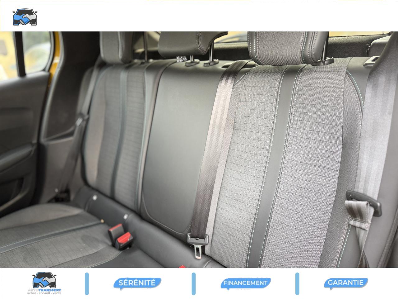 2 prises USB (Recharge type A) sur console basse pour passagers arrière3 poignées de maintien (1 à l'avant et 2 à l'arrière)6 haut-parleurs (2 tweeters et 2 woofers à l'avant et 2 larges bandes à l'arrière)ABS (Antiblocage de roues)AFU (Assistance au freinage d'urgence), REF (Répartiteur Electronique de Freinage)Aide graphique et sonore au stationnement arrièreAirbags frontaux, latéraux AV et rideauxAlarme de non bouclage des ceintures de sécurité avantAlerte de non-bouclage des ceintures à l'arrièreAllumage automatique des projecteursAppuie-tête avant et arrière (aux 3 places) réglables en hauteurAvertisseur de temps de conduiteBandeau entre feux arrière noir brillantBanquette arrière rabattable 1/3-2/3Boitiers de rétroviseurs extérieurs noir brillantCalandre avec grille supérieure avec marquage chrome brillant et enjoliveur supérieur noir grainéCeinture de sécurité arrière centrale 3 pointsCeintures de sécurité arrière latérales, avec enrouleurs pyrotechniques et limiteurs d'effortCeintures de sécurité avant avec enrouleurs pyrotechniques et limiteurs d'effortClimatisation automatique mono-zoneConsole haute avec accoudoir intégréContrôle de stabilité de la remorque (TSM)Contrôle Dynamique de stabilité (DSC)Décor panneaux de portes Noir et AzureDétecteur de sous-gonflage indirectDirection assistée électriqueEclairage de coffreEclairage intérieur à ampoules : plafonnier avant à 3 spots (1 lampe et 2 liseuses)Enjoliveur de pied milieu noir brillant avec sérigraphies sur l’avantEssuie-glace à déclenchement automatiqueFeux arrière LEDFixations ISOFIX Top Tether pour les places latérales arrièreFonction 'Mirror Screen' (Apple Carplay / Android Auto)Fonction BluetoothFrein de stationnement électrique avec aide au démarrage en pente et serrage automatiqueHabitacle et ciel de pavillon gris clairJantes alliage 16'' SOHO diamantées peintes Gris StormJupes de pare-chocs arrière inférieure Noir grainée et supérieure Noir brillantKit de dépannage pneumatiqueLève-vitres électriques arrière à fonctions séquentielle et anti-pincementLève-vitres électriques avant à commande séquentielle et anti-pincementPack SafetyPare-brise teinté et acoustiquePeinture métallisée Jaune FaroPeugeot i-Cockpit avec combiné tête haute analogique et matrice couleur 3"5Projecteurs 'Peugeot LED Technology' avec feux diurnes à LED sous projecteursRadio avec écran tactile 7" couleur capacitif, Bluetooth, 2 prises USB console avant (une DATA Type A et une de recharge type C)Radio Numérique DABRégulateur et limiteur de vitesseRétroviseur intérieur électrochromeRétroviseurs extérieurs réglables, rabattables électriquement et dégivrantsSellerie Tri matière Tissu / TEP COSY , surpiqûres Vert MintSeuil de portes lettrage PEUGEOTSiège conducteur avec réglage manuel en hauteurSystème de contrôle de trajectoire (ESC) avec fonction antipatinage (ASR)Télécommande 3 boutons + clé standardVerrouillage automatique de tous les ouvrants en roulantVitres latérales arrière et lunette arrière chauffante temporisée surteintéesVolant compact croute de cuir, Lion chromé et commandes multimédia sur volantVolant réglable en hauteur et en profondeur