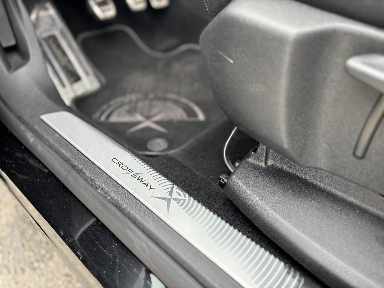 ABS avec répartiteur électronique de freinage (REF) et aide au freinage d'urgence (AFU)Accès et démarrage mains-libresAccoudoir central avant à ouverture papillon, avec compartiment de rangement éclairé et réfrigérableAdvanced Grip ControlAide graphique et sonore au stationnement arrièreBadge Crossway sur ailes avant et sérigraphie sur montants de portesDeux porte-gobelets intégrés à la console centraleDirection assistée électrique, avec colonne de direction réglable en hauteur et profondeur (mécanique)Eclairage intérieur à LEDFrein de stationnement électrique avec aide au démarrage en penteIndicateur de rapportLève-vitres électriques avant et arrière, séquentiels et antipincementPack City 1Prise USBPrises 12V (x 3)Vitres électriques AR avec sécurité enfant