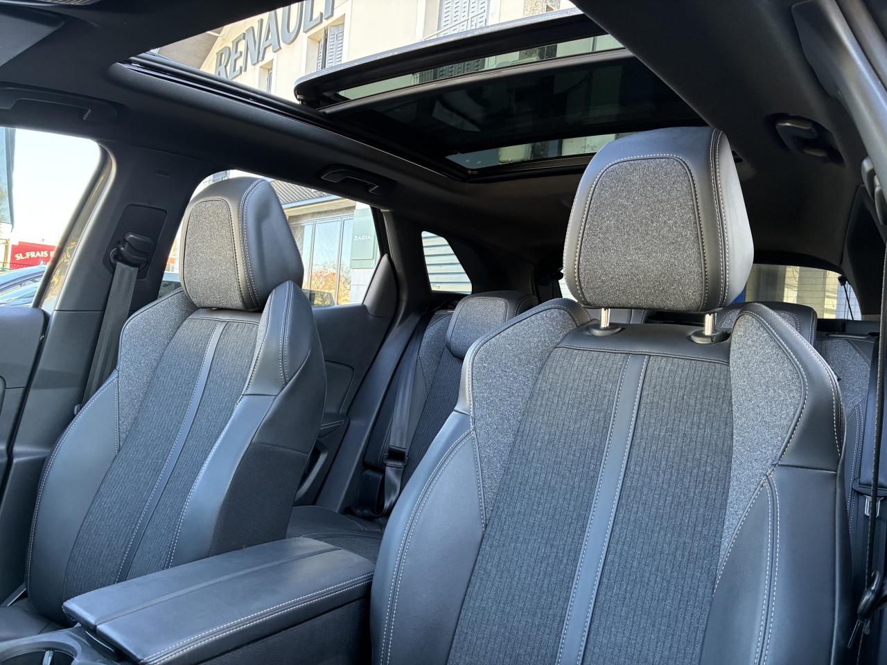 ABS avec répartiteur électronique de freinage (REF) et aide au freinage d'urgence (AFU)Accès et démarrage mains-libresAide graphique et sonore au stationnement arrièreAir conditionné automatique bi-zone avec aérateurs aux places arrièreAirbags frontaux conducteur et passager adaptatifs (airbag passager déconnectable)Airbags latéraux conducteur et passager avantAirbags rideaux de tête aux places avant et arrièreAppuis-tête à sécurité optimisée réglables en hauteur sur les sièges conducteur et passager avant ainsi que sur les places latérales arrièresAvertisseur de temps de conduiteBandeau de pare-choc arrière chroméBanquette rabattable 1/3 - 2/3 (modularité 'Magic Flat' et commandes dans le coffre) avec accoudoir et trappe à skisBarres de toit longitudinales profilées en aluminiumBoîte à gants floquée et éclairéeCalandre GT avec design évolutif chroméCanules d'échappement de style chroméesCommande de verrouillage à distance (deux plips)Commandes de lève-vitres avec inserts chromésContrôle dynamique de stabilité CDS avec antipatinage électronique ASRCoques de rétroviseurs extérieurs Noir Perla NeraDétection de sous-gonflage indirecteDirection assistée électrique, avec colonne de direction réglable en hauteur et profondeur (mécanique)Drive Mode : Choix de 2 modes de conduite (Eco ou Sport)Driver Sport PackEclairage intérieur à LED : plafonniers et rangementsEssuie-glace arrière avec déclenchement automatique en marche arrièreFixations pour trois sièges enfants suivant norme ISOFIX aux places passager avant et latérales arrièreFonction 'Mirror Screen' (Apple Carplay / Android Auto)Frein de stationnement électrique avec aide au démarrage en penteHabitacle et ciel de pavillon Noir MistralHayon mains libres : volet de coffre motorisé avec accès mains libresIndicateur de rapport engagéJoncs de vitres latérales en inoxLève-vitres électriques avant et arrière, séquentiels et antipincementLunette arrière chauffante avec antennes sérigraphiéesMiroirs de courtoisie éclairésNavigation 3D connectée avec reconnaissance vocale, écran tactile capacitif 10" HDPack City 1Pack Eclairage d'ambiancePack VisibilitéPassages de roues rapportés noirsPédalier et repose-pied conducteur en aluminiumPeugeot i-Cockpit : combiné tête haute numérique haute qualité d'affichage, écran tactile capacitif 10" HD et volant compact multi-fonctionsPlafonnier avec spots de lecture avant (x2) et arrière (x2)Planche de bord surpiquéePrise USB (dans la zone connectique)Projecteurs 'Peugeot Full LED Technology' avec correction automatique de site, fonction Eclairage Virage Statique,'Foggy Mode' et feux diurnes à LED prolongés dans les projecteursRadio avec fonction DAB (Radio Numérique Terrestre), bi-tuner compatible MP3 et connectivité Bluetooth (audio streaming, kit mains libres), avec commandes au volant, 6 HP, écran tactile capacitif 10" HDRétroviseur intérieur à position nuit automatique, sans encadrementRétroviseurs extérieurs électriques et dégivrants, rabattables électriquement avec éclairage d'accueil à LEDSécurité enfant électrique des vitres arrièreSellerie TEP & Alcantara MistralSeuils de portes avant en inoxToggle Switches' chromés (touches 'piano' d'activation des fonctions de l'écran tactile)Toit 'Black Diamond' (toit Noir Perla Nera)Verrouillage automatique de tous les ouvrants en roulantVitres latérales et lunette arrière surteintéesVolant cuir fleur perforé avec bagues chrome acier et badge GT