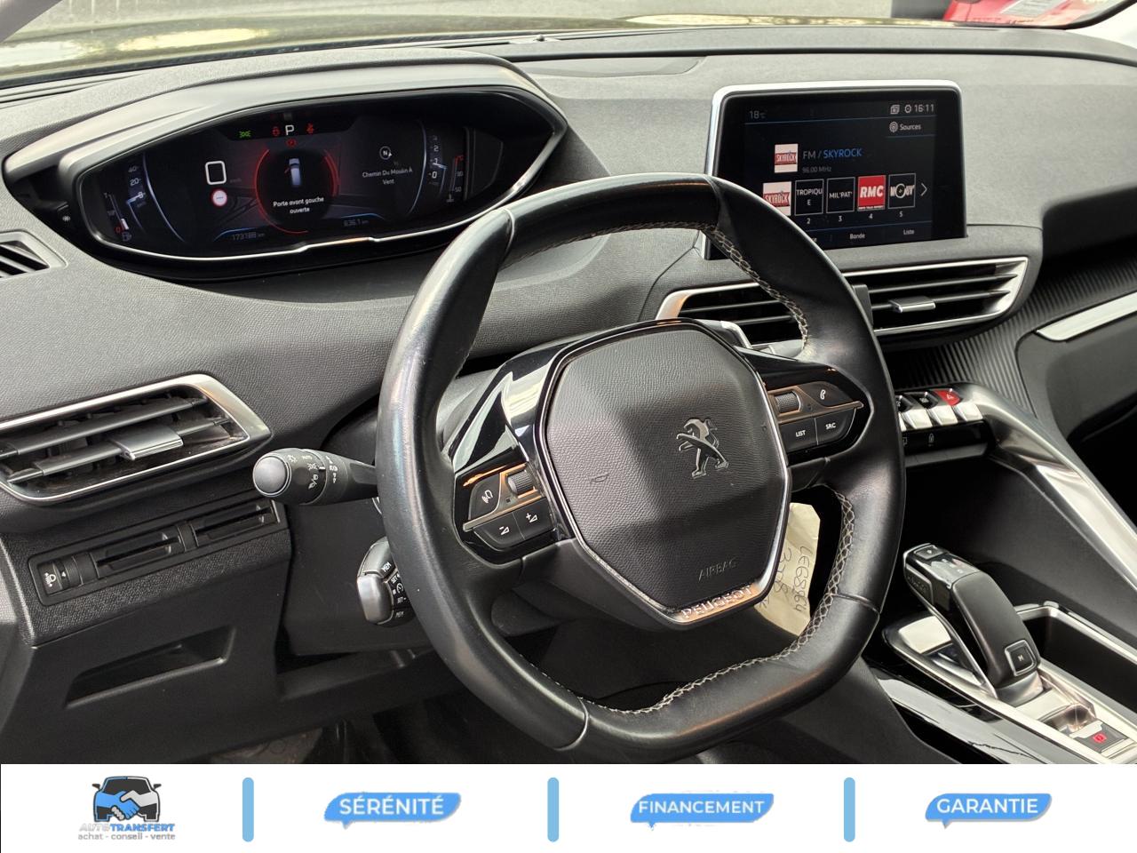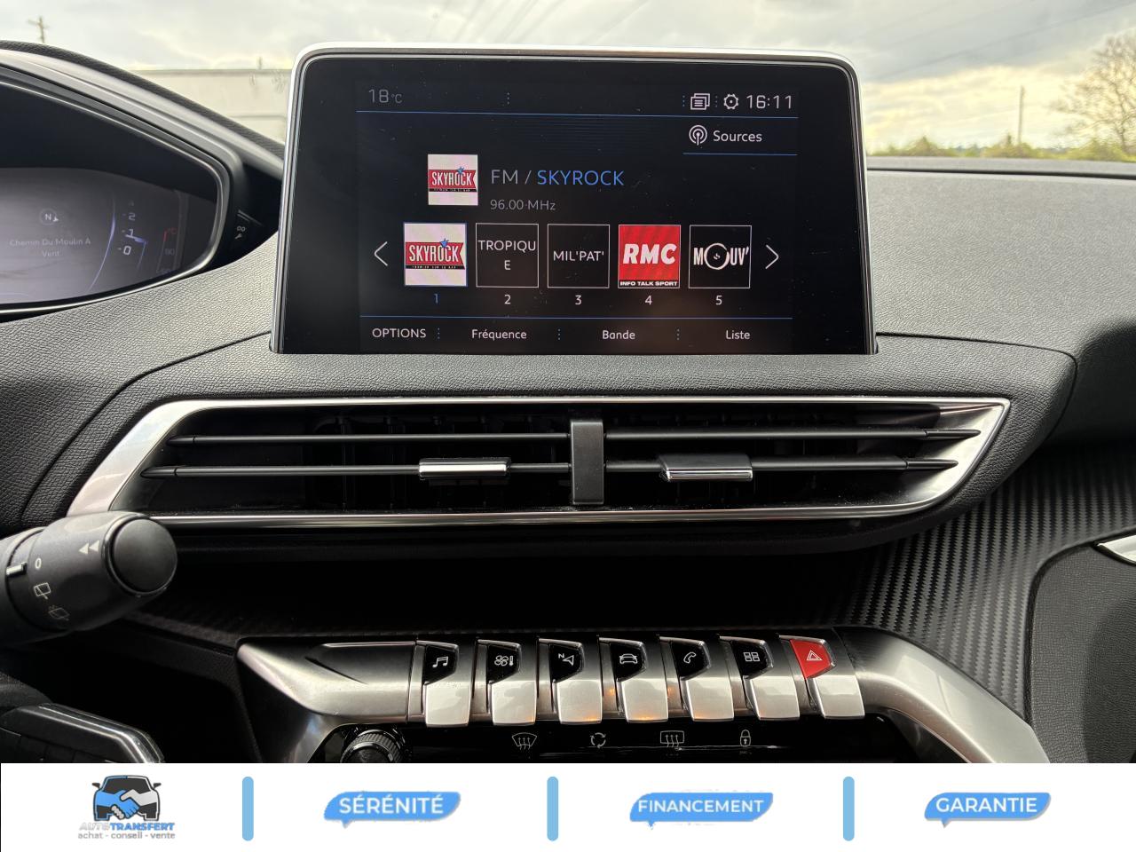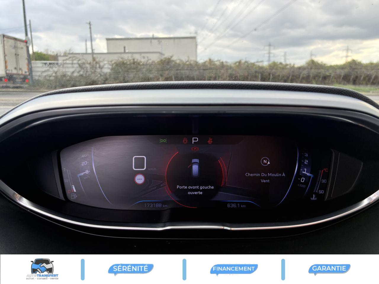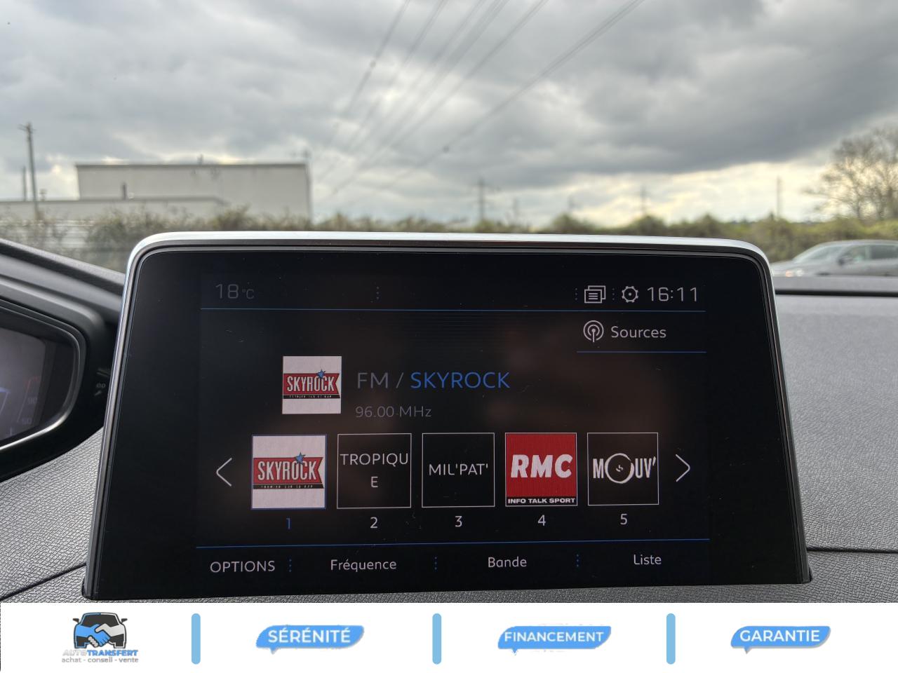 ABS avec répartiteur électronique de freinage (REF) et aide au freinage d'urgence (AFU)Accoudoir central avant à ouverture papillon, avec compartiment de rangement éclairé et réfrigérableAide graphique et sonore au stationnement arrièreAide graphique et sonore au stationnement avantAir conditionné automatique bi-zone avec aérateurs aux places arrièreAirbags frontaux conducteur et passager adaptatifsAirbags latéraux conducteur et passager avantAirbags rideaux de tête aux places avant et arrièreAlerte de temps de conduiteAppuis-tête à sécurité optimisée réglables en hauteur sur les sièges conducteur et passager avant ainsi que sur les places latérales arrièresBandeau de pare-choc arrière chroméBanquette rabattable 1/3 - 2/3 (modularité 'Magic Flat' et commandes dans le coffre) avec accoudoir et trappe à skisBoîte à gants floquée et éclairéeCalandre avec jonc périphérique et facettes chromésCeintures avant à 3 points, réglables en hauteur, avec prétensionneurs et limiteurs d'effortCeintures de sécurité arrière trois points à enrouleur (x3), avec prétensionneurs et limiteurs d'effort aux places latéralesCommande de verrouillage à distance (deux plips)Contrôle dynamique de stabilité CDS avec antipatinage électronique ASRDécors de planche de bord et panneaux de portes aspect carboneDétection de sous-gonflage indirecteDeux porte-gobelets intégrés à la console centraleDirection assistée électrique, avec colonne de direction réglable en hauteur et profondeur (mécanique)Essuie-glace arrière avec déclenchement automatique en marche arrièreEssuie-vitre avant avec système de lavage 'Magic Wash'Fixations pour trois sièges enfants suivant norme ISOFIX aux places passager avant et latérales arrièreFonction Mirror ScreenFrein de stationnement électrique avec aide au démarrage en penteIndicateur de rapportInserts d'ailes avant chromésJantes alliage 17" 'Chicago'Lève-vitres électriques avant et arrière, séquentiels et antipincementLunette arrière chauffante avec antennes sérigraphiéesPack VisibilitéPassages de roues rapportés noirsPeugeot Connect : Navigation 3D connectée avec reconnaissance vocale + PEUGEOT Connect SOS & AssistancePeugeot i-Cockpit combiné tête haute numérique reconfigurable, écran tactile capacitif 8" et volant compact multi-fonctionsPlafonnier avant avec spots de lecture (x2) et plafonnier arrière à extinction temporiséePoignées de maintien (x4) rétractables avec frein (crochets pour cintres aux places arrière)Prise 12V (x3) : à l'avant, à l'arrière et dans le coffrePrise USBRadio 6 HP, compatible MP3 et connectivité Bluetooth (audio streaming, kit mains libres), avec commandes au volantReconnaissance des panneaux de vitesse et préconisationRégulateur et limiteur de vitesseRétroviseurs extérieur électriques et dégivrantsRétroviseurs extérieurs couleur carrosserieSellerie Tissu 'Meco'Siège conducteur réglage en hauteurSiège passager à réglage manuel en hauteurVerrouillage automatique de tous les ouvrants en roulantVitres latérales et lunette arrière surteintéesVolant cuir pleine fleur