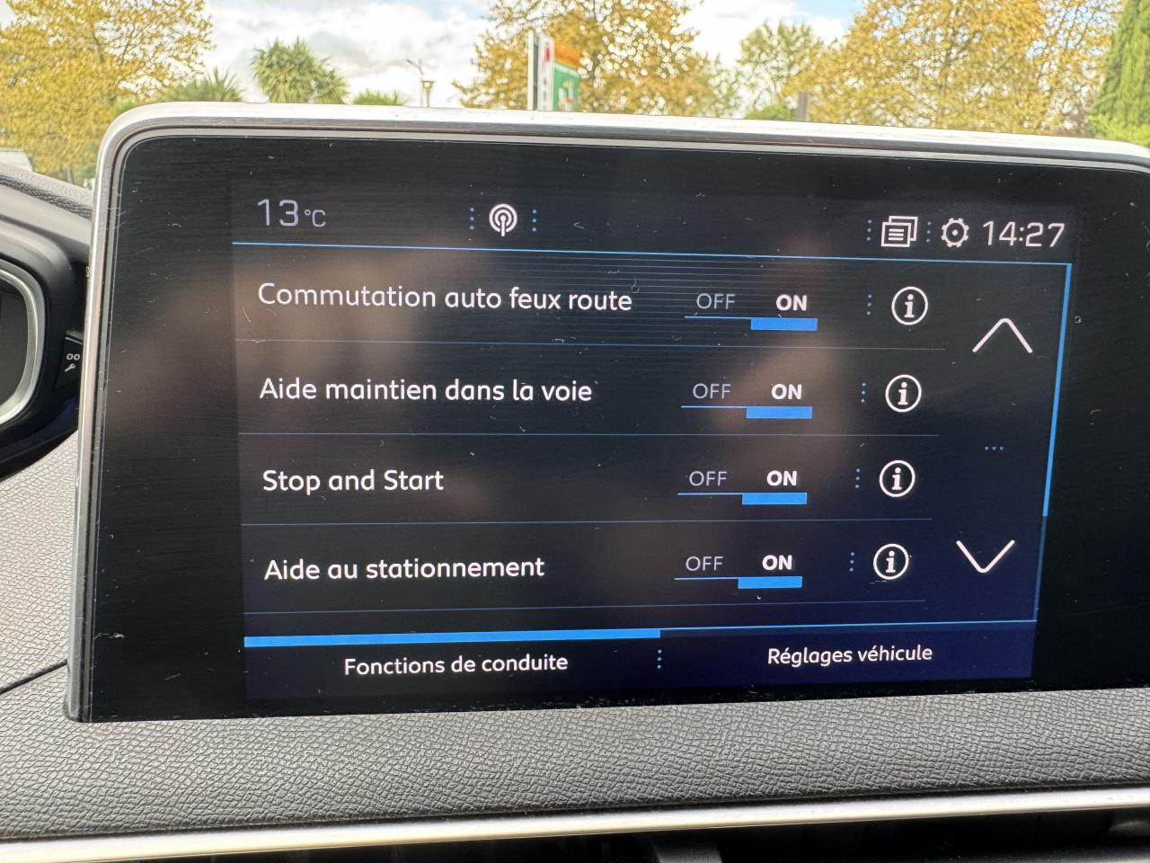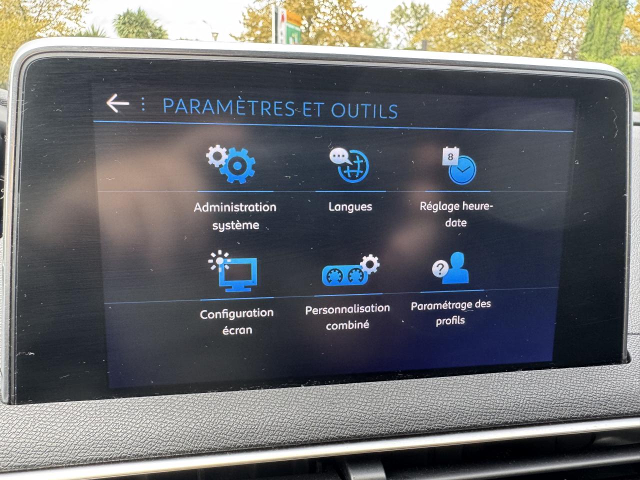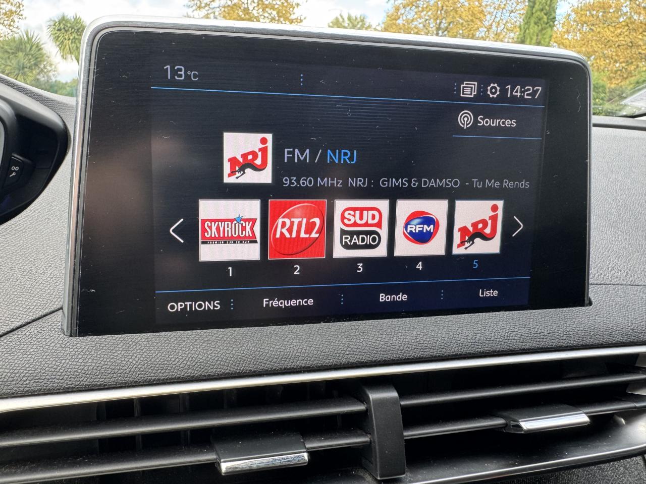 «App-Connect» : affichage et contrôle via l’écran tactile de la voiture, du contenu,des fonctions et des applications compatibles présents sur le Smartphone (compatibilité avec les systèmes Apple CarPlay et Google Android Auto)ABS (Antiblocage de roues)Air conditionné automatique bi-zone + diffuseur arrière + détecteur automatique de polluantsAllumage automatique des feux de détresseAntidémarrage codé électroniqueAssistance au freinage d'urgenceAutoradio CD MP3 WIP Sound avec prise auxiliaire jackBanquette arrière rabattable 2/3 - 1/3 avec modularité "magique"Condamnation centralisée à distance avec plip haute fréquenceContrôle dynamique de stabilité (ESP)Direction hydro-électrique à assistance variableFiltre à pollenFixations Isofix aux places latérales arrièreFrein de stationnement électrique automatique + aide au démarrage en penteGrip controlKit de dépannage pneumatiqueNavigation/Kit mains libres WIP Nav + Equipement Peugeot Connect SOS & Peugeot Connect AssistancePlancher de coffre 3 positionsPommeau de levier de vitesses en cuirPrise 12 V (x3) : à l'avant, à l'arrière et dans le coffreProjecteurs antibrouillardRégulateur et limiteur de vitesseRépartiteur électronique de freinage REFRétroviseurs extérieurs électriques et dégivrants avec répétiteur, coque couleur caisseTrappes de rangement sous plancher en rang 2Volant réglable en hauteur et en profondeurWIP Bluetooth®