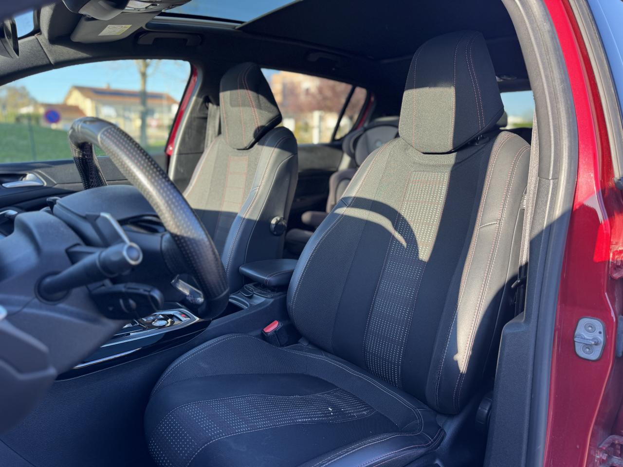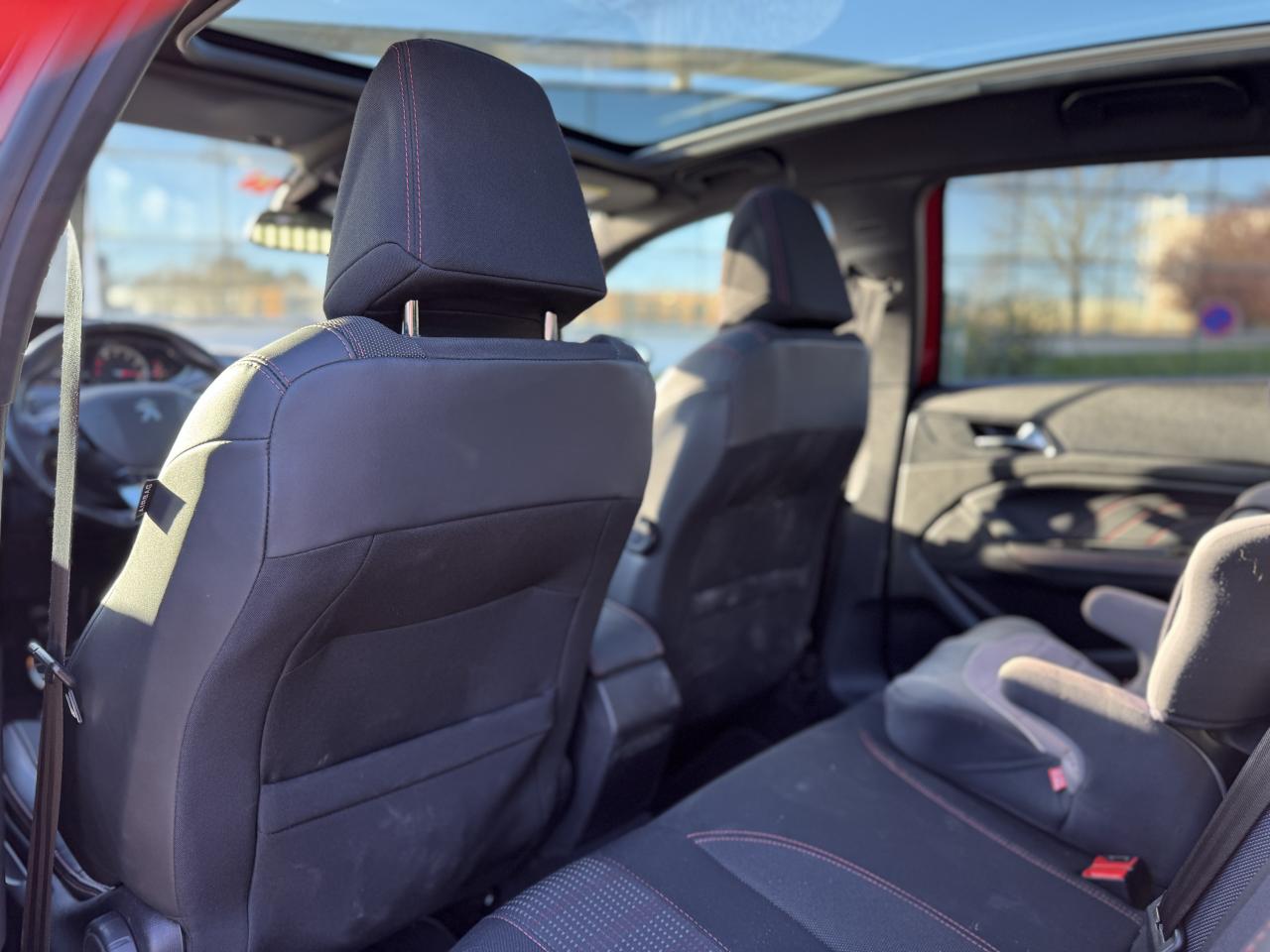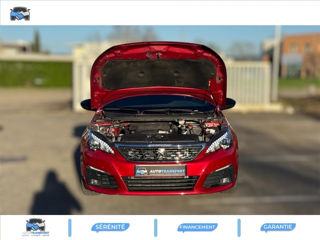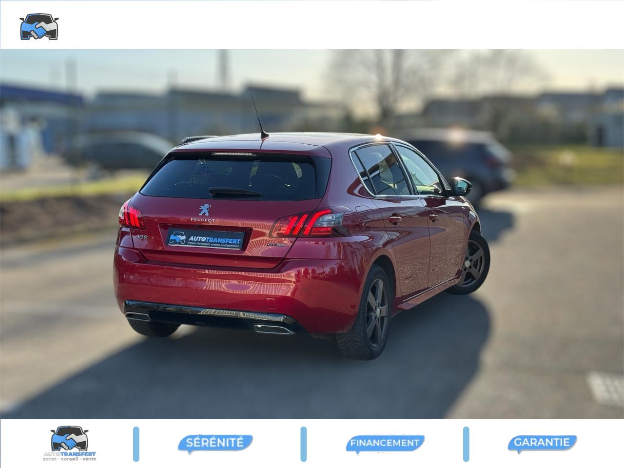 Accès et démarrage mains libres - inclut la prise USB en rang 2 et un plip supplémentaireAccoudoir central avant avec rangementAide graphique et sonore au stationnement arrièreAide graphique et sonore au stationnement avantAir conditionné automatique bi-zone (avec filtre à charbon actif, anti-odeurs)Airbags frontaux conducteur et passager adaptatifs (passager neutralisable), latéraux avant et rideaux avant et arrièreAllumage automatique des feux de détresseAssistance au freinage d'urgenceBadge GT Line sur les ailes avant et le pare-chocs arrièreBanquette arrière rabattable 1/3 - 2/3 avec dossier rabattable, assise fixeCommande de verrouillage à distance (deux plips)Enjoliveurs latéraux de bas de caisseKit de dépannage pneumatique (anneau de remorquage, compresseur et flacon de produit de colmatage)Lève-vitres électriques arrière à fonctions séquentielle et anti-pincementLève-vitres électriques avant à commande séquentielle et anti-pincementLunette arrière chauffantePEUGEOT Connect : Navigation connectée 3D avec reconnaissance vocale - Cartographie Europe avec connexion automatique et permanente aux services de Navigation connectée, SOS et Assistance, TéléservicesPommeau de levier de vitesses et frein à main en cuirPrise USBProjecteurs 'Peugeot Full LED Technology'Régulateur et limiteur de vitesseVisiopark 1 : caméra de recul avec restitution sur l'écran tactile d'une vue arrière, et d'une vue de dessus de l'environnement arrière du véhiculeVitres latérales et lunette arrière surteintéesVolant réglable en hauteur et en profondeur (mécanique)Volant spécifique, cuir pleine fleur avec surpiqûres rouges
