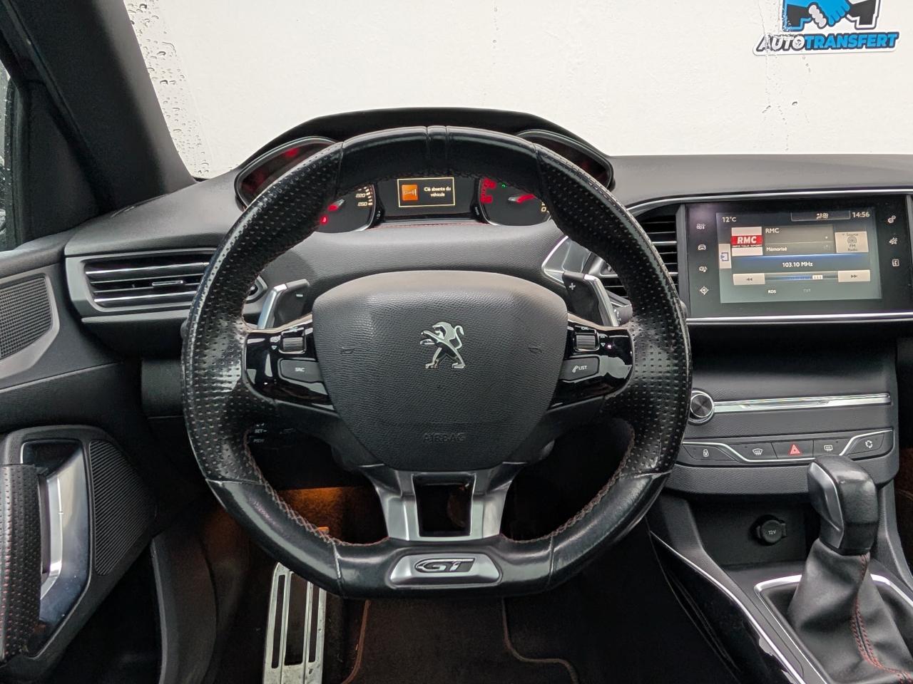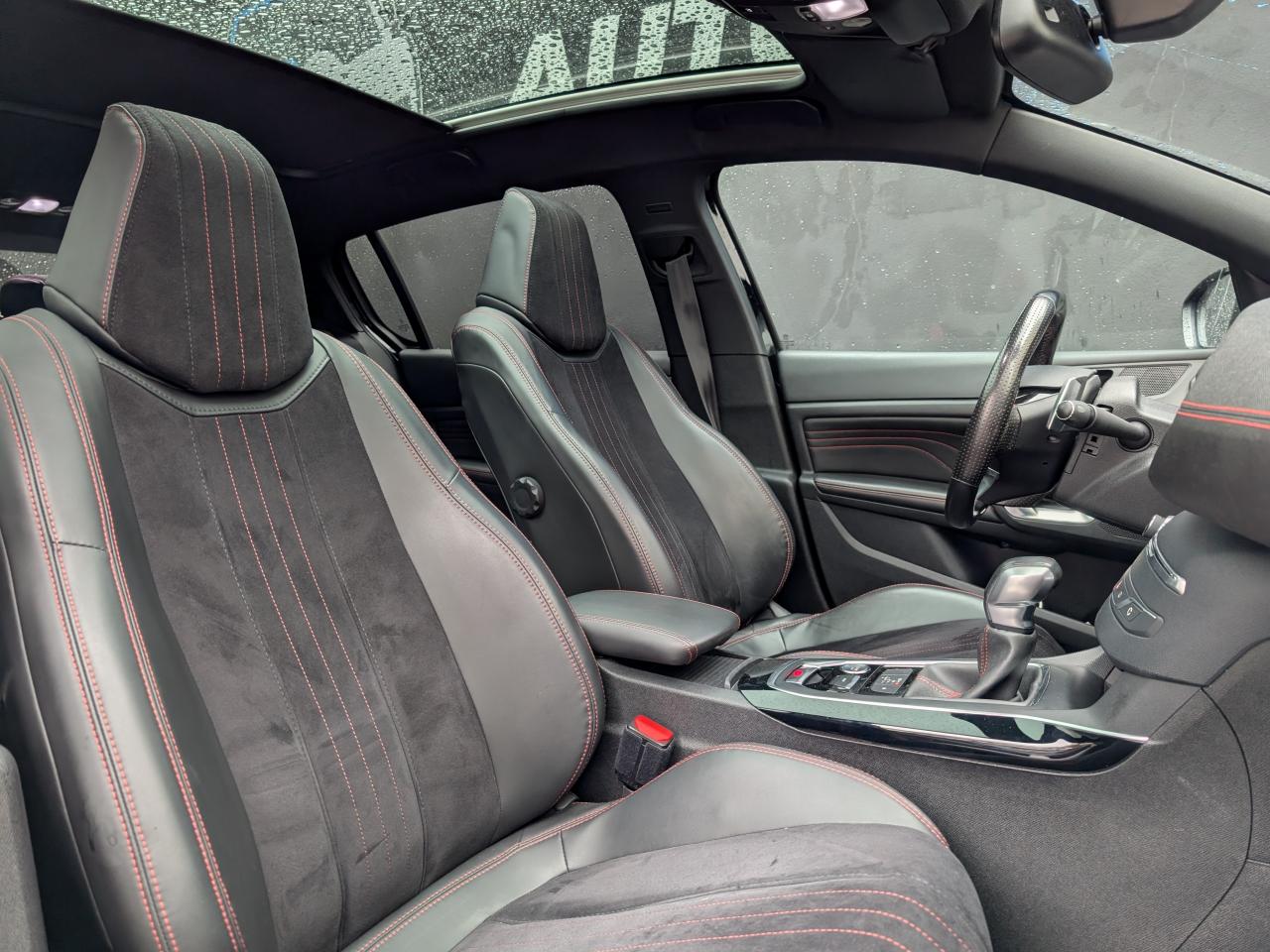 3 appuie-tête arrière réglables en hauteurABS (Antiblocage de roues)Accès et démarrage mains-libresAccoudoir central avant avec rangementAide au démarrage en côteAide graphique et sonore au stationnement arrièreAide graphique et sonore au stationnement avantAirbags frontaux conducteur et passager adaptatifs (passager neutralisable), latéraux avant et rideaux avant et arrièreAlarme sonore d'oubli d'extinction des feuxAlerte visuelle et sonore de débouclage des ceintures de sécurité arrièreAlerte visuelle et sonore de non bouclage et de débouclage des ceintures de sécurité conducteur et passager avantAllumage automatique des feux de détresseAntenne courteAntidémarrage codé électroniqueAppuie-tête avant virgule réglables en hauteurAssistance au freinage d'urgenceBadge GT sur la calandre, les ailes avant et le volet arrièreBanquette arrière rabattable 1/3-2/3Becquet arrière couleur carrosserieBoîte à gants éclairée et réfrigérableBouclier arrière intégrant des doubles canules d'échappement de styleBouclier avant spécifique avec écopes d'entrée d'air noir laquéCalandre spécifique intégrant le lion PEUGEOTCaméra de reculCeinture conducteur et passager à enrouleur pyrotechniqueCeinture de sécurité centrale arrière à 3 pointsCeintures latérales rang 2 avec limitation d'effortClignotants avant à LEDs avec défilement dynamiqueClimatisation automatique bi-zoneCombiné "Haut de gamme "spécifique GT avec matrice couleur 3"5 et fond de compteur DamierCommande de verrouillage à distance (deux plips)Coquilles de rétroviseur spécifiques Noir Perla NeraDécors intérieur spécifiquesDétecteur de sous-gonflage indirectDriver Sport PackEcran tactile multifonction 9,7", radio, Bluetooth, Jack, USB, 6HPEnjoliveurs latéraux de bas de caisseEntourage de vitres chroméESP (contrôle dynamique de stabilité) + ASRFeux arrière à LEDFeux diurnes à LEDFixations Isofix (aux places latérales arrière)Frein de parking électriqueGarnissage TEP/ALCANTARA avec surpiqûres rougesGarniture et montants de pavillon anthraciteIndicateur de température extérieureJantes Aluminium 18" DIAMANT 225/40R18 WKit de dépannage pneumatique (anneau de remorquage, compresseur et flacon de produit de colmatage)Lève-vitres électriques arrière à fonctions séquentielle et anti-pincementLève-vitres électriques avant à commande séquentielle et anti-pincementLunette arrière chauffantePack ConfortPack VisibiltéPare-chocs arrière, peint couleur caisse avec diffuseur noir laquéPédales et repose pieds en aluminiumPeinture opaquePlafonnier central avant et arrière à LEDPoches aumônières au dos des sièges avantPrise 12VPrise 230VProjecteurs haut de gamme "Full Leds Technology"Rangement dans le coffre, spécifique pour triangle de pré-signalisation et trousse de secoursRéglage lombaire du siège passager (mécanique)Réglage manuel lombaire du siège conducteurRégulateur - limiteur de vitesse programmableRépartiteur électronique de freinage REFRétroviseurs extérieurs avec réglage électriqueRétroviseurs extérieurs rabattables électriquementSeuils des portes en aluminiumSiège conducteur et passager réglable en hauteur (mécanique)Sièges avant sportSurtapis avec surpiqûres rougesSuspension sport (assiette abaissé de 10 mm)Système de navigation avec écran tactileVerrouillage automatique de tous les ouvrants en roulantVitres latérales et lunette arrière surteintéesVolant réglable en hauteur et en profondeur (mécanique)Volant spécifique, cuir pleine fleur avec Badge GT et surpiqûres rouges