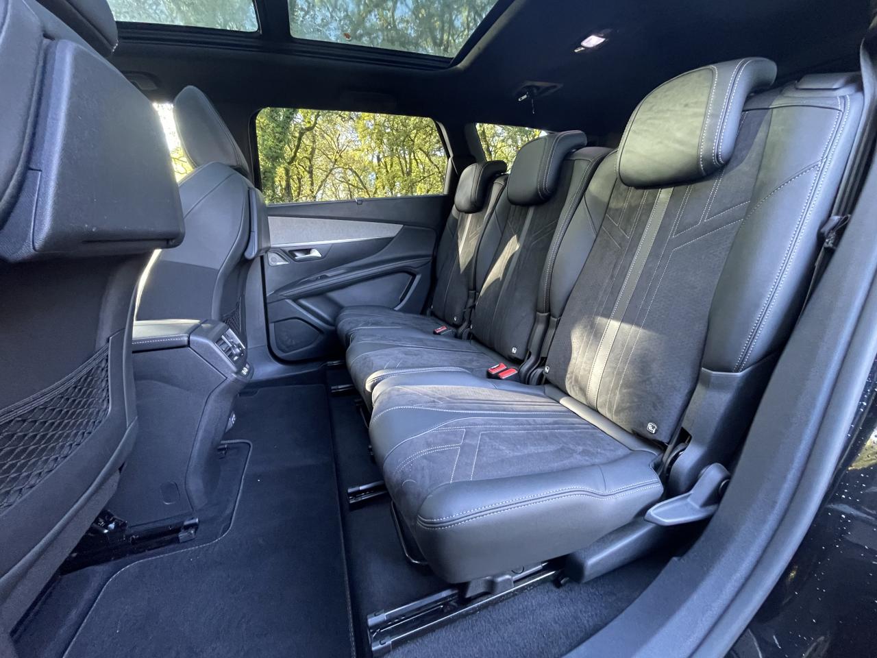 Fonction 'Mirror Screen' (Apple Carplay / Android Auto)Deux sièges escamotables et extractibles pour les passagers du troisième rangDriver Sport PackHayon mains libres : volet de coffre motorisé avec accès mains libresPack Electrique & MassagesPack City 2Pack Safety PlusPack Drive Assist PlusPack VisibilitéAide graphique et sonore au stationnement arrièreAir conditionné automatique bi-zone avec aérateurs aux places arrièreLimiteur de vitesseEssuie-glace arrière avec déclenchement automatique en marche arrière3 Sièges arrière en rang 2 (indépendants, coulissants, inclinables et escamotables dans le plancher)ABS avec répartiteur électronique de freinage (REF) et aide au freinage d'urgence (AFU)Accès et démarrage mains-libresAccoudoir central avant à ouverture papillon, avec compartiment de rangement éclairé et réfrigérableAirbags frontaux conducteur et passager adaptatifs (passager neutralisable)Airbags latéraux conducteur et passager avantAirbags rideaux rangs 1, 2 et 3Appuis-tête à sécurité optimisée réglables en hauteur sur les sièges conducteur et passager avant ainsi que sur les places latérales arrièresAvertisseur de temps de conduiteBarres de toit longitudinales profilées en aluminiumBoîte à gants floquée et éclairéeCalandre GT avec design évolutif chroméCanules d'échappement de style chroméesCeintures de sécurité avant trois points à enrouleur, réglables en hauteur avec prétensionneurs et limiteurs d'effortCeintures de sécurité trois points à enrouleur (x2) au troisième rangCeintures de sécurité trois points à enrouleur (x3) au deuxième rang, avec prétensionneurs et limiteurs d'effort aux places latéralesCommande de verrouillage à distance (deux plips)Commandes de lève-vitres avec inserts chromésContrôle dynamique de stabilité CDS avec antipatinage électronique ASRCoques de rétroviseurs extérieurs Noir Perla NeraDécors de planche de bord et panneaux de portes en Alcantara Gris GrevalDécors intérieurs (baguettes de planche de bord et panneaux de portes, enjoliveur de console) chromésDétection de sous-gonflage indirecteDirection assistée électrique, avec colonne de direction réglable en hauteur et profondeur (mécanique)Drive Mode : Choix de 2 modes de conduite (Eco ou Sport)Eclairage intérieur à LED : plafonniers et rangementsEcrous antivolEnjoliveur de seuil d'entrée de coffre chroméEnjoliveurs d'arc de pavillon en inoxEnjoliveurs en inox sur les protecteurs de bas de portesEssuie-vitre avant avec système de lavage 'Magic Wash'Filets aumônières au dos des sièges avantFixation ISOFIX pour sièges enfants sur 3 places arrièreFrein de stationnement électrique avec aide au démarrage en penteHabitacle et ciel de pavillon Noir MistralIndicateur de rapportInserts d'ailes avant chromésJoncs de vitres latérales en inoxKit de dépannage pneumatiqueLève-vitres électriques séquentiels et antipincementLunette arrière chauffante avec antennes sérigraphiéesMiroirs de courtoisie éclairésNavigation 3D connectée avec reconnaissance vocale, écran tactile capacitif 10" HDPack Eclairage d'ambiancePack EnfantsPassages de roues rapportés noirsPédalier et repose-pied conducteur en aluminiumPEUGEOT Connect SOS & Assistance et TéléservicesPeugeot i-Cockpit : combiné tête haute numérique haute qualité d'affichage, écran tactile capacitif 10" HD et volant compact multi-fonctionsPlafonniers avec spots de lecture avant (x2), arrière (x2) et en rang 3 (x2)Planche de bord surpiquéePrise USB (dans la zone connectique)Prises 12V (x3 : zone connectique, arrière de console et coffre)Prises USB de charge (x2) au 2nd rangProjecteurs 'Peugeot Full LED Technology' avec correction automatique de site, fonction Eclairage Virage Statique,'Foggy Mode' et feux diurnes à LED prolongés dans les projecteursRadio avec fonction DAB (Radio Numérique Terrestre), bi-tuner compatible MP3 et connectivité Bluetooth (audio streaming, kit mains libres), avec commandes au volant, 6 HP, écran tactile capacitif 10" HDReconnaissance étendue des panneaux de signalisation et préconisation de vitesseRétroviseur intérieur à position nuit automatique, sans encadrementRétroviseurs extérieurs électriques et dégivrants, rabattables électriquement avec éclairage d'accueil à LEDSabot de pare-choc avant gris métalliséSécurité enfant électrique des vitres arrièreSellerie TEP & Alcantara MistralSeuils de portes avant en inoxSiège passager avant avec mise en tabletteSièges conducteur et passager réglables en hauteurSurtapis aux places avant et arrièreSystème Hi-Fi Premium Focal - 10 haut-parleursToggle Switches' chromés (touches 'piano' d'activation des fonctions de l'écran tactile)Toit 'Black Diamond' (toit Noir Perla Nera)Trappes de rangement (x2) aux pieds des passagers du deuxième rangVerrouillage automatique de tous les ouvrants en roulantVitres latérales et lunette arrière surteintéesVolant cuir fleur perforé avec bagues chrome acier et badge GT