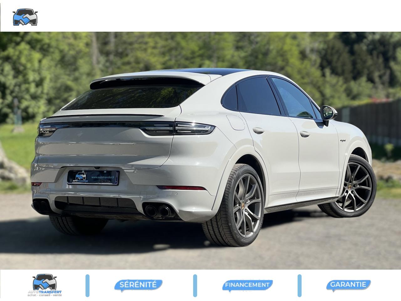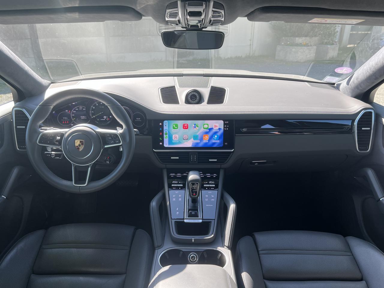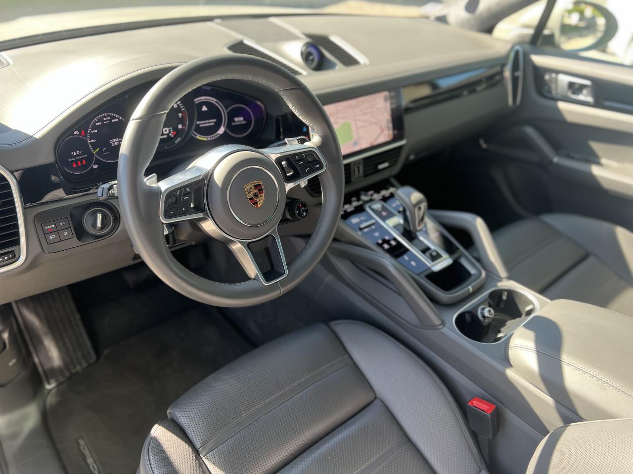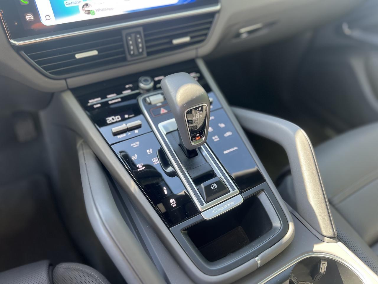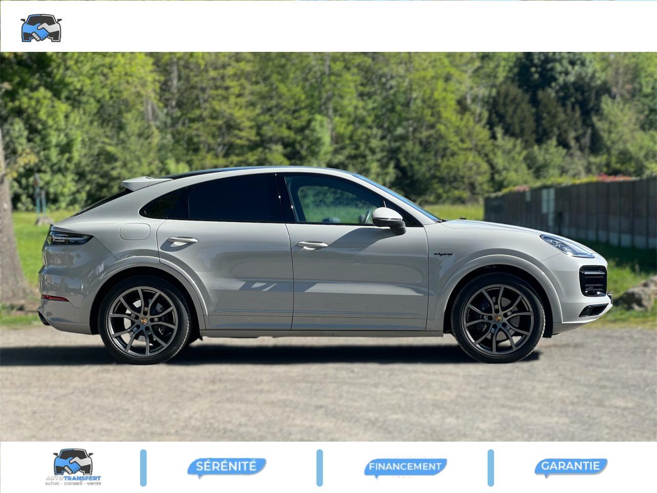 2 doubles sorties d’échappement, sur les côtés gauche et droit, acier brosséÉlectronique de puissance, batterie lithium-ion d’une capacité énergétique de 14 kWh et accessoires moteur électriques (compresseur de climatisation et servofrein électrique)Étriers fixes monobloc en aluminium à 6 pistons à l'avant et 4 pistons à l'arrière2 ports USB de chargement dans la console centrale arrière2 ports USB de chargement et de connexion dans le coffre de rangement de la console centrale avant4 places4 portes avec protection anti-encastrement latérale intégréeAccoudoir central AR avec 2 porte-gobelets, réglage longitudinalAir Curtains dans les passages de rouesAirbag genoux côté conducteur et passagerAirbags grand volume pour le conducteur et le passagerAirbags latéraux avant (siège avant)Airbags rideauxAlarme et double verrouillageAllumage automatique des feux en cas d'ouverture/fermeture du véhiculeApple CarPlayAssistance à la descente (Porsche Hill Control, PHC)Assistance parking avant et arrière avec caméra de reculAvertisseur de freinage d'urgenceBac de rangement dans la console centraleBaguettes de seuil de porte en Acier spécial avec monogramme du modèle à l’avant et à l'arrière : «Cayenne»Batterie allégéeBecquet arrière avec troisième feu de stop à LEDBecquet de toit arrière de couleur carrosserieBloc moteur en aluminiumBlocs optiques avant avec feux de position et clignotants à conducteurs de lumière à technologie LEDBoîte à gants réfrigéréeBoîte de vitesse Tiptronic S 8 rapportsBouclier avant avec prises d’air de refroidissement intégréesCâble de charge pour prise domestiqueCâble secteur permettant d’établir la connexion entre la prise industrielle rouge (400 V, 32 A, 5 broches) et l’unité de commandeCapot avant actifCapteur de pluieCapteur de retournementCarrosserie élargie à l'arrièreCarrosserie de conception allégée hybride entièrement galvanisée alliant Acier et AluminiumCarrosserie hybride en aluminium (capot moteur, hayon, portières et ailes)Ceintures de sécurité automatiques à 3 points avec prétensionneurs pyrotechniques à l'avant et à l'arrière, et limiteur d'effort à l'avantChâssis avec suspension à ressort hélicoïdauxChargeur embarqué (3.6 kW)Ciel de toit en tissuClimatisation automatique avec réglage individuel de la température pour le conducteur et le passager, commande automatique du recyclage de l’air avec capteur de qualité de l’air et réglage individuel du débit d’air côtés conducteur eCombiné d’instruments avec 2 écrans haute résolutionCompte-tours analogique central avec fond de compteur Noir, powermètre et aiguille en Vert AcideConcept d’éclairage de l’habitacle à LED : temporisation d’arrêt, éclairage bas d’habitacle avant et arrière, éclairage du cendrier, de la boîte à gants, du démarreurConnect Plus avec module de navigation en ligne, module téléphone LTE avec lecteur de carte SIM et accès Internet sans fil ainsi que Porsche Car Connect incluant de nombreux services Porsche ConnectContrôle de pression des pneus ( TPMS )Contrôle stabilité remorque et mode PSM SPORTContrôle vocalCouvre-bagages souple enroulableCrochet porte-vêtement sur les montants latéraux (gauche/droite)Culasse en aluminiumDéflecteurs (Airblades) avec entrées d’air latéralesDégivrage de lunette arrière avec arrêt automatiqueDémarrage sans cléDétecteur d'humiditéDiamètre des disques de frein de 360 mm à l’avant et 358 mm à l’arrièreDisques de freins avant et arrière ventilésEclairage d'alentourEntourage des vitres en finition noire brillanteEssieu arrière multibras en aluminiumEssieu avant multibras AluminiumEssuie-glace avant à 2 vitesses avec balayage intermittentEtriers de frein couleur Vert AcideFeux arrière à LED avec graphisme tridimensionnel, avec feux stop intégrés 4 points et bandeau lumineuxFeux de jours à DEL 4 pointsFiltre à charbon actifFiltre à particulesFonction Auto-HoldFrein de parking électriqueFrein multi-collisionHayon automatiqueInjection directe d’essence (Direct Fuel Injection, DFI) avec position centrale des injecteursInscription "e-hybrid" sur les ailes avant gauche et droite entourée en Vert AcideInserts des lamelles des entrées d’air en Noir (finition brillante)Jantes Cayenne Design 20 poucesKit de réparation avec compresseur électriqueLarge soubassement caréné aérodynamiqueLimiteur de vitesseMiroirs de courtoisie éclairés conducteur et passagerMode Individual pour la sélection de réglages sportifs personnalisés du véhiculeMode SPORT PLUS avec réglage axé sur les performances pour le moteur, la boîte de vitesse et le châssisMonogramme avec bordure Vert AcideMonogramme du modèle sur le hayon arrière, en couleur ArgentPack intérieur Noir, finition brillantePack Sport ChronoParamètres de personnalisation du conducteurPare-chocs constitué de traverses haute résistance et de 2 éléments de déformation, comportant chacun 2 logements taraudésPhares à LEDPoignées de portes couleur carrosseriePorsche Active Aerodynamics (PAA) avec becquet de toit à déploiement adaptatifPorsche Active Suspension Management (PASM)Porsche Communication Management (PCM) avec module de navigationPorsche Mobile Charger avec support mural, sac de transport et câble de 4,5 mètres de la voiture au chargeurPorsche Traction Management (PTM) : transmission intégrale dynamique avec différentiel central multidisque électroniquePorte-bouteilles dans les contre-portes avant et arrièrePorte-cartesPorte-gobelets doubles à diamètre variable à l'avant et à l'arrièrePré-équipement attelagePré-équipement pour le montage d'un système de transport sur toitPré-climatisationPrise 12 V dans la boîte à gants et le coffrePrise de courant 12 V dans la console centrale avantPrise de rechargeProtection anti-encastrement latérale dans les portièresRégulateur de châssis intégré Porsche 4D Chassis ControlRégu
