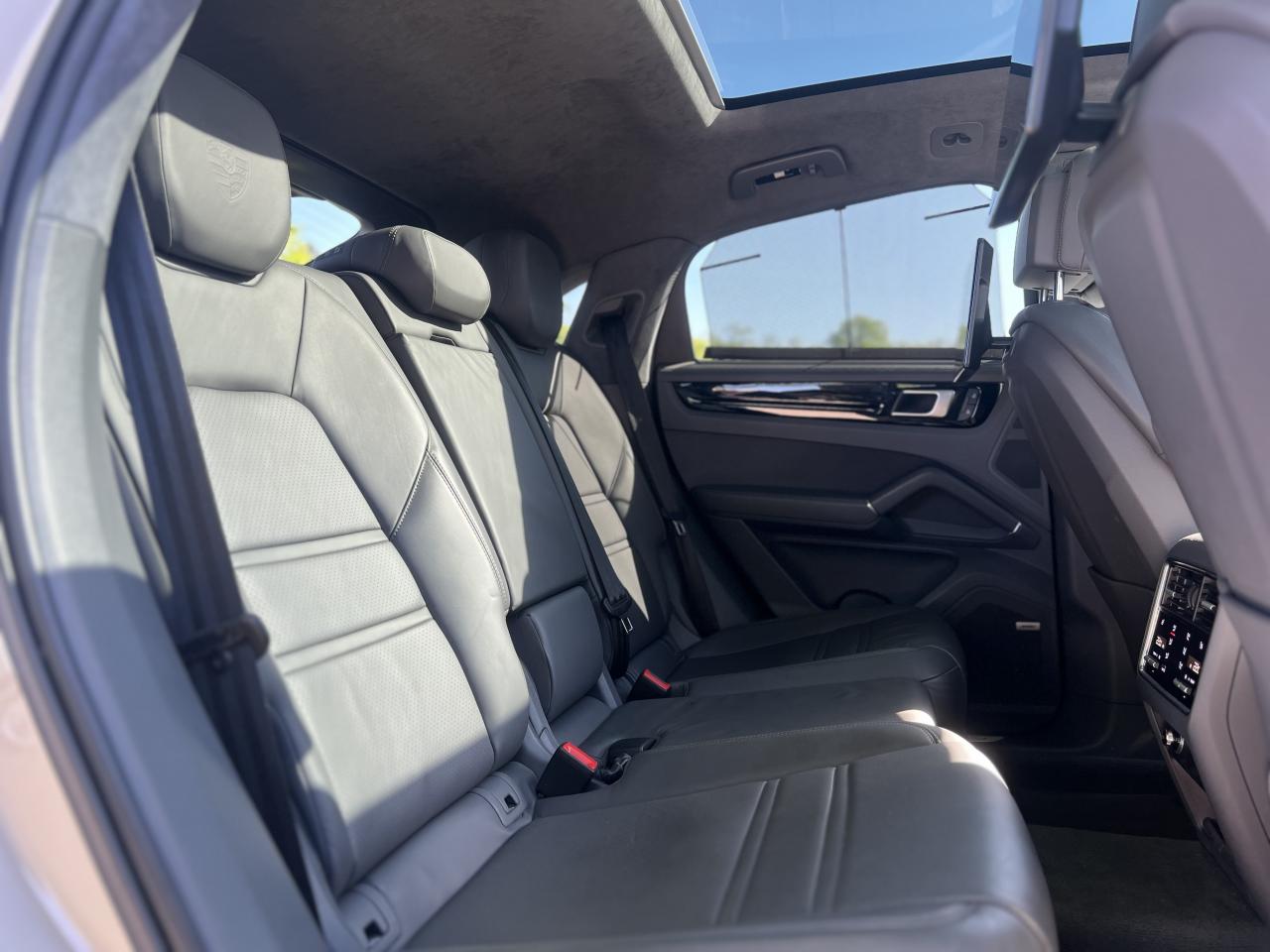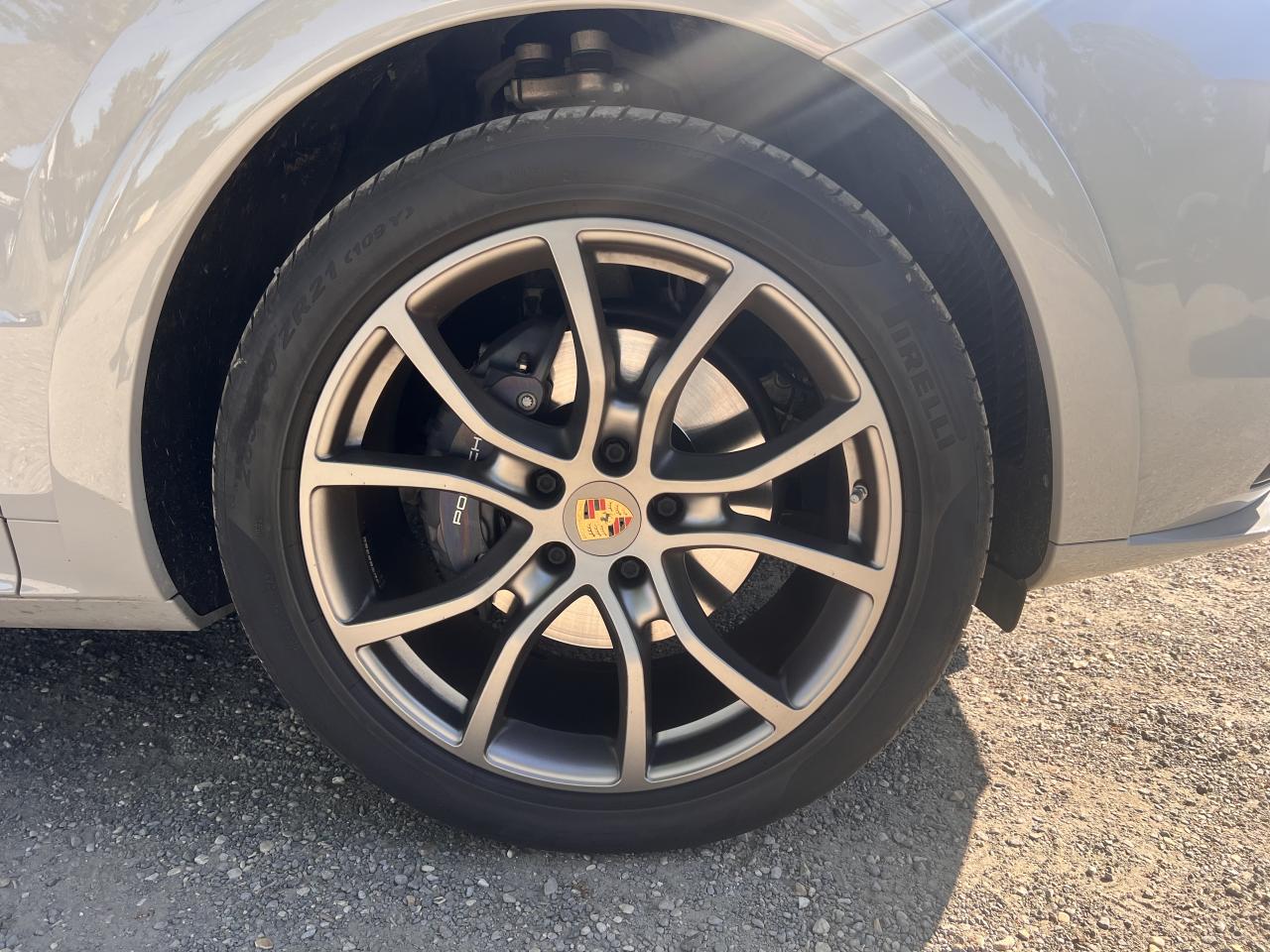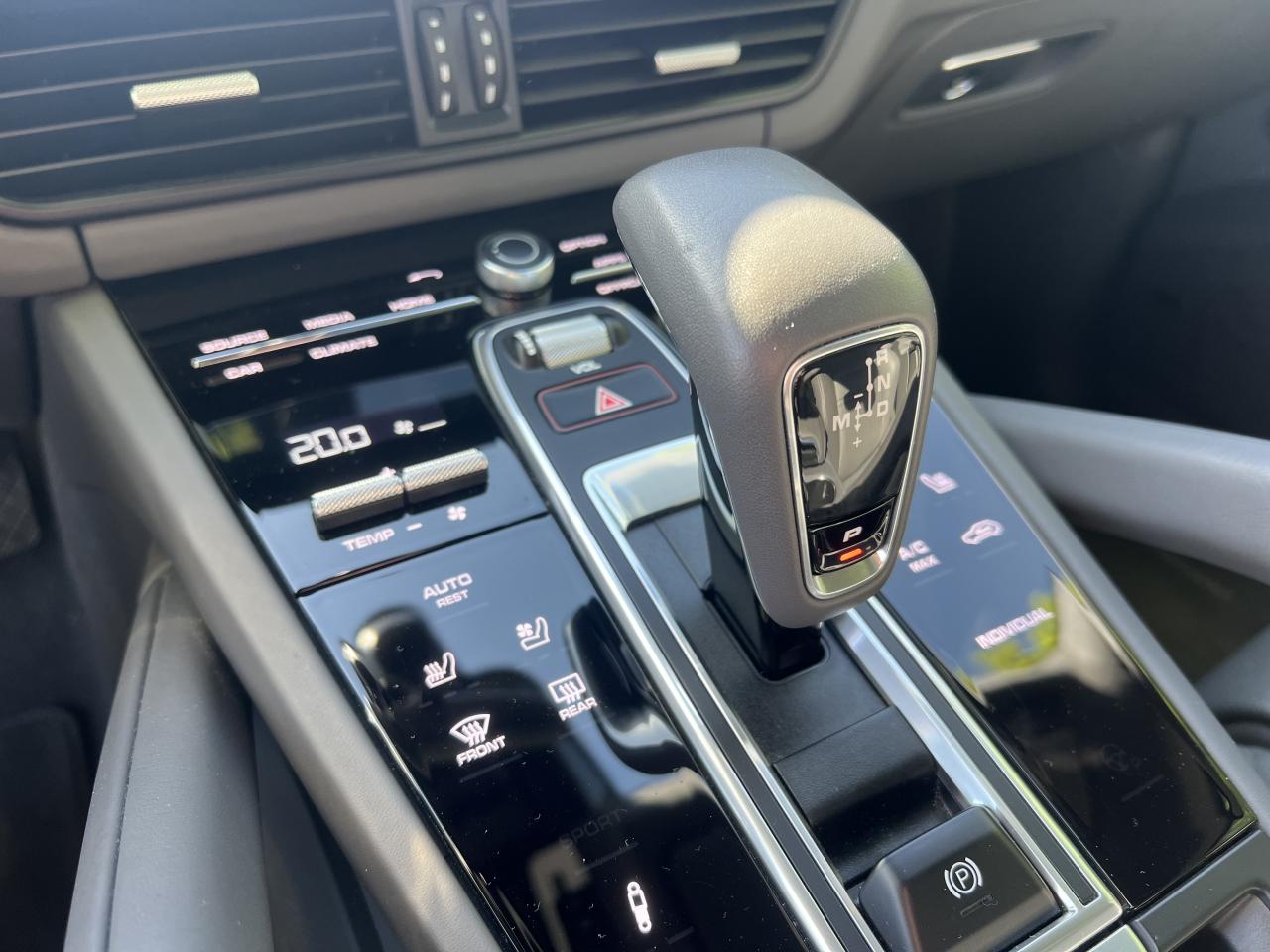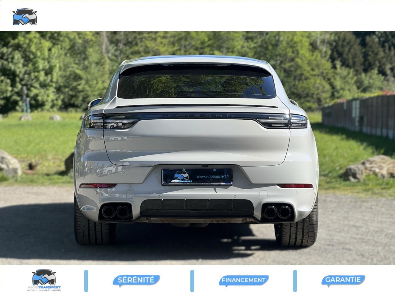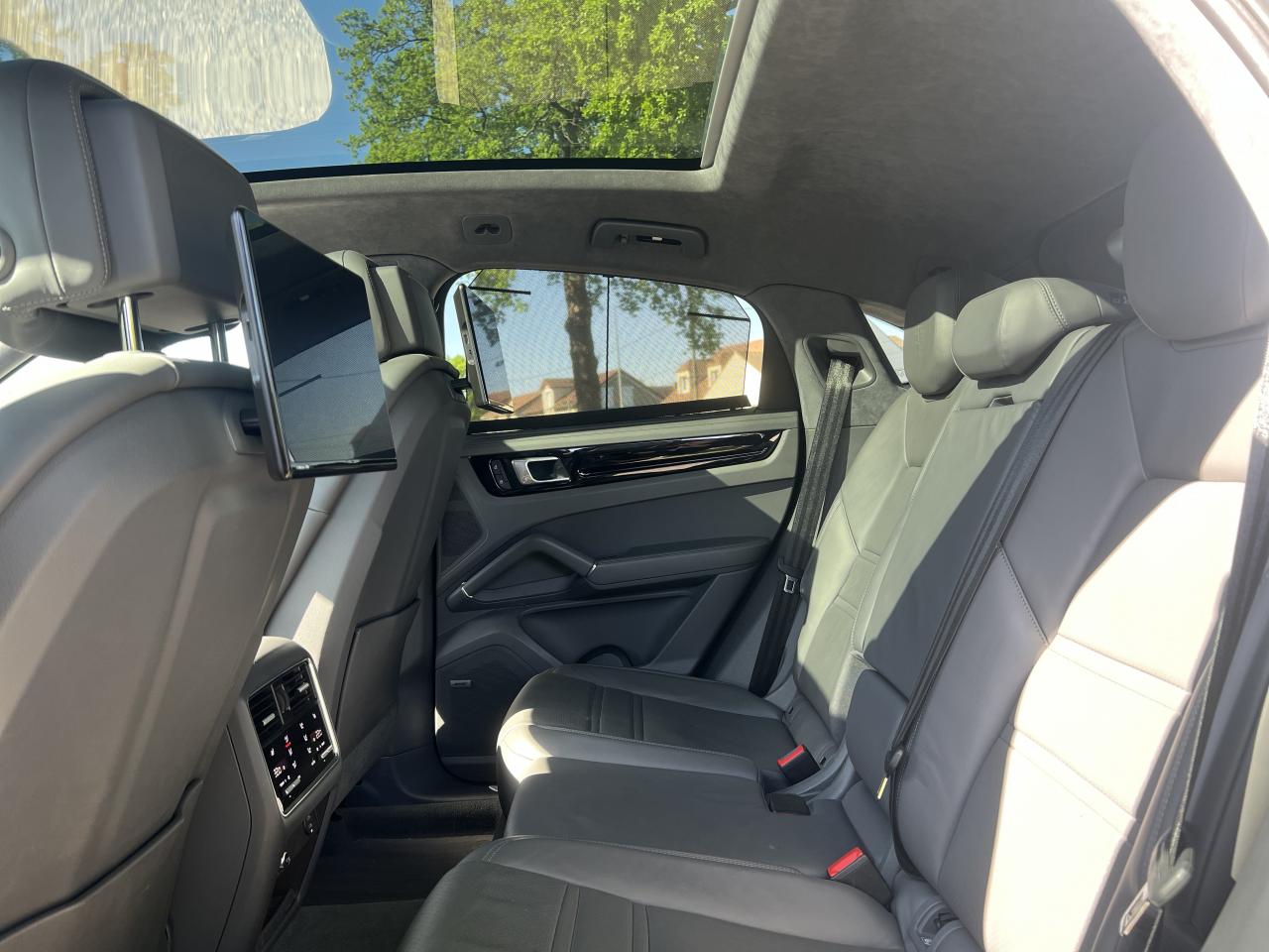 2 doubles sorties d’échappement, sur les côtés gauche et droit, acier brosséÉlectronique de puissance, batterie lithium-ion d’une capacité énergétique de 14 kWh et accessoires moteur électriques (compresseur de climatisation et servofrein électrique)Étriers fixes monobloc en aluminium à 6 pistons à l'avant et 4 pistons à l'arrière2 ports USB de chargement dans la console centrale arrière2 ports USB de chargement et de connexion dans le coffre de rangement de la console centrale avant4 places4 portes avec protection anti-encastrement latérale intégréeAccoudoir central AR avec 2 porte-gobelets, réglage longitudinalAir Curtains dans les passages de rouesAirbag genoux côté conducteur et passagerAirbags grand volume pour le conducteur et le passagerAirbags latéraux avant (siège avant)Airbags rideauxAlarme et double verrouillageAllumage automatique des feux en cas d'ouverture/fermeture du véhiculeApple CarPlayAssistance à la descente (Porsche Hill Control, PHC)Assistance parking avant et arrière avec caméra de reculAvertisseur de freinage d'urgenceBac de rangement dans la console centraleBaguettes de seuil de porte en Acier spécial avec monogramme du modèle à l’avant et à l'arrière : «Cayenne»Batterie allégéeBecquet arrière avec troisième feu de stop à LEDBecquet de toit arrière de couleur carrosserieBloc moteur en aluminiumBlocs optiques avant avec feux de position et clignotants à conducteurs de lumière à technologie LEDBoîte à gants réfrigéréeBoîte de vitesse Tiptronic S 8 rapportsBouclier avant avec prises d’air de refroidissement intégréesCâble de charge pour prise domestiqueCâble secteur permettant d’établir la connexion entre la prise industrielle rouge (400 V, 32 A, 5 broches) et l’unité de commandeCapot avant actifCapteur de pluieCapteur de retournementCarrosserie élargie à l'arrièreCarrosserie de conception allégée hybride entièrement galvanisée alliant Acier et AluminiumCarrosserie hybride en aluminium (capot moteur, hayon, portières et ailes)Ceintures de sécurité automatiques à 3 points avec prétensionneurs pyrotechniques à l'avant et à l'arrière, et limiteur d'effort à l'avantChâssis avec suspension à ressort hélicoïdauxChargeur embarqué (3.6 kW)Ciel de toit en tissuClimatisation automatique avec réglage individuel de la température pour le conducteur et le passager, commande automatique du recyclage de l’air avec capteur de qualité de l’air et réglage individuel du débit d’air côtés conducteur eCombiné d’instruments avec 2 écrans haute résolutionCompte-tours analogique central avec fond de compteur Noir, powermètre et aiguille en Vert AcideConcept d’éclairage de l’habitacle à LED : temporisation d’arrêt, éclairage bas d’habitacle avant et arrière, éclairage du cendrier, de la boîte à gants, du démarreurConnect Plus avec module de navigation en ligne, module téléphone LTE avec lecteur de carte SIM et accès Internet sans fil ainsi que Porsche Car Connect incluant de nombreux services Porsche ConnectContrôle de pression des pneus ( TPMS )Contrôle stabilité remorque et mode PSM SPORTContrôle vocalCouvre-bagages souple enroulableCrochet porte-vêtement sur les montants latéraux (gauche/droite)Culasse en aluminiumDéflecteurs (Airblades) avec entrées d’air latéralesDégivrage de lunette arrière avec arrêt automatiqueDémarrage sans cléDétecteur d'humiditéDiamètre des disques de frein de 360 mm à l’avant et 358 mm à l’arrièreDisques de freins avant et arrière ventilésEclairage d'alentourEntourage des vitres en finition noire brillanteEssieu arrière multibras en aluminiumEssieu avant multibras AluminiumEssuie-glace avant à 2 vitesses avec balayage intermittentEtriers de frein couleur Vert AcideFeux arrière à LED avec graphisme tridimensionnel, avec feux stop intégrés 4 points et bandeau lumineuxFeux de jours à DEL 4 pointsFiltre à charbon actifFiltre à particulesFonction Auto-HoldFrein de parking électriqueFrein multi-collisionHayon automatiqueInjection directe d’essence (Direct Fuel Injection, DFI) avec position centrale des injecteursInscription "e-hybrid" sur les ailes avant gauche et droite entourée en Vert AcideInserts des lamelles des entrées d’air en Noir (finition brillante)Jantes Cayenne Design 20 poucesKit de réparation avec compresseur électriqueLarge soubassement caréné aérodynamiqueLimiteur de vitesseMiroirs de courtoisie éclairés conducteur et passagerMode Individual pour la sélection de réglages sportifs personnalisés du véhiculeMode SPORT PLUS avec réglage axé sur les performances pour le moteur, la boîte de vitesse et le châssisMonogramme avec bordure Vert AcideMonogramme du modèle sur le hayon arrière, en couleur ArgentPack intérieur Noir, finition brillantePack Sport ChronoParamètres de personnalisation du conducteurPare-chocs constitué de traverses haute résistance et de 2 éléments de déformation, comportant chacun 2 logements taraudésPhares à LEDPoignées de portes couleur carrosseriePorsche Active Aerodynamics (PAA) avec becquet de toit à déploiement adaptatifPorsche Active Suspension Management (PASM)Porsche Communication Management (PCM) avec module de navigationPorsche Mobile Charger avec support mural, sac de transport et câble de 4,5 mètres de la voiture au chargeurPorsche Traction Management (PTM) : transmission intégrale dynamique avec différentiel central multidisque électroniquePorte-bouteilles dans les contre-portes avant et arrièrePorte-cartesPorte-gobelets doubles à diamètre variable à l'avant et à l'arrièrePré-équipement attelagePré-équipement pour le montage d'un système de transport sur toitPré-climatisationPrise 12 V dans la boîte à gants et le coffrePrise de courant 12 V dans la console centrale avantPrise de rechargeProtection anti-encastrement latérale dans les portièresRégulateur de châssis intégré Porsche 4D Chassis ControlRégu