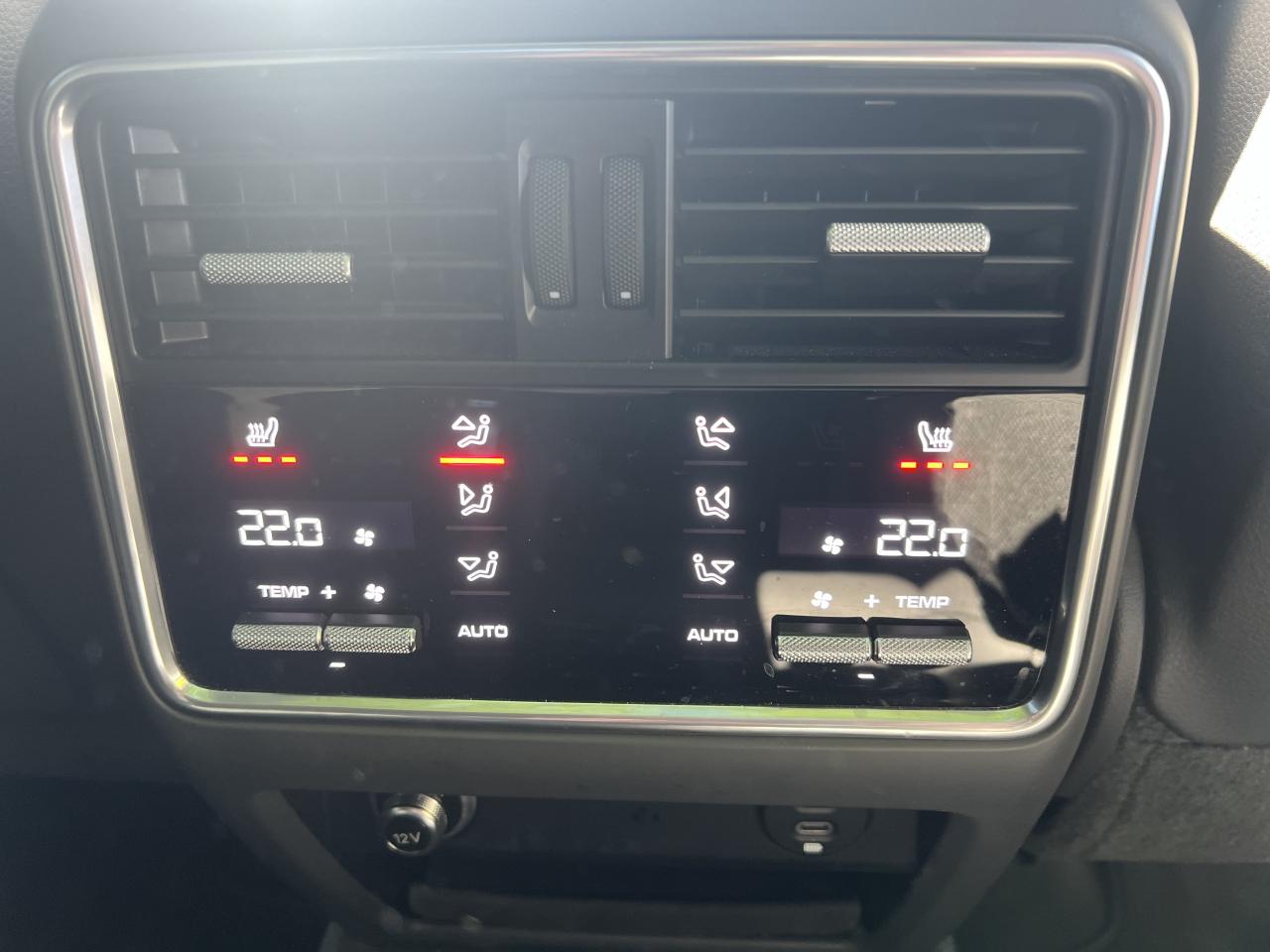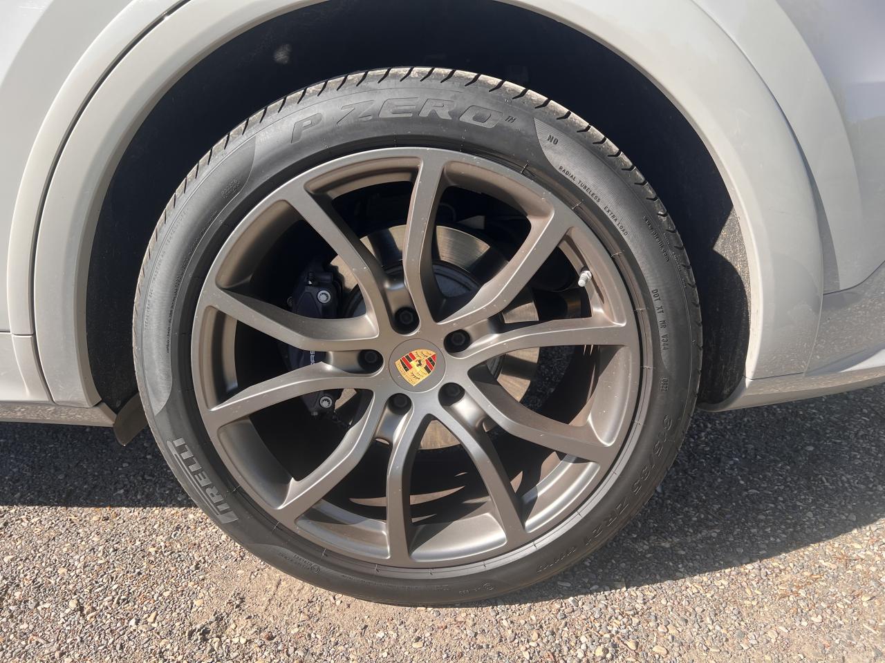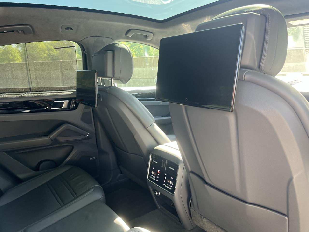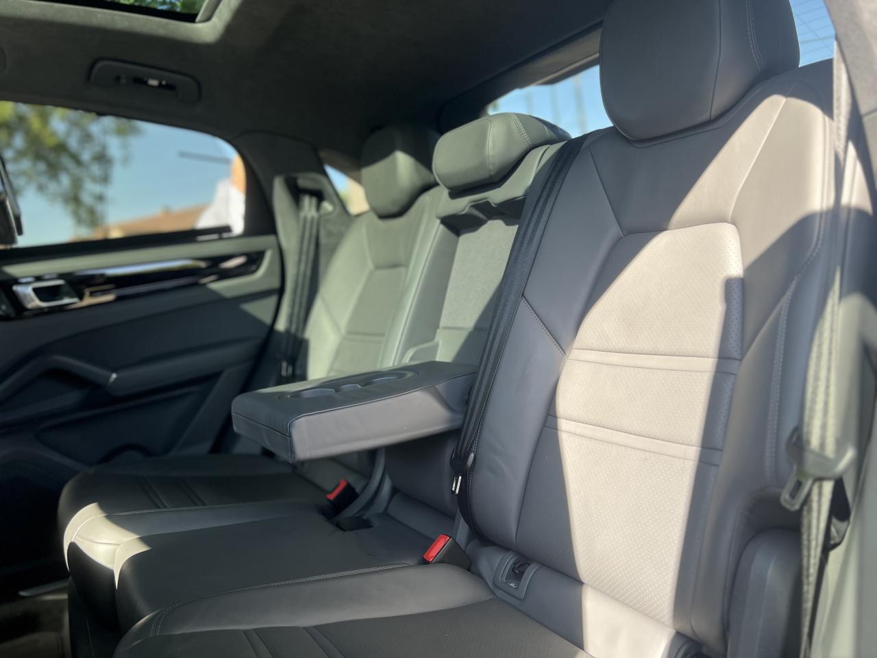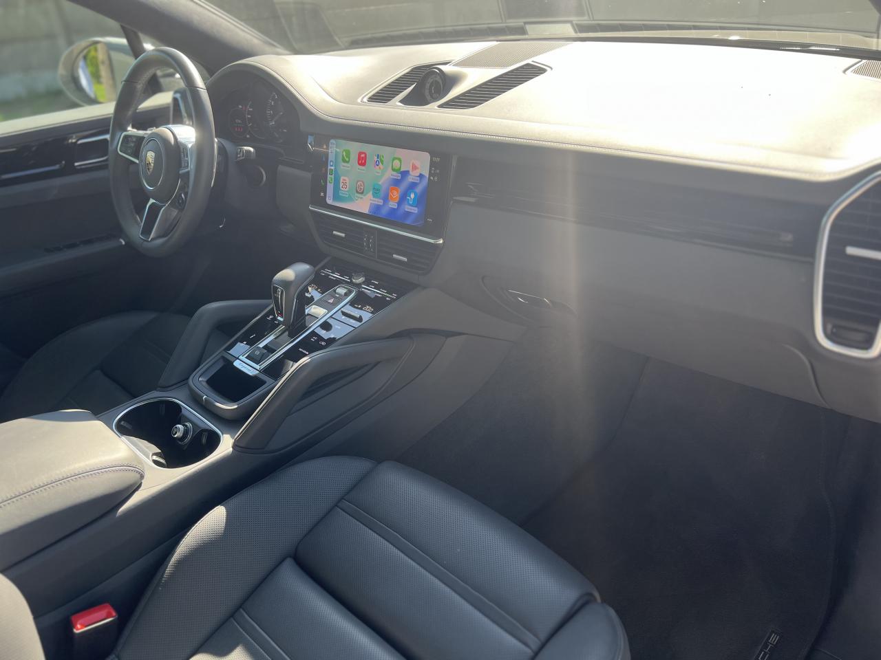 2 doubles sorties d’échappement, sur les côtés gauche et droit, acier brosséÉlectronique de puissance, batterie lithium-ion d’une capacité énergétique de 14 kWh et accessoires moteur électriques (compresseur de climatisation et servofrein électrique)Étriers fixes monobloc en aluminium à 6 pistons à l'avant et 4 pistons à l'arrière2 ports USB de chargement dans la console centrale arrière2 ports USB de chargement et de connexion dans le coffre de rangement de la console centrale avant4 places4 portes avec protection anti-encastrement latérale intégréeAccoudoir central AR avec 2 porte-gobelets, réglage longitudinalAir Curtains dans les passages de rouesAirbag genoux côté conducteur et passagerAirbags grand volume pour le conducteur et le passagerAirbags latéraux avant (siège avant)Airbags rideauxAlarme et double verrouillageAllumage automatique des feux en cas d'ouverture/fermeture du véhiculeApple CarPlayAssistance à la descente (Porsche Hill Control, PHC)Assistance parking avant et arrière avec caméra de reculAvertisseur de freinage d'urgenceBac de rangement dans la console centraleBaguettes de seuil de porte en Acier spécial avec monogramme du modèle à l’avant et à l'arrière : «Cayenne»Batterie allégéeBecquet arrière avec troisième feu de stop à LEDBecquet de toit arrière de couleur carrosserieBloc moteur en aluminiumBlocs optiques avant avec feux de position et clignotants à conducteurs de lumière à technologie LEDBoîte à gants réfrigéréeBoîte de vitesse Tiptronic S 8 rapportsBouclier avant avec prises d’air de refroidissement intégréesCâble de charge pour prise domestiqueCâble secteur permettant d’établir la connexion entre la prise industrielle rouge (400 V, 32 A, 5 broches) et l’unité de commandeCapot avant actifCapteur de pluieCapteur de retournementCarrosserie élargie à l'arrièreCarrosserie de conception allégée hybride entièrement galvanisée alliant Acier et AluminiumCarrosserie hybride en aluminium (capot moteur, hayon, portières et ailes)Ceintures de sécurité automatiques à 3 points avec prétensionneurs pyrotechniques à l'avant et à l'arrière, et limiteur d'effort à l'avantChâssis avec suspension à ressort hélicoïdauxChargeur embarqué (3.6 kW)Ciel de toit en tissuClimatisation automatique avec réglage individuel de la température pour le conducteur et le passager, commande automatique du recyclage de l’air avec capteur de qualité de l’air et réglage individuel du débit d’air côtés conducteur eCombiné d’instruments avec 2 écrans haute résolutionCompte-tours analogique central avec fond de compteur Noir, powermètre et aiguille en Vert AcideConcept d’éclairage de l’habitacle à LED : temporisation d’arrêt, éclairage bas d’habitacle avant et arrière, éclairage du cendrier, de la boîte à gants, du démarreurConnect Plus avec module de navigation en ligne, module téléphone LTE avec lecteur de carte SIM et accès Internet sans fil ainsi que Porsche Car Connect incluant de nombreux services Porsche ConnectContrôle de pression des pneus ( TPMS )Contrôle stabilité remorque et mode PSM SPORTContrôle vocalCouvre-bagages souple enroulableCrochet porte-vêtement sur les montants latéraux (gauche/droite)Culasse en aluminiumDéflecteurs (Airblades) avec entrées d’air latéralesDégivrage de lunette arrière avec arrêt automatiqueDémarrage sans cléDétecteur d'humiditéDiamètre des disques de frein de 360 mm à l’avant et 358 mm à l’arrièreDisques de freins avant et arrière ventilésEclairage d'alentourEntourage des vitres en finition noire brillanteEssieu arrière multibras en aluminiumEssieu avant multibras AluminiumEssuie-glace avant à 2 vitesses avec balayage intermittentEtriers de frein couleur Vert AcideFeux arrière à LED avec graphisme tridimensionnel, avec feux stop intégrés 4 points et bandeau lumineuxFeux de jours à DEL 4 pointsFiltre à charbon actifFiltre à particulesFonction Auto-HoldFrein de parking électriqueFrein multi-collisionHayon automatiqueInjection directe d’essence (Direct Fuel Injection, DFI) avec position centrale des injecteursInscription "e-hybrid" sur les ailes avant gauche et droite entourée en Vert AcideInserts des lamelles des entrées d’air en Noir (finition brillante)Jantes Cayenne Design 20 poucesKit de réparation avec compresseur électriqueLarge soubassement caréné aérodynamiqueLimiteur de vitesseMiroirs de courtoisie éclairés conducteur et passagerMode Individual pour la sélection de réglages sportifs personnalisés du véhiculeMode SPORT PLUS avec réglage axé sur les performances pour le moteur, la boîte de vitesse et le châssisMonogramme avec bordure Vert AcideMonogramme du modèle sur le hayon arrière, en couleur ArgentPack intérieur Noir, finition brillantePack Sport ChronoParamètres de personnalisation du conducteurPare-chocs constitué de traverses haute résistance et de 2 éléments de déformation, comportant chacun 2 logements taraudésPhares à LEDPoignées de portes couleur carrosseriePorsche Active Aerodynamics (PAA) avec becquet de toit à déploiement adaptatifPorsche Active Suspension Management (PASM)Porsche Communication Management (PCM) avec module de navigationPorsche Mobile Charger avec support mural, sac de transport et câble de 4,5 mètres de la voiture au chargeurPorsche Traction Management (PTM) : transmission intégrale dynamique avec différentiel central multidisque électroniquePorte-bouteilles dans les contre-portes avant et arrièrePorte-cartesPorte-gobelets doubles à diamètre variable à l'avant et à l'arrièrePré-équipement attelagePré-équipement pour le montage d'un système de transport sur toitPré-climatisationPrise 12 V dans la boîte à gants et le coffrePrise de courant 12 V dans la console centrale avantPrise de rechargeProtection anti-encastrement latérale dans les portièresRégulateur de châssis intégré Porsche 4D Chassis ControlRégu