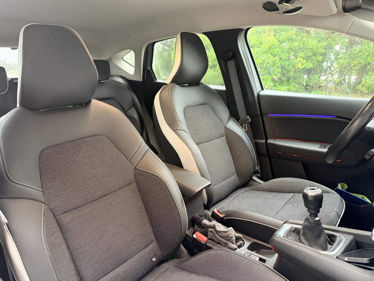 2 prises USB avantABS avec aide au freinage d'urgenceAccoudoir / console centrale avec rangementAccoudoirs de porte gainés en matériau moussé noir pailletéAide au démarrage en côteAide au stationnement avant et arrière + caméra de reculAirbags frontaux et latéraux (tête thorax),conducteur et passagerAlerte oubli des ceintures de sécurité aux 5 places avec détection des occupantsAllumage automatique des essuie-glacesAllumage automatique des projecteursAntenne de toit « aileron de requin »Assistance au maintien de voieBanquette arrière coulissante, rabattable 1/3-2/3 avec 3 appuis-têtes réglables en hauteurBouton d’appel d’urgence r-callBouton de démarrage Start/Stop avec contour chroméCarte mains-libresCeintures de sécurité avec prétentionneurs et limiteurs d’effort aux places avant et latérales arrièreClimatisation automatiqueCondamnation électrique centralisée des portes avec télécommande et condamnation des portes en roulantDécors intérieurs chromés (cerclage aérateurs, inserts volant et entourage de levier de vitesse)Désactivation manuelle de l'airbag passagerEASY LINK 7” avec NavigationEclairage avant et arrière Full LED Pure Vision avec signature lumineuse en forme de « C »Eclairage intelligent (commutation automatique feux de croisement/feux de route)Entourage de levier de vitesse en chrome satinéESC (contrôle électronique de la trajectoire)Feux de stop à LEDFrein de parking électrique avec fonction Auto-HoldIndicateur de changement de vitessesInsert chromé sur les protections inférieures de portesJonc de calandre noir brillant avec inserts chromésLève-vitre électriques à impulsionMode EcoNavigation connectée avec cartographie EuropePanneaux de porte avant avec bandeau supérieur et médaillon en matériau mousséPlafonnier éclairage LEDPlancher de coffre modulable 2 positionsPoches aumônière au dos des sièges avantPoignées de portes couleur carrosseriePoignées de portes intérieures finition chrome satinéRégulateur et limiteur de vitesseRenault MULTI-SENSE, personnalisation des 3 modes de conduites (MY SENSE, ECO, SPORT) et des 8 ambiances lumineuses intérieuresRéplication smartphone compatible Android Auto & Apple CarPlayRétroviseur intérieur électrochromeRétroviseurs extérieurs réglables, rabattables électriquement et dégivrantsRétroviseurs peints noirsSystème de détection de la pression des pneusSystème de fixation ISOFIX aux places latérales arrière et passager avantVitres latérales et lunette arrière surteintéesVolant réglable en hauteur et en profondeur