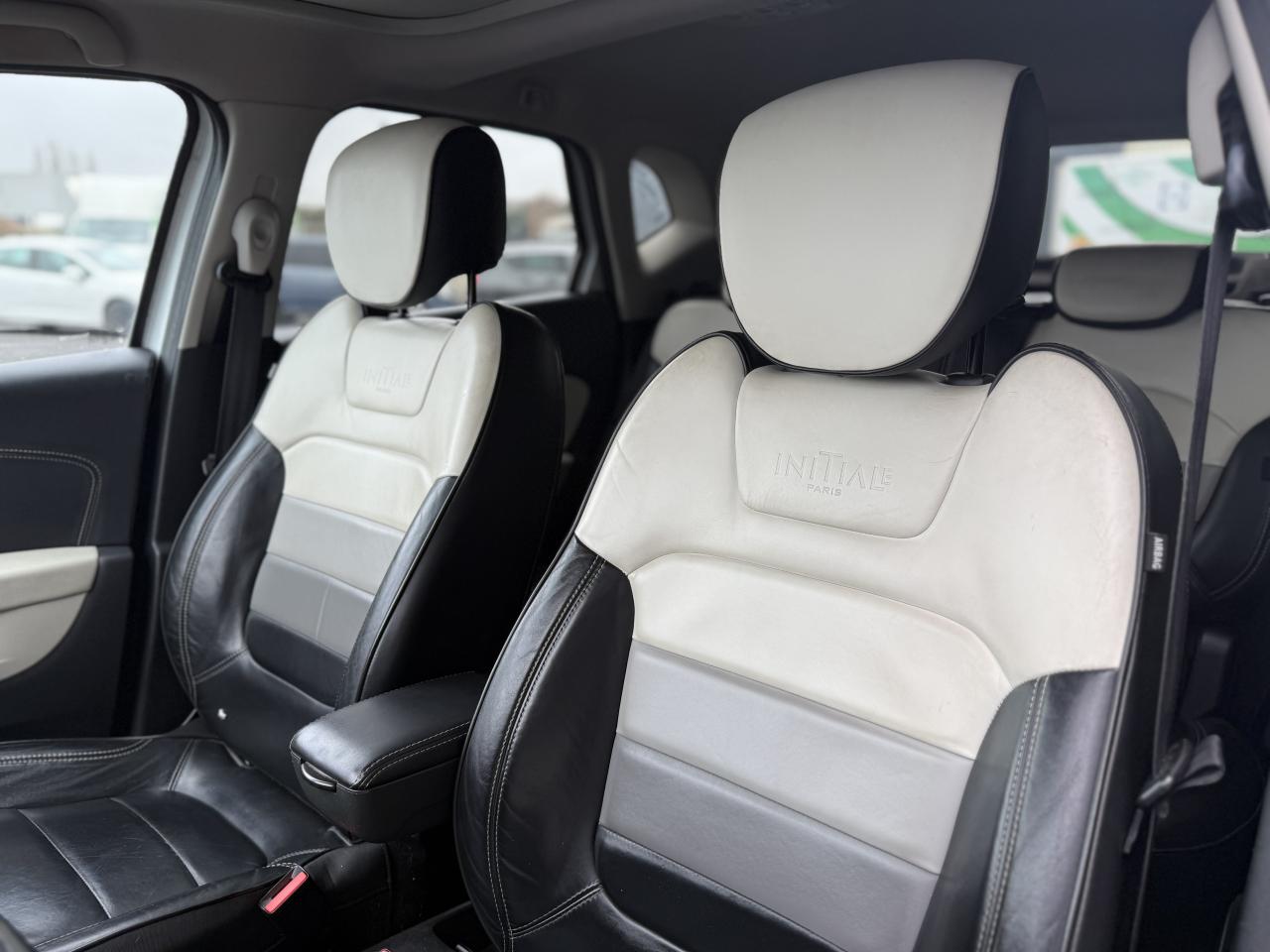 3 appuie-tête arrière réglables en hauteur Camera de reculABS avec répartiteur électronique de freinageToit panoramique en verre avec vélum d'occultationAccoudoir central avantAide au démarrage en côteAirbags frontaux et latéraux conducteur et passagerAlerte oubli ceinture conducteurBaguette de hayon chroméeBanquette AR rabattableBanquette arrière 2/3-1/3 et coulissanteCarte Renault avec accès et démarrage mains-libres avec fermeture à l’éloignementCeinture centrale arrière 3 pointsCeintures de sécurité conducteur et passager avant réglables en hauteurClimatisation automatiqueCondamnation automatique des ouvrants en roulantCondamnation centralisée des portes avec télécommande radiofréquenceContrôle de trajectoire électronique (ESP)Coques de rétroviseurs ton caisseDétecteur d'angle mortDirection assistée électrique avec assistance variableEasy Park Assist (Aide au parking assistée avec radars avant, arrière, latéraux et caméra de recul)Insert chromé sur les protections inférieures de portesJantes alliage 17“ Initiale Paris diamantées NoirLève-vitres électriques avant et arrièreLève-vitres électriques, impulsionnel côté conducteurOrdinateur de bordPédales en aluminiumPlancher de coffre modulablePlancher de coffre réversible et lavablePoignées de portes ton caisseProjecteurs avant Full Led Pure VisionRégulateur et limiteur de vitesseRétroviseurs extérieurs électriques et dégivrants avec sonde de températureSiège conducteur réglable en hauteurSignature « INITIALE PARIS » sur les protections inférieures de porte, les seuils de porte et la grille de calandre avantSurtapisSystème d 'aide au freinage d'urgenceSystème de détection de la pression des pneusSystème Stop & StartVitres arrières surteintéesVolant Cuir NappaVolant réglable en hauteur
