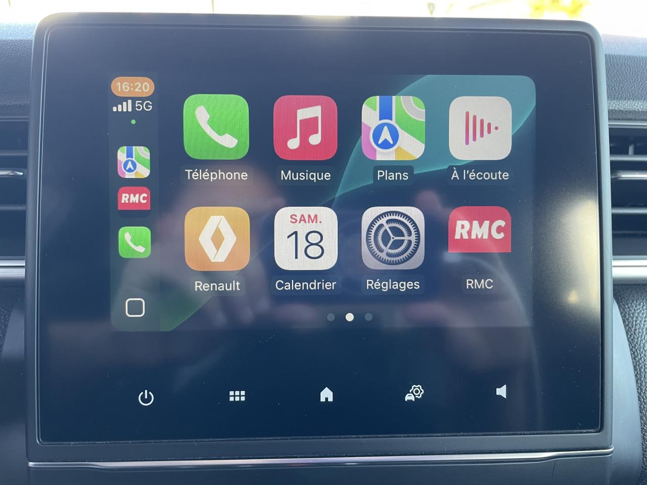 Connexions Apple CarPlay et Android AutoBluetoothAide au stationnement arrièreClimatisation automatiqueRoue de secours (en remplacement du kit de gonflage)Régulateur et limiteur de vitesseReconnaissance des panneaux de signalisationAssistance au maintien de voieAlerte de sortie de voie avec volant haptiqueAlerte de survitesse avec reconnaissance des panneaux de signalisationAlerte distance de sécuritéCapteur de pluieAllumage automatique des projecteursABS avec aide au freinage d'urgenceAccoudoir / console centrale avec rangementAccoudoirs de porte gainés en matériau moussé noir pailletéAérateurs arrièreAide au démarrage en côteAirbags frontaux et latéraux (tête thorax),conducteur et passagerAlerte oubli des ceintures de sécurité aux 5 places avec détection des occupantsAntenne courteAppel d'Urgence Renault: appel automatique en cas d'accident ou bouton SOS pour appel (112) en cas d'urgenceApplication finition chrome sur le volantAumônières au dos des sièges avantBaguettes chromées sur le pare-choc arrièreBandeau de planche de bord gainé TEPBandeau supérieur de décor façon aluminium brosséBanquette arrière coulissanteBanquette arrière rabattable 1/3-2/3 avec 3 appuis-tête réglables en hauteurBouton de démarrage Start/Stop avec contour chroméCanule d'échappement chroméeCarte Renault mains-libresCeinture centrale arrière 3 points, avec prétensionneurCeintures de sécurité conducteur et passager avant réglables en hauteurCerclages chrome satiné autour du pommeau de levier de vitesseCiel de pavillon tissé gris clairCoiffe supérieure de planche de bord mousséeCondamnation automatique des ouvrants en roulantCondamnation centralisée des portes avec télécommande radiofréquenceCoques de rétroviseurs noiresDéflecteur en chromeDésactivation manuelle de l'airbag passagerEasy Link 7" Système multimédia connecté avec écran 7" avec NavigationEclairage avant et arrière Full LED Pure Vision avec signature lumineuse en forme de « C »Eclairage intelligent (commutation automatique feux de croisement/feux de route)Entourage aérateurs en chromeESC (contrôle électronique de la trajectoire)Feux de stop à LEDFrein de parking électrique avec fonction Auto-HoldFreinage actif d'urgenceIndicateur de changement de vitessesInsert chromé sur les protections inférieures de portesInserts d'ailes avant chromésJantes alliage 18” Pasadena diamantées gris erbéJonc noir brillant sur calandreKit gonflage de réparationLêcheur de vitre chromé avec effet pavillon flottantLève-vitre électriques à impulsionMode EcoMontants avant, milieu et arrière noirs brillantsPanneaux de porte avant avec bandeau supérieur et médaillon en matériau mousséPeinture bi-tonPlafonnier éclairage LEDPlancher de coffre modulable 2 positionsPoignées de portes couleur carrosseriePoignées de portes intérieures finition chrome satinéPommeau de levier de vitesses en cuirPrétensionneurs des ceintures et limiteur d efforts AV et AR latéralPrises USB et JackRenault MULTI-SENSE, personnalisation des 3 modes de conduites (MY SENSE, ECO, SPORT) et des 8 ambiances lumineuses intérieuresRétroviseur intérieur électrochromeRétroviseurs extérieurs électriques et dégivrantsRétroviseurs extérieurs réglables, rabattables électriquement et dégivrantsSellerie TEP / tissu avec jonc grisSiège conducteur réglable en hauteurSiège passager réglable en hauteurSkis avant et arrière GrisSystème de détection de la pression des pneusSystème de fixation ISOFIX aux places latérales arrière et passager avantTableau de bord numérique 7” personnalisableTiroir Easy Life avec éclairageVitres latérales et lunette arrière surteintéesVolant cuirVolant réglable en hauteur et en profondeur
