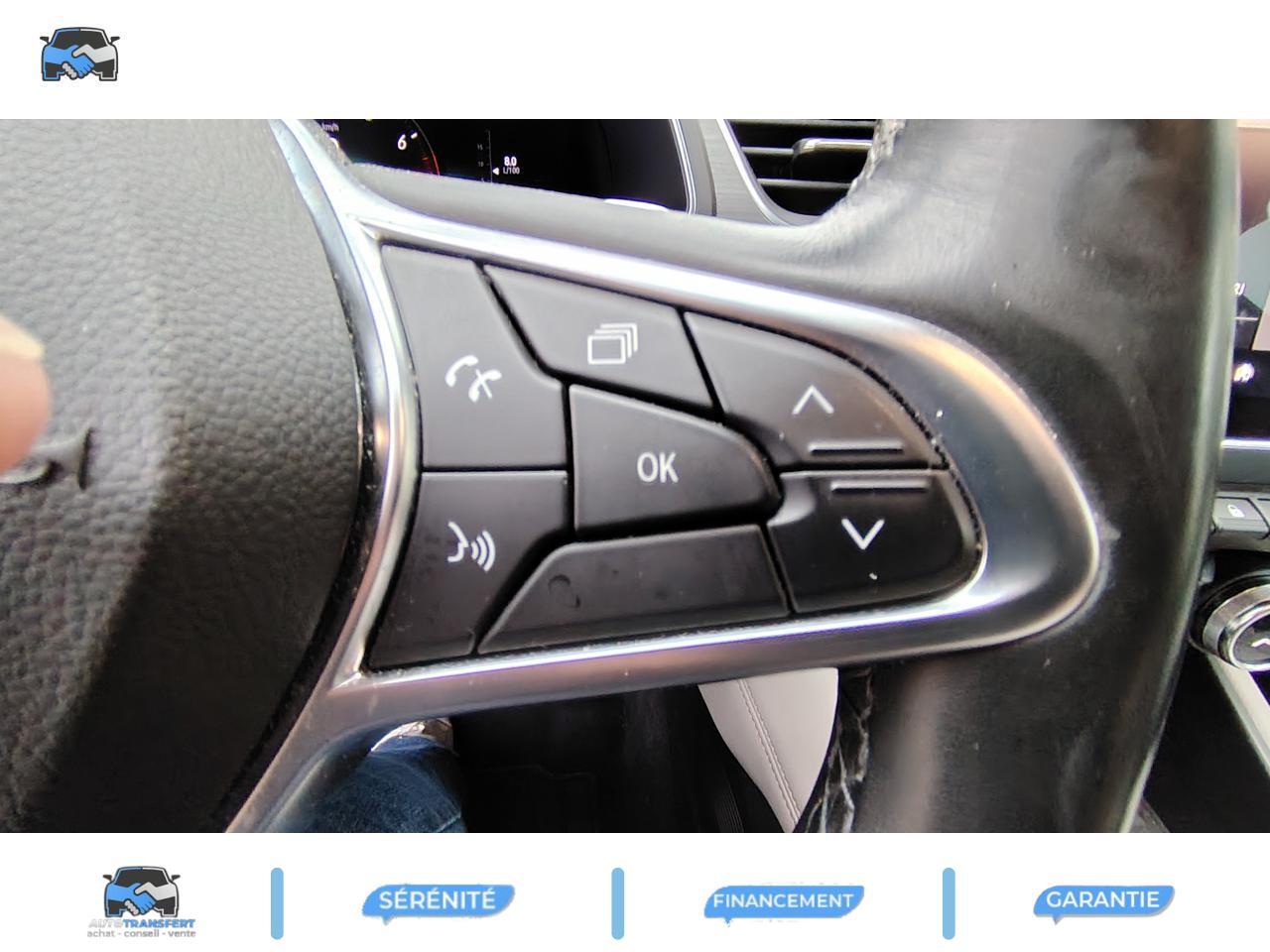ABS avec aide au freinage d'urgenceAccoudoir / console centrale avec rangementAccoudoirs de porte gainés en matériau moussé noir pailletéAide au démarrage en côteAide au stationnement arrièreAirbags frontaux et latéraux (tête thorax),conducteur et passagerAlerte de sortie de voie avec volant haptiqueAlerte de survitesse avec reconnaissance des panneaux de signalisationAlerte distance de sécuritéAlerte oubli des ceintures de sécurité aux 5 places avec détection des occupantsAllumage automatique des projecteursAppel d'Urgence Renault: appel automatique en cas d'accident ou bouton SOS pour appel (112) en cas d'urgenceApplication finition chrome sur le volantAssistance au maintien de voieAumônières au dos des sièges avantBaguettes chromées sur le pare-choc arrièreBandeau supérieur de décor façon aluminium brosséBanquette arrière coulissante, rabattable 1/3-2/3 avec 3 appuis-têtes réglables en hauteurBluetooth, prises USB et JackBose Sound SystemBouton de démarrage Start/Stop avec contour chroméCalandre étoilée spécifique INITIALE PARISCanule d'échappement chroméeCapteur de pluieCarte Renault mains-libresCeinture centrale arrière 3 points, avec prétensionneur et limiteur d’effortCeintures de sécurité conducteur et passager avant réglables en hauteurCerclages chrome satiné autour du pommeau de levier de vitesseChargeur de smartphone par inductionCiel de pavillon tissé gris clairClimatisation automatiqueCoiffe supérieure de planche de bord mousséeCompatibilité Apple CarPlay et Android AutoCondamnation automatique des ouvrants en roulantCondamnation électrique centralisée des portes avec télécommande et condamnation des portes en roulantConsole centrale flottante gainée inspiration cuir noir Titane et surpiqûres CognacConsole centrale flottante, avec levier de vitesse e-shifterCoques de rétroviseurs noiresDéflecteur en chromeDésactivation manuelle de l'airbag passagerDétecteur d'angle mortEasy Park AssistEclairage avant et arrière Full LED Pure Vision avec signature lumineuse en forme de « C »Eclairage intelligent (commutation automatique feux de croisement/feux de route)Entourage aérateurs en chromeESC (contrôle électronique de la trajectoire)Feux de stop à LEDFrein de parking électrique avec fonction Auto-HoldFreinage actif d’urgence, avec détection des voitures, motos, piétons, cyclistes (jour et nuit)Indicateur de changement de vitessesInsert chromé sur les protections inférieures de portes et marquage INITIALE PARISInserts d'ailes avant chromésJantes alliage 18” INITIALE PARIS diamantées noiresJonc de calandre noir brillant avec inserts chromésKit gonflage de réparationLêcheur de vitre chromé avec effet pavillon flottantLève-vitre électriques à impulsionMode EcoMontants avant, milieu et arrière noirs brillantsPack Ambiance intérieure Initiale Paris Noir TitanePack CityPack TechnoPalettes au volantPanneaux de porte avant avec bandeau supérieur et médaillon en matériau mousséPeinture bi-ton (toit, coques de rétroviseurs, montants de pare-brise)Plafonnier éclairage LEDPlancher de coffre modulable 2 positionsPoignées de portes couleur carrosseriePoignées de portes intérieures finition chrome satinéPommeau de levier de vitesses en cuirPrétensionneurs des ceintures et limiteur d efforts AV et AR latéralReconnaissance des panneaux de signalisationRégulateur et limiteur de vitesseRenault MULTI-SENSE, personnalisation des 3 modes de conduites (MY SENSE, ECO, SPORT) et des 8 ambiances lumineuses intérieuresRétroviseur intérieur électrochromeRétroviseur intérieur électrochrome sans contourRétroviseurs extérieurs réglables, rabattables électriquement et dégivrantsSellerie cuir Noir Titane avec matelassage Diamant, surpiqûres et passepoil CognacSéquence d’arrivée et départ spécifique INITIALE PARISSeuils de porte avant INTIALE PARISSiège conducteur à réglages électriques 6 positionsSiège conducteur avec réglage lombaire manuelSiège conducteur réglable en hauteurSiège passager réglable en hauteurSièges avant chauffantsSkis avant et arrière gris erbé spécifiques INITIALE PARISSurtapis de sol avant et arrière Initiale ParisSystème de détection de la pression des pneusSystème de fixation ISOFIX aux places latérales arrière et passager avantTableau de bord numérique 10’’ personnalisableTiroir Easy Life avec éclairageVitres latérales et lunette arrière surteintéesVolant chauffantVolant cuir Initiale ParisVolant réglable en hauteur et en profondeur