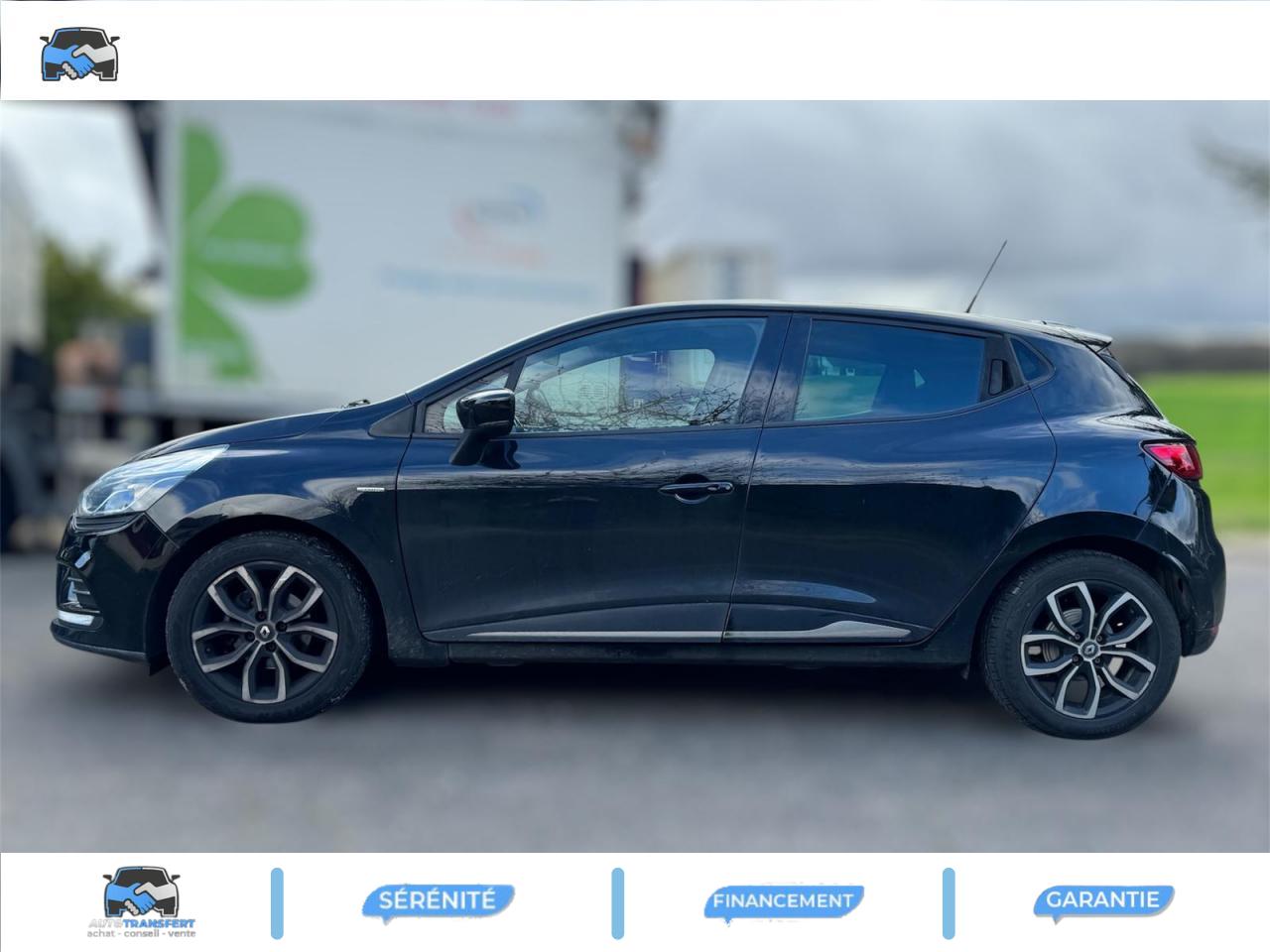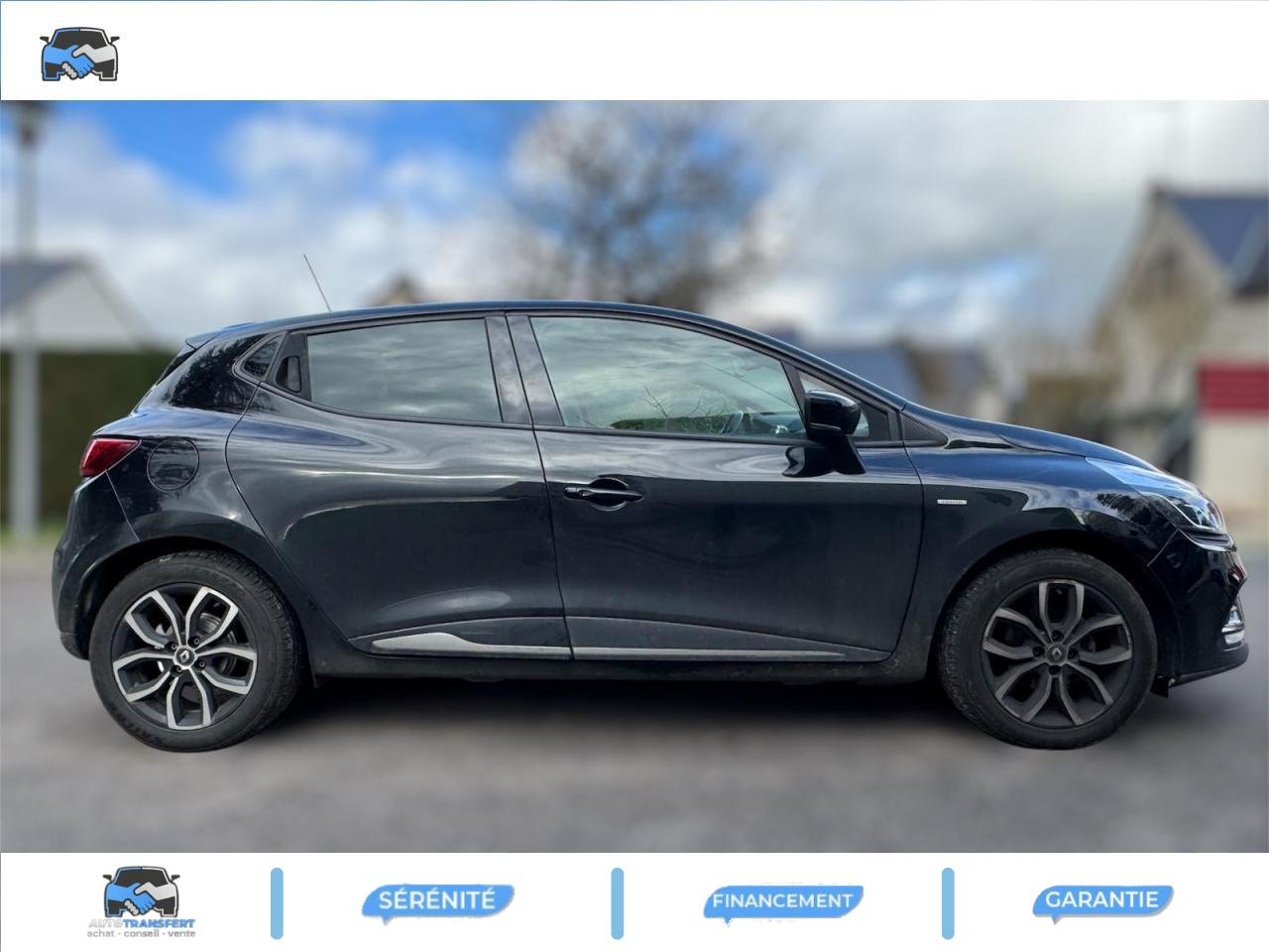 3 appuie-tête arrière réglables en hauteurABS avec aide au freinage d'urgenceAide au démarrage en côteAirbags frontaux et latéraux conducteur et passager déconnectablesAlerte de ceinture de sécurité conducteur et passagerBadge limitedBanquette arrière rabattable 1/3-2/3 avec 3 appuis-tête réglables en hauteurBecquet de hayon arrièreBoîte à gants fermable (volume 7 L)Carte Renault à télécommandeCerclage des compteurs peint chrome satinéCerclage des futs latéraux chromé satinéCerclages d‘aérateurs Noir BrillantClimatisation manuelleCondamnation automatique des ouvrants en roulantCoques de rétroviseurs extérieurs noir grand brillantDirection assistée électrique à assistance variableÉcran tactile multimédia 7" (radio MP3, Bluetooth, prises USB et Jack)Essuie-glace arrière avec déclenchement automatique en marche arrièreEssuie-vitre à cadencementFeux de jour à LEDHarmonie Carbone FoncéIndicateur de changement de vitessesJantes alliage 16'' Pulsize diamantées NoirJonc de hayon chroméJoncs Chrome sur protections latérales de caisse Noir BrillantJoncs chromés sur bandeau supérieur de calandreJoncs sur protections latérales de portes ChromeJupes AR noire brillantKit gonflage de réparationLève-vitres électriques à l'avantLunette arrière chauffanteMode de conduite Eco avec bouton d'activationOrdinateur de bordPare-soleil conducteur et passager avec miroir de courtoisiePlafonnier avec liseuse individuellePoches aumônières au dos des sièges avantPoignées de maintien passager avant et arrière rabattablesPoignées de portes couleur carrosserieProjecteurs double optique halogènesRangement nomadeRégulateur et limiteur de vitesseRépétiteurs de clignotants sur rétroviseurs extérieursRétroviseurs extérieurs électriques et dégivrantsRétroviseurs extérieurs rabattables manuellementSellerie Spécifique LimitedSeuil de porte LimitedSiège conducteur réglable en hauteurSystème de contrôle de trajectoire (ESP) et système antipatinage (ASR)Système de surveillance de pression des pneusSystème Isofix aux places latérales ARSystème Stop & StartVitres arrières surteintéesVolant réglable en hauteur et en profondeurVolant TEP / Similicuir