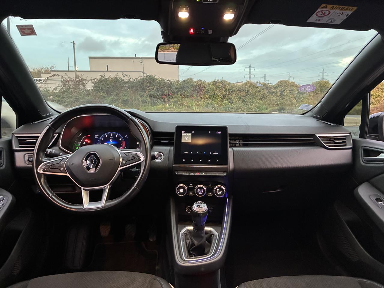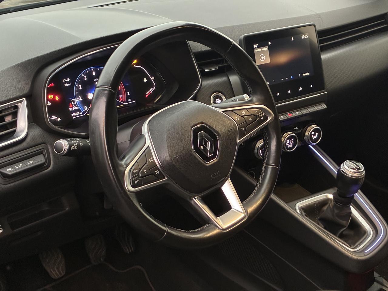 ABS avec aide au freinage d'urgenceAérateurs latéraux chrome satinéAide au démarrage en côteAirbags frontaux et latéraux conducteur et passager avantAlerte de perte de pression des pneusAlerte de sortie de voie avec volant haptiqueAlerte de survitesse avec reconnaissance des panneaux de signalisationAlerte distance de sécuritéAlerte oubli des ceintures de sécurité aux 5 places avec détection des occupantsAllumage automatique des projecteursAmbiance noire MosaicAppel d'Urgence Renault: appel automatique en cas d'accident ou bouton SOS pour appel (112) en cas d'urgenceAppuis-têtes avant fin et 3 appuis-têtes arrière réglables en hauteurAssistance au maintien de voieBanquette arrière rabattable 40/60Boîte à gants ferméeCeinture centrale arrière 3 points, avec prétensionneurCeintures de sécurité AV et latérales AR à prétensionneurs et limiteurs d'effortCeintures de sécurité avant réglables en hauteurClimatisation manuelleCoiffe de planche de bord en noirContrôle électronique de stabilité (ESC)Désactivation manuelle de l'airbag passagerEasy Link 7"Eclairage avant et arrière Full LED Pure VisionEcran conducteur couleur 4,2” avec 2 compteurs analogiques (vitesse et compte-tours)Freinage actif d’urgence, avec détection des voitures, motos, piétons, cyclistes (jour et nuit)Indicateur de changement de vitessesJoncs chromés sur bandeau supérieur de calandreJoncs noir brillant sur protections inférieures de porteLève-vitres électriques et à l’avant impulsionnelsMode EcoPoignées de porte avant couleur carrosserieProtections inférieures de porte avec signature CLIORéception radio numérique (DAB+ et traditionnels FM/AM)Régulateur et limiteur de vitesseRétroviseur intérieur jour et nuitRétroviseurs extérieurs à réglages électriquesRétroviseurs extérieurs couleur carrosserieSellerie tissu Mountain 3D, noir et anthracite, avec coussins latéraux embossésSiège conducteur réglable en hauteurSièges confort, assise élargie et maintien latéral amélioréVolant multifonctions réglable en hauteur et en profondeurVolant TEP