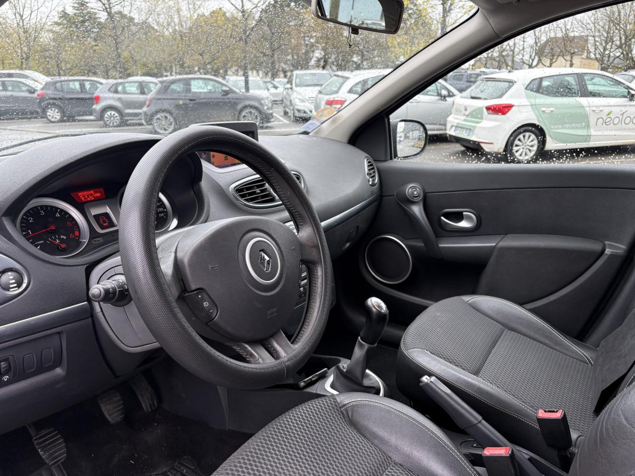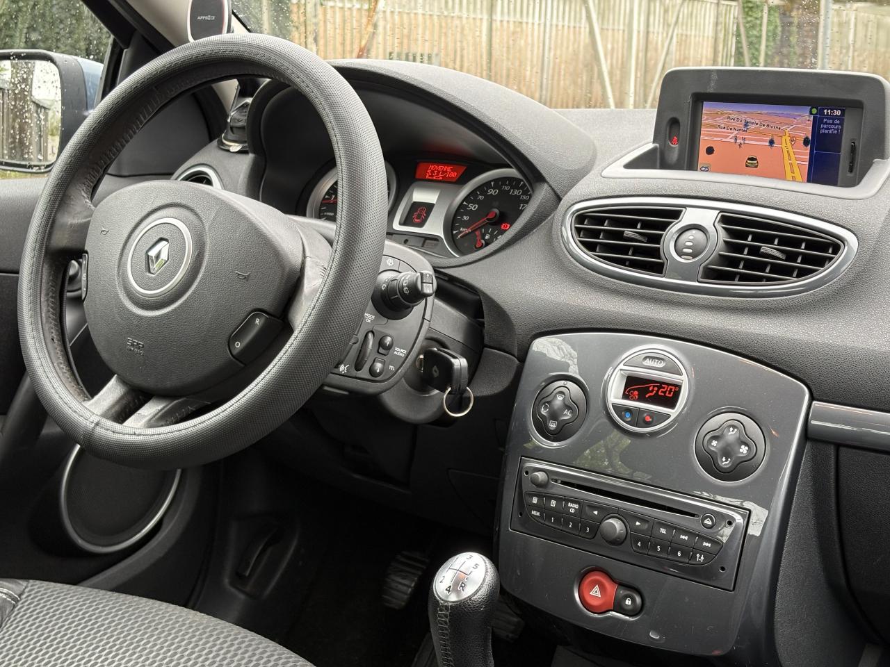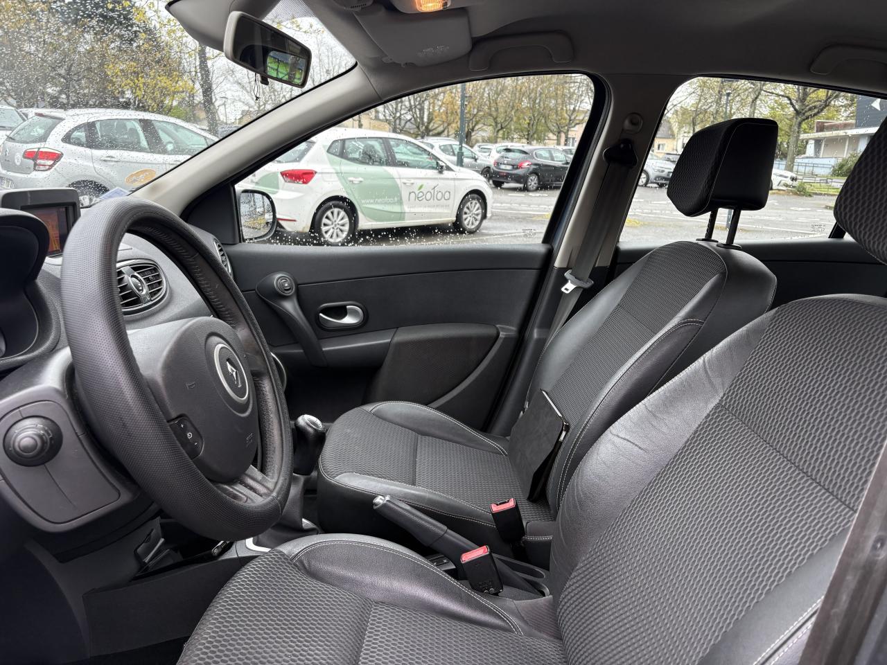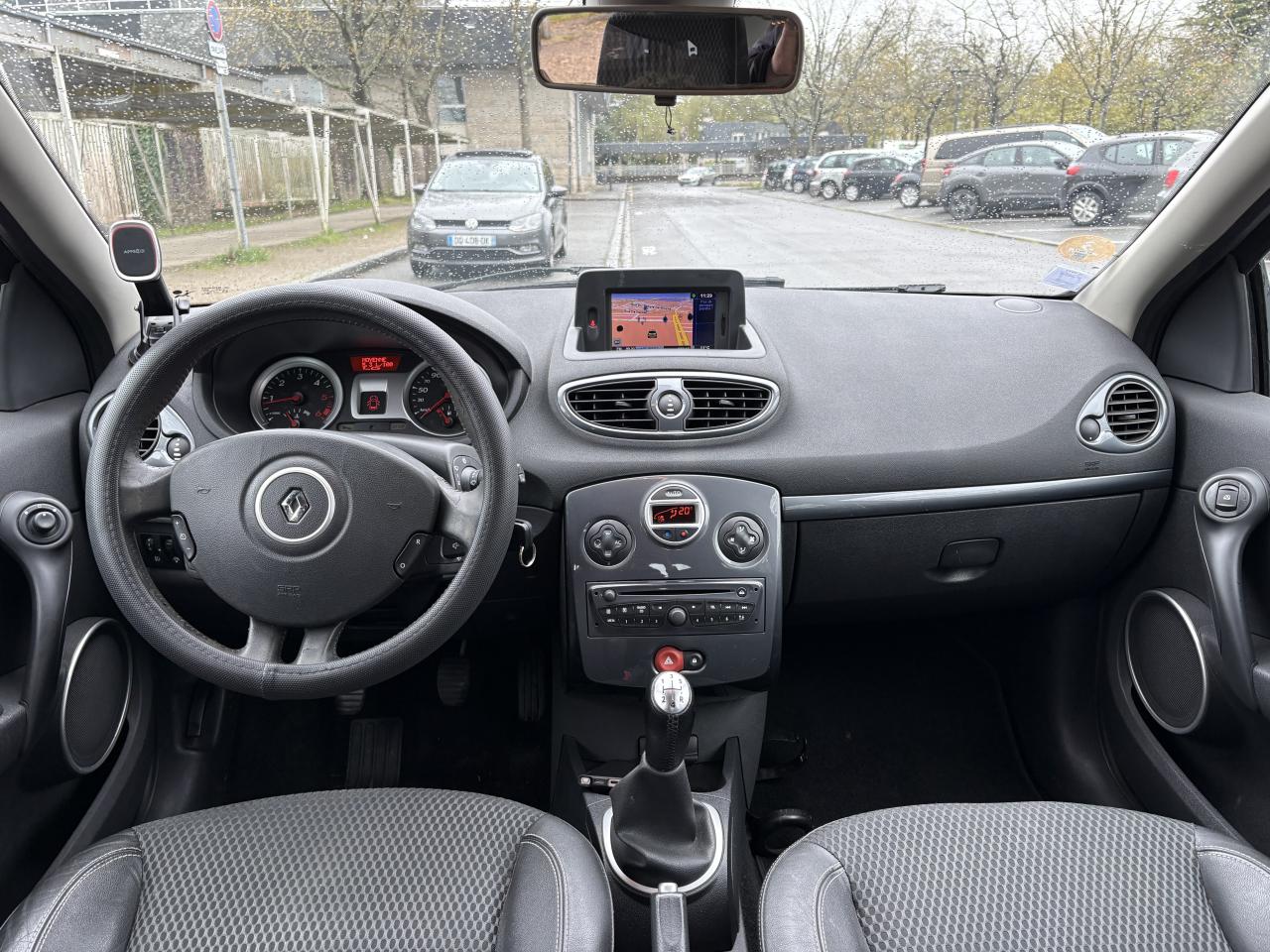 2 spots de lecture conducteur et passager avant3 appuis-tête arrière « virgule » réglables en hauteur et verrouillables : 2 positions : rangée et levéeABS avec Répartiteur Electronique de Freinage (EBV) + Assistance au Freinage d'Urgence (AFU)Afficheur alphanumérique multifonctions : totaliseur Km, indicateur de maintenance, messages de conseils et d'alerteAfficheur central : date, heure, radio, navigationAfficheur température extérieureAirbags frontaux auto-adaptatifs : conducteur (65 l) et passager (130 l)Airbags latéraux thorax intégrés dans sièges avantAirbags rideaux de tête avant et arrièreAppuis-tête avant réglables en hauteur « Nouvelle génération »Avertisseur d'oubli de bouclage ceinture conducteurBaguette de planche de bord peinte gris tropic très clair métalliséBarreau inférieur de bouclier avant chrome satinéBoîte à gants (9,4 l)Boîte à gants (9,4 l) réfrigéréeCeinture de sécurité arrière : 3 points à enrouleurs sur 3 places avec limiteur d'effort uniquement aux places latéralesCeinture de sécurité avant réglable en hauteur : 3 points à enrouleurs avec prétensionneur et limiteur d'effort intégréClé de décondamnation à distanceCoiffe de planche avec visière intégrée - SlushCommande ouverture extérieure chrome satinéeCommande ouverture intérieure chrome satinéConsole centrale injectée : Carbone FoncéConsole centrale injectée gris tropic très clair métalliséCoquilles de rétroviseurs : Ton caisseDécondamnation électrique « enfant » du verrouillage des portes arrièreEclairage de coffreEclairage intérieur temporiséEssuie-glace arrière avec déclenchement automatique en marche arrièreFonctionnalité assise et dossier arrière 1/3 2/3Garniture de bas de marche chromée avec marquage ClioInhibition manuelle des airbags passager avantKit de gonflage placé dans le coffreLève-vitres arrière électriquesLève-vitres avant impulsionnels antipincement conducteur et passagerOrdinateur de bord multifonctionsPack ClimatiquePommeau de levier de vitesses en cuir carbone foncéPommeau de levier de vitesses en cuir gris tropique clairPrétensionneur et limiteur d'effort intégré ventral avantProjecteurs à double optique masque noirProjecteurs antibrouillardProtections latérales : corps de baguette ton caisse satiné avec embout de baguette « chrome satiné »Réglage lombaire conducteurRégulateur et limiteur de vitesseRéhausse siège passagerRétroviseurs extérieurs électriques et dégivrant, à miroir asphériqueSiège conducteur réglable en hauteurStripping sur pied milieu noirSystème Isofix de siège enfant : aux places arrière latéralesVitres surteintées à l'arrièreVolant cuir carbone foncéVolant cuir gris tropic moyenVolant réglable en hauteur
