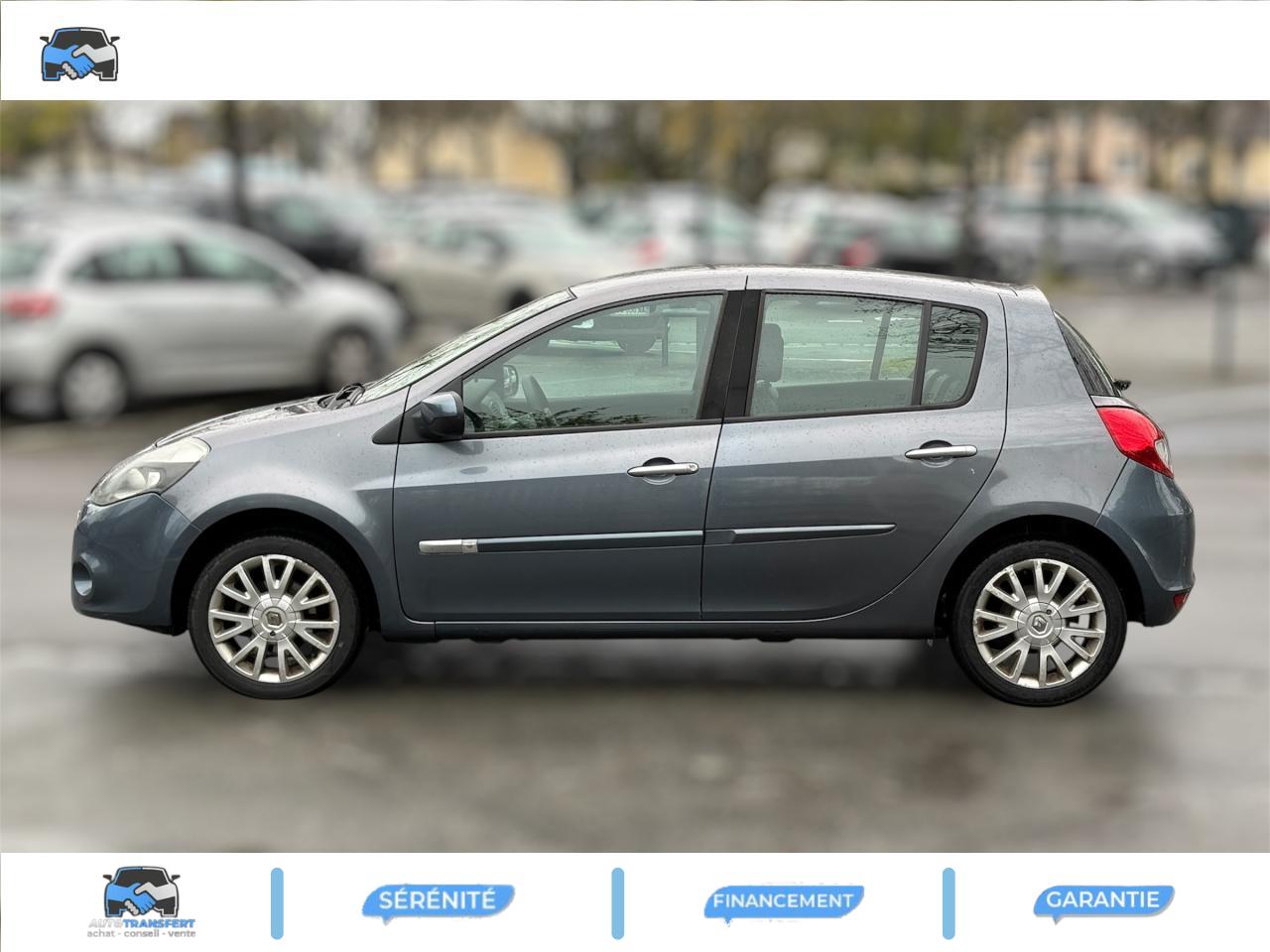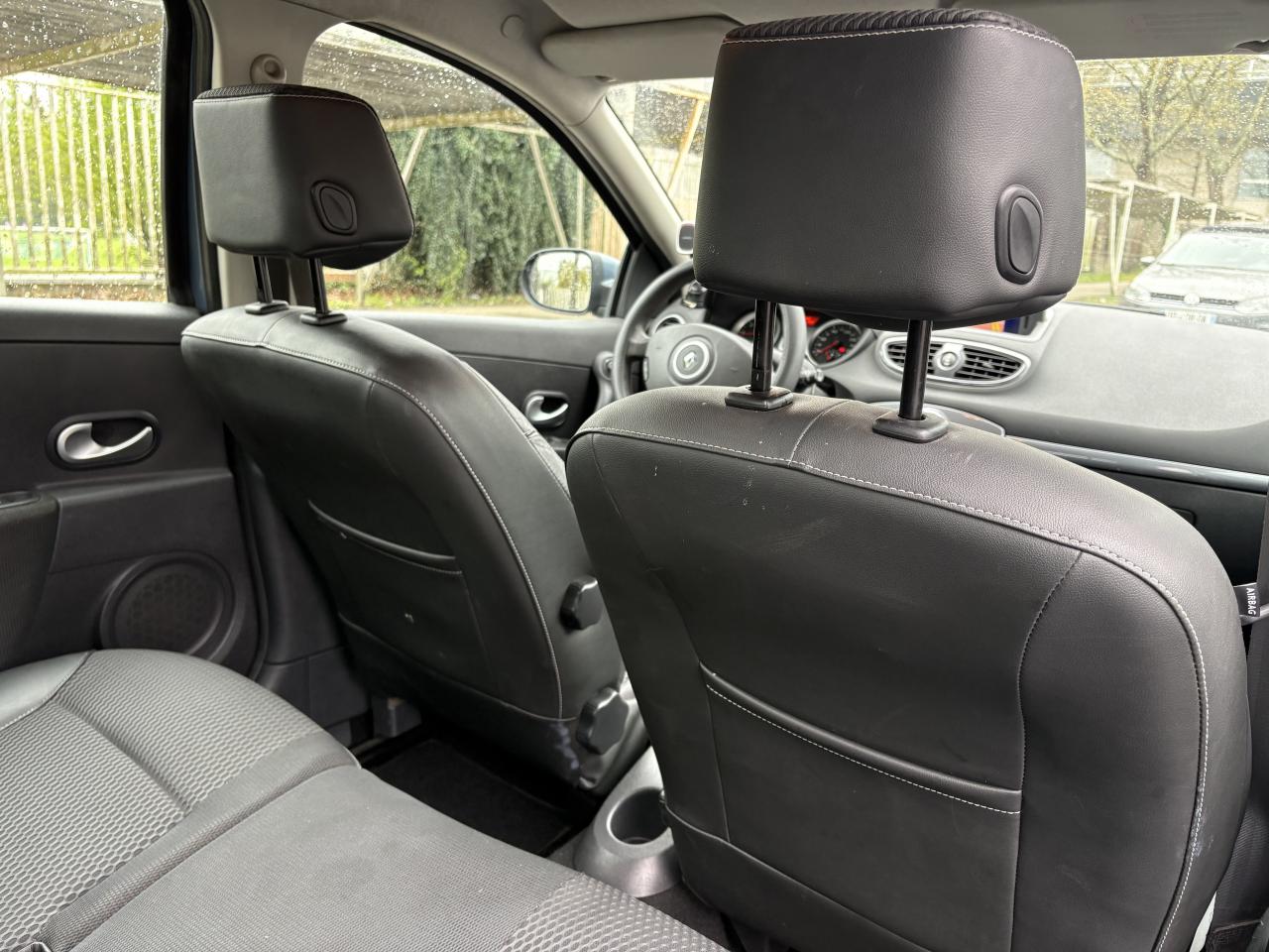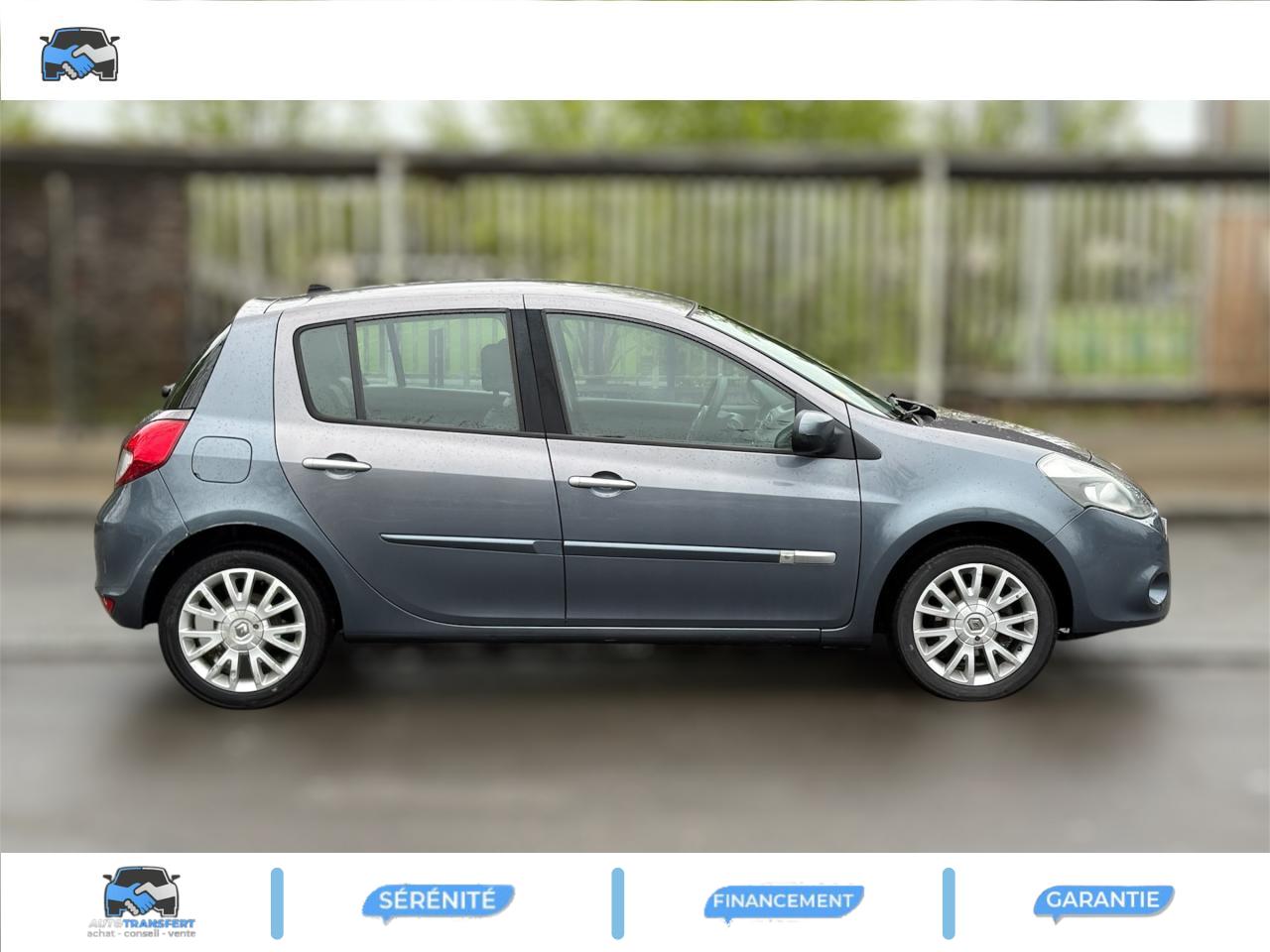 2 spots de lecture conducteur et passager avant3 appuis-tête arrière « virgule » réglables en hauteur et verrouillables : 2 positions : rangée et levéeABS avec Répartiteur Electronique de Freinage (EBV) + Assistance au Freinage d'Urgence (AFU)Afficheur alphanumérique multifonctions : totaliseur Km, indicateur de maintenance, messages de conseils et d'alerteAfficheur central : date, heure, radio, navigationAfficheur température extérieureAirbags frontaux auto-adaptatifs : conducteur (65 l) et passager (130 l)Airbags latéraux thorax intégrés dans sièges avantAirbags rideaux de tête avant et arrièreAppuis-tête avant réglables en hauteur « Nouvelle génération »Avertisseur d'oubli de bouclage ceinture conducteurBaguette de planche de bord peinte gris tropic très clair métalliséBarreau inférieur de bouclier avant chrome satinéBoîte à gants (9,4 l)Boîte à gants (9,4 l) réfrigéréeCeinture de sécurité arrière : 3 points à enrouleurs sur 3 places avec limiteur d'effort uniquement aux places latéralesCeinture de sécurité avant réglable en hauteur : 3 points à enrouleurs avec prétensionneur et limiteur d'effort intégréClé de décondamnation à distanceCoiffe de planche avec visière intégrée - SlushCommande ouverture extérieure chrome satinéeCommande ouverture intérieure chrome satinéConsole centrale injectée : Carbone FoncéConsole centrale injectée gris tropic très clair métalliséCoquilles de rétroviseurs : Ton caisseDécondamnation électrique « enfant » du verrouillage des portes arrièreEclairage de coffreEclairage intérieur temporiséEssuie-glace arrière avec déclenchement automatique en marche arrièreFonctionnalité assise et dossier arrière 1/3 2/3Garniture de bas de marche chromée avec marquage ClioInhibition manuelle des airbags passager avantKit de gonflage placé dans le coffreLève-vitres arrière électriquesLève-vitres avant impulsionnels antipincement conducteur et passagerOrdinateur de bord multifonctionsPack ClimatiquePommeau de levier de vitesses en cuir carbone foncéPommeau de levier de vitesses en cuir gris tropique clairPrétensionneur et limiteur d'effort intégré ventral avantProjecteurs à double optique masque noirProjecteurs antibrouillardProtections latérales : corps de baguette ton caisse satiné avec embout de baguette « chrome satiné »Réglage lombaire conducteurRégulateur et limiteur de vitesseRéhausse siège passagerRétroviseurs extérieurs électriques et dégivrant, à miroir asphériqueSiège conducteur réglable en hauteurStripping sur pied milieu noirSystème Isofix de siège enfant : aux places arrière latéralesVitres surteintées à l'arrièreVolant cuir carbone foncéVolant cuir gris tropic moyenVolant réglable en hauteur