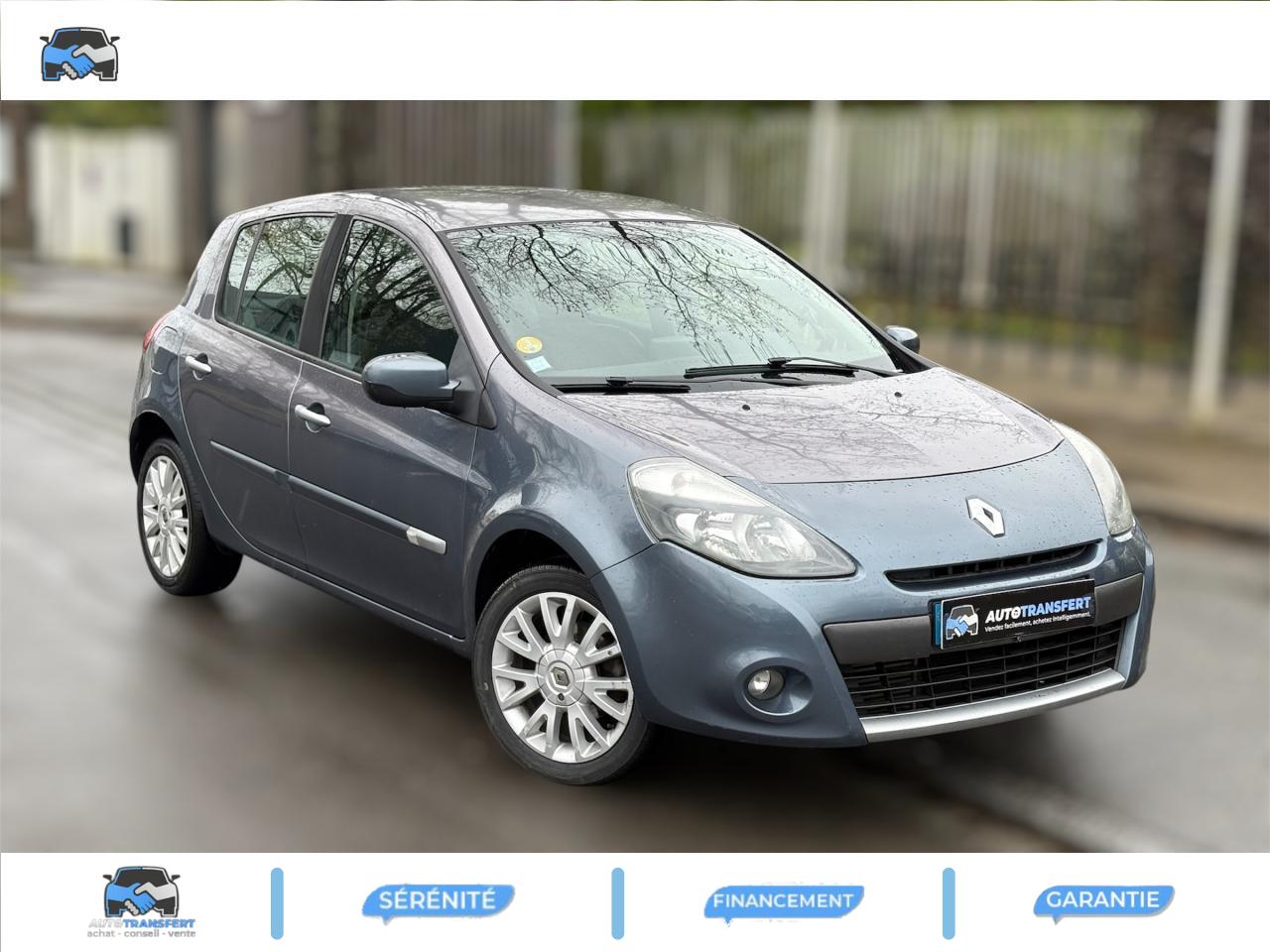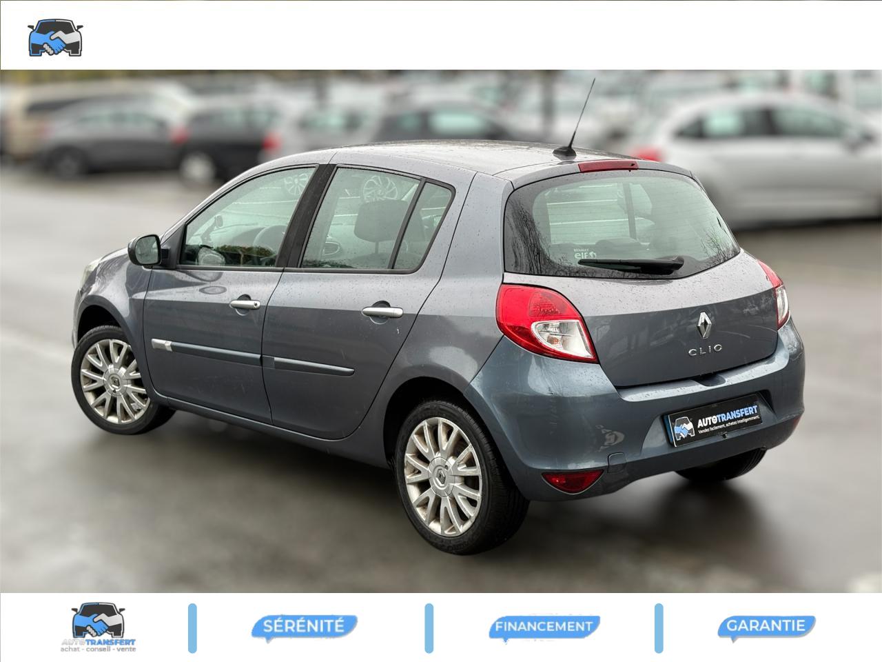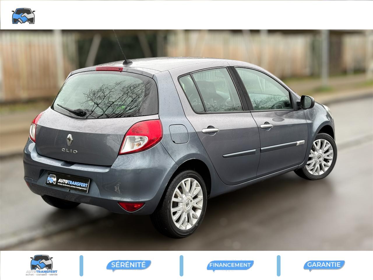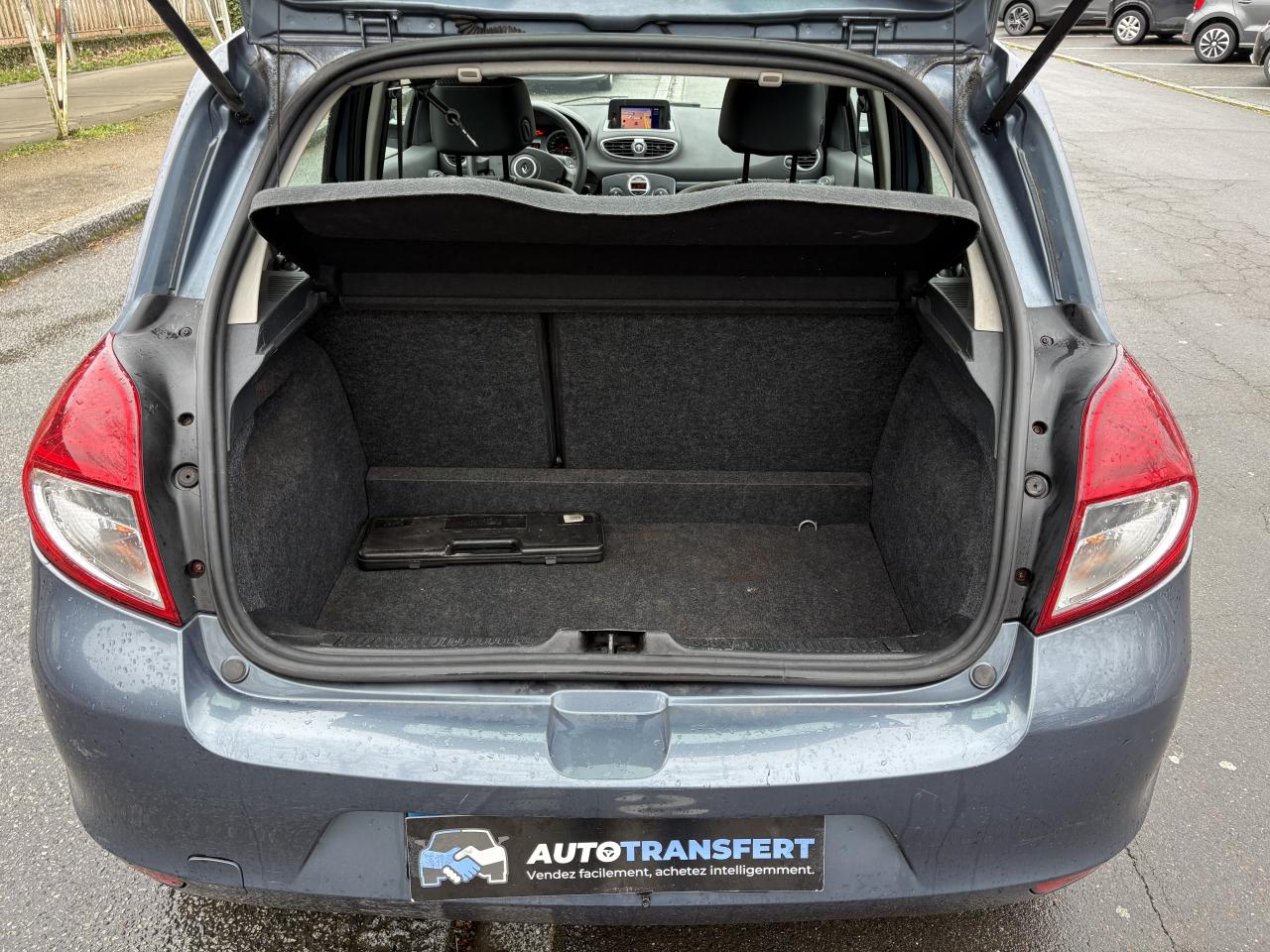 2 spots de lecture conducteur et passager avant3 appuis-tête arrière « virgule » réglables en hauteur et verrouillables : 2 positions : rangée et levéeABS avec Répartiteur Electronique de Freinage (EBV) + Assistance au Freinage d'Urgence (AFU)Afficheur alphanumérique multifonctions : totaliseur Km, indicateur de maintenance, messages de conseils et d'alerteAfficheur central : date, heure, radio, navigationAfficheur température extérieureAirbags frontaux auto-adaptatifs : conducteur (65 l) et passager (130 l)Airbags latéraux thorax intégrés dans sièges avantAirbags rideaux de tête avant et arrièreAppuis-tête avant réglables en hauteur « Nouvelle génération »Avertisseur d'oubli de bouclage ceinture conducteurBaguette de planche de bord peinte gris tropic très clair métalliséBarreau inférieur de bouclier avant chrome satinéBoîte à gants (9,4 l)Boîte à gants (9,4 l) réfrigéréeCeinture de sécurité arrière : 3 points à enrouleurs sur 3 places avec limiteur d'effort uniquement aux places latéralesCeinture de sécurité avant réglable en hauteur : 3 points à enrouleurs avec prétensionneur et limiteur d'effort intégréClé de décondamnation à distanceCoiffe de planche avec visière intégrée - SlushCommande ouverture extérieure chrome satinéeCommande ouverture intérieure chrome satinéConsole centrale injectée : Carbone FoncéConsole centrale injectée gris tropic très clair métalliséCoquilles de rétroviseurs : Ton caisseDécondamnation électrique « enfant » du verrouillage des portes arrièreEclairage de coffreEclairage intérieur temporiséEssuie-glace arrière avec déclenchement automatique en marche arrièreFonctionnalité assise et dossier arrière 1/3 2/3Garniture de bas de marche chromée avec marquage ClioInhibition manuelle des airbags passager avantKit de gonflage placé dans le coffreLève-vitres arrière électriquesLève-vitres avant impulsionnels antipincement conducteur et passagerOrdinateur de bord multifonctionsPack ClimatiquePommeau de levier de vitesses en cuir carbone foncéPommeau de levier de vitesses en cuir gris tropique clairPrétensionneur et limiteur d'effort intégré ventral avantProjecteurs à double optique masque noirProjecteurs antibrouillardProtections latérales : corps de baguette ton caisse satiné avec embout de baguette « chrome satiné »Réglage lombaire conducteurRégulateur et limiteur de vitesseRéhausse siège passagerRétroviseurs extérieurs électriques et dégivrant, à miroir asphériqueSiège conducteur réglable en hauteurStripping sur pied milieu noirSystème Isofix de siège enfant : aux places arrière latéralesVitres surteintées à l'arrièreVolant cuir carbone foncéVolant cuir gris tropic moyenVolant réglable en hauteur