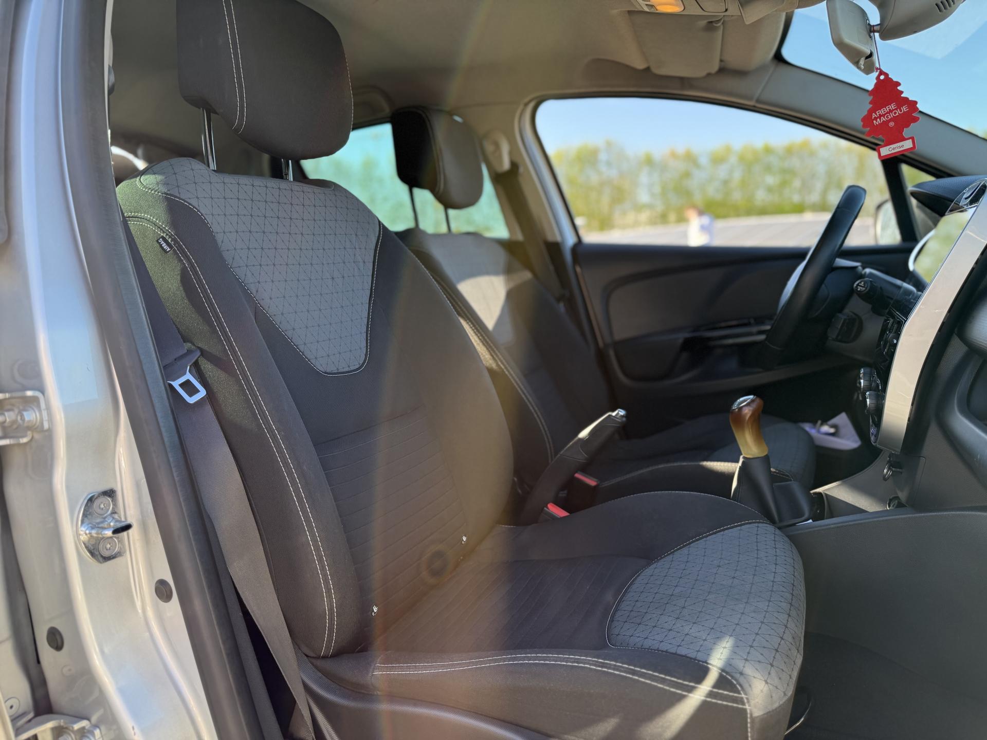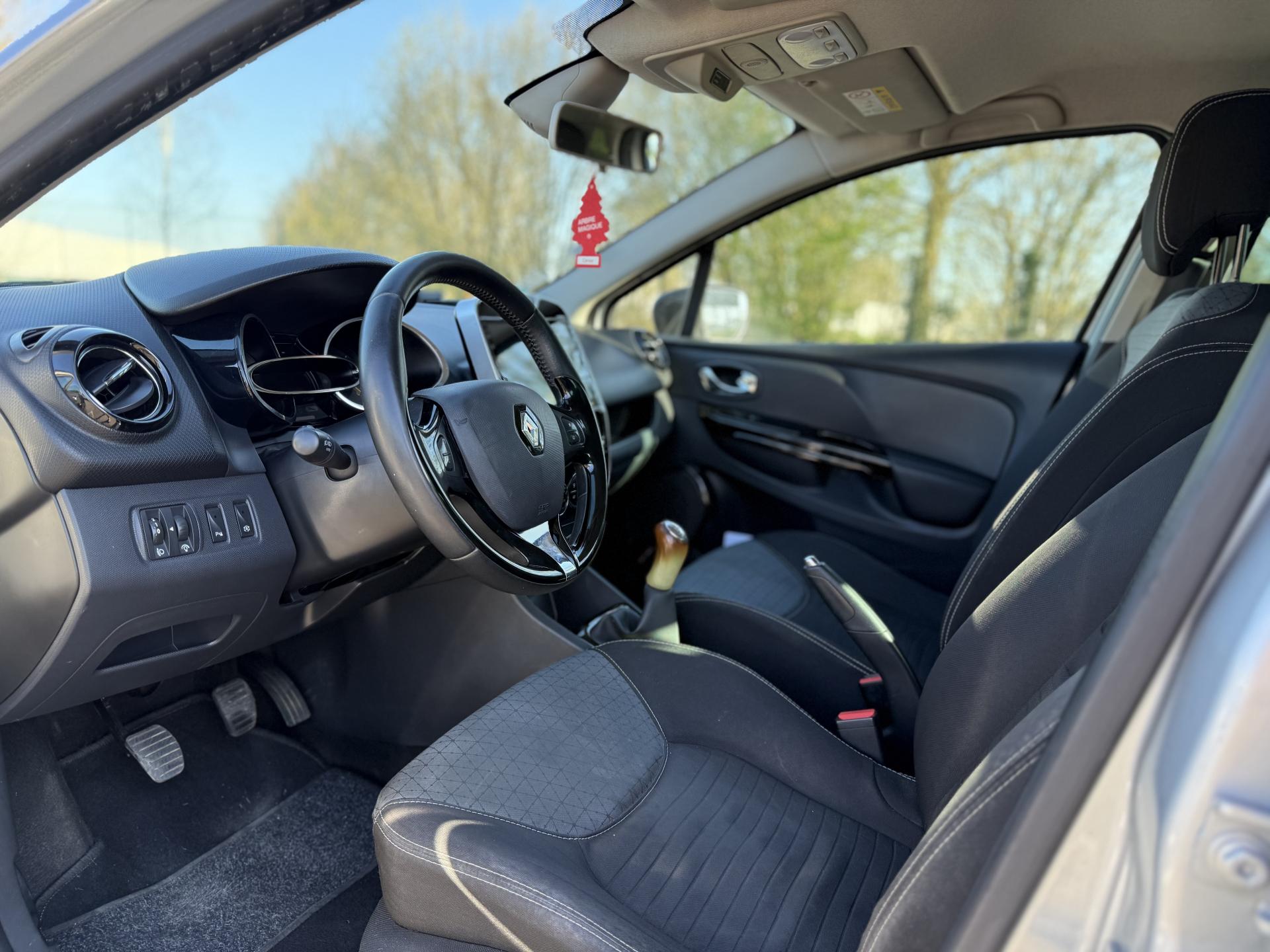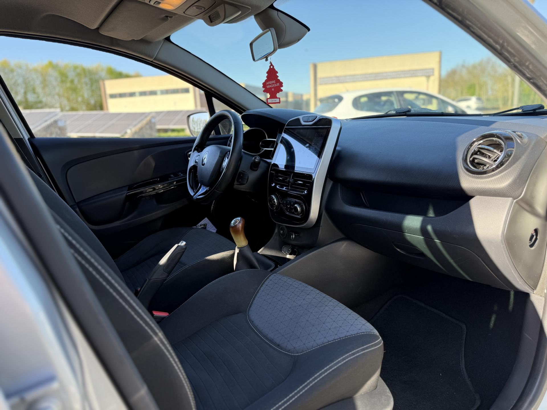 1 porte-gobelet central arrière2 appuie-tête avant réglable en hauteur2 porte-gobelets centraux jumelés3 appuis-tête arrière "virgule" réglables en hauteurABS avec aide au freinage d'urgenceAide au stationnement arrièreAirbag latéral tête-thorax conducteur et passager avantAirbags frontaux conducteur et passager (déconnectable côté passager)Alerte débouclage (SBR) conducteur et passager avant et 3 places passagers arrièreAssistance au démarrage en côteBadging Clio sous logo de face avantBanquette avec fonctionnalité 1/3 - 2/3Barreau supérieur de calandre noir grand brillant avec joncs chromeBecquet de hayon arrièreBoîte à gants fermable (volume 7 L)Bouclier avant et arrière ton carrosserieCarte de démarrage et d'ouverture / fermeture des portesCeinture centrale arrière à fixation au pavillon (3 points)Ceintures arrière 3 points à enrouleur avec limiteur d'effort aux places latéralesCeintures de sécurité conducteur et passager avant réglables en hauteur et avec limiteur d'effortClignotants gauche / droite avec fonction autoroute (impulsion)Commande d'ouverture de porte avant et arrière chrome brillantCommandes d'ouverture de portes extérieures arrière masquées dans montant de porteCondamnation centralisée à distanceCondamnation des ouvrants en roulantCoques de rétroviseurs ton caisseDéflecteurs latéraux noir grand brillantDépose minute ouverte côté passager avantDirection assistée électrique à assistance variableEclairage commandé par carte de démarrage ou ouverture / fermeture de porteEclairage du coffre (s'allume avec le plafonnier à l'ouverture d'un ouvrant)Ecran 7" tactile multifonction comprenant radio, audio-streaming et téléphonie mains-libres Bluetooth prises USB et jack en façadeEnjoliveur 16" design Fairway + logo chroméEnjoliveur de pied milieu noir matEntourage HP avant injectéEssuie-glace arrière avec déclenchement automatique en marche arrièreEssuie-vitre avant 2 vitesses à cadencement variable 5 positionsFeux de jour à LEDHarmonie Carbone très foncéIndicateur de changement de vitessesKit de gonflageLève-vitres électriques à l'avantMode de conduite ECOOrdinateur de bordPack MediaNavPare-soleil conducteur avec pochette et miroir de courtoisie (sans éclairage), avec occultantPare-soleil passager avec miroir de courtoisie occultablePoignées de maintien passager avant et arrière rabattablesProjecteurs antibrouillardProjecteurs double optique halogènesRangement côté conducteurRangement ouvert en bas de console centraleRangement sous plancher de coffre (85L)Rangements ouverts dans les portes avant et arrièreRecyclage de l'airRégulateur et limiteur de vitesseRépétiteur de clignotant sur rétroviseurs extérieursRétroviseurs extérieurs électriques dégivrants avec sonde de températureSellerie tissu carbone foncé et médaillons de porte tissu grisSiège conducteur réglable en hauteurSpot de lecture passager avantSystème anti sous-marinage (Fix4sure) aux sièges avant et arrièreSystème audio d'optimisation des basses Renault Bass ReflexSystème de contrôle de trajectoire (ESP) et système antipatinage (ASR)Système Isofix aux places latérales arrière et passager avantVitres arrière manuellesVolant gainé cuirVolant réglable en hauteur et en profondeurZone de vide-poche côté passager