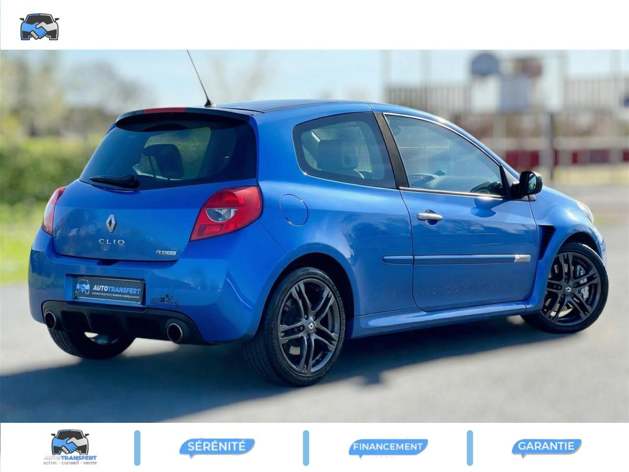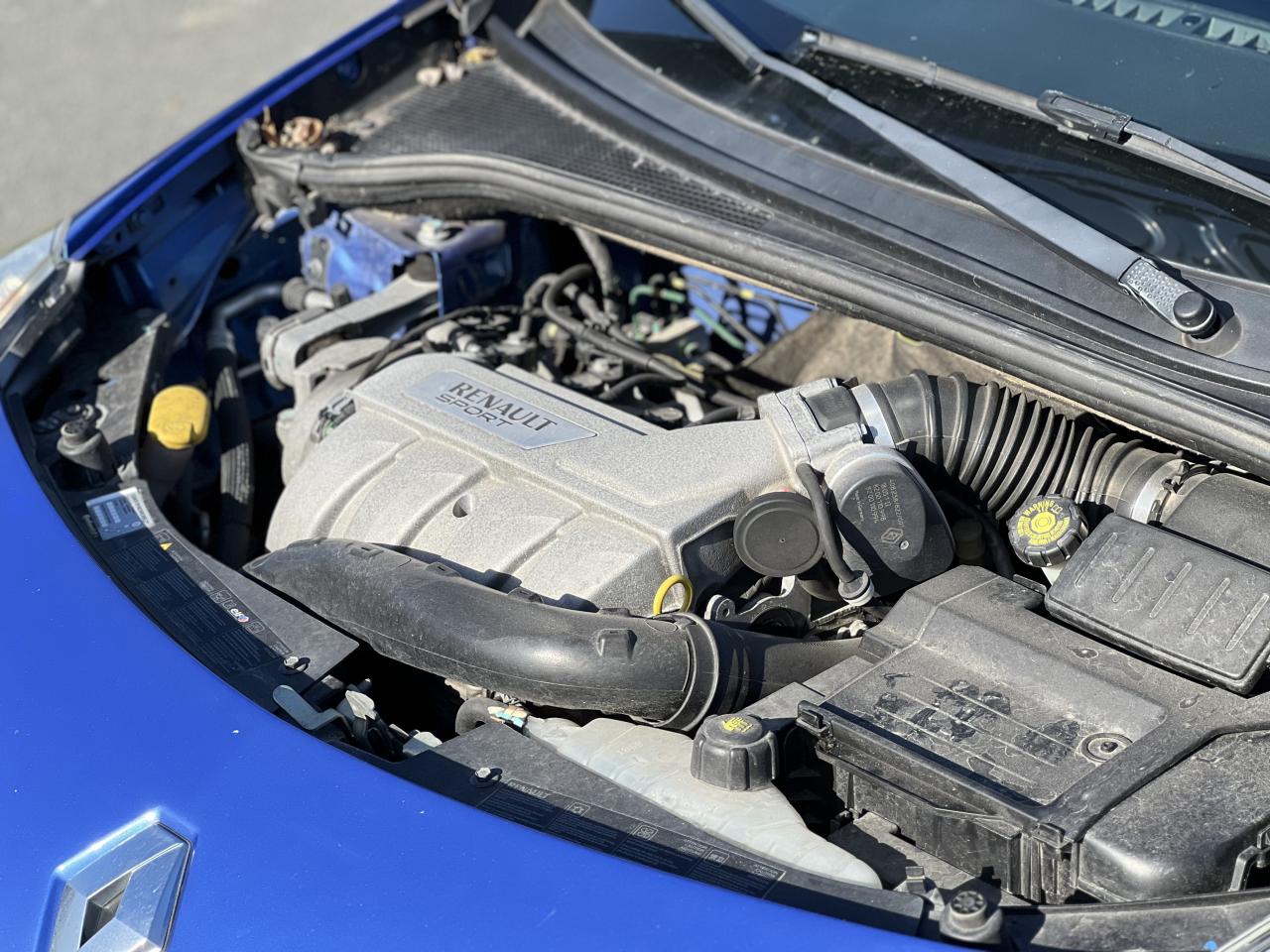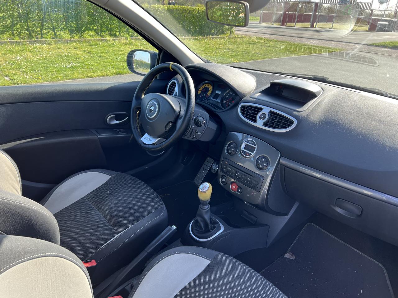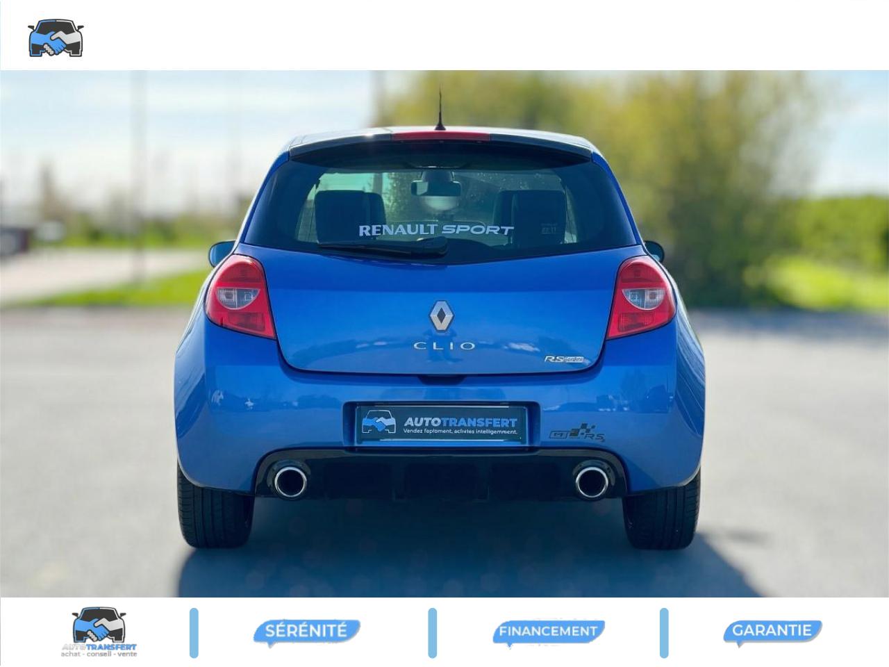 2 appuis-tête arrières « virgule » réglables en hauteur et vérouillables2 spots de lecture conducteur et passager avantABS avec Répartiteur Électronique de Freinage (EBV) sans Assistance au Freinage d'UrgenceAfficheur alphanumérique multifonctions : totaliseur Km, indicateur de maintenance, messages de conseils et d'alerteAfficheur central : date, heure, radioAfficheur température extérieureAirbag antiglissementAirbags frontaux auto-adaptatifs : conducteur (65 l) et passager (130 l)Airbags rideaux de tête avant et arrièreAppuis-tête avant réglables en hauteur « Nouvelle génération »Avertisseur d'oubli de bouclage ceinture conducteurBaguette de planche de bord jauneBandeau de bouclier noir brillantBoîte à gants (9,4 l) réfrigéréeCeinture de sécurité arrière : 3 points à enrouleurs sur les 2 places avec limiteur d'effortCeinture de sécurité avant réglable en hauteur : 3 points à enrouleurs avec prétensionneur et limiteur d'effort intégréChâssis CUP « Renault Sport » et étriers de freins avant rougeClé de décondamnation à distance à insert rabattableClimatisation manuelleCoiffe de planche avec visière intégrée - SlushCommande ouverture extérieure chrome satinéeCommande ouverture intérieure chrome satinéConsole centrale injectée : Carbone FoncéContrôle dynamqiue de trajectoire ESPCoquilles de rétroviseurs noir brillantDiffuseur arrière Noir BrillantDouble canules d'échappement chroméesEclairage de coffreEclairage intérieur temporiséEntourage d'aérateurs chrome satinéEssuie-glace arrière avec déclenchement automatique en marche arrièreFonctionnalité dossier arrière 1/3 2/3, assise fixeGarniture de bas de marche carbone foncé avec marquage Renault SportInhibition manuelle des airbags passager avantJantes alliage 17" AX-L Dark MétalKit de dépannage provisoire de pneumatiquesLève-vitres avant impulsionnel anti-pincement conducteur et éléctrique passagerOrdinateur de bord multifonctionsPatins de pédales en aluminium brosséPommeau de levier de vitesses en croûte de cuirProjecteurs à double optique masque noirProjecteurs antibrouillardProtections latérales : embout de baguette « chrome satiné » marqué « Renault Sport »Radiosat 80w CD MP3 avec prise RCARégulateur et limiteur de vitesseRétroviseurs extérieurs électriques et dégivrant, à miroir asphériqueRétroviseurs extérieurs électriques, dégivrants et rabattables électriquementSellerie Renault Sport jauneSpoiler lame F1 avant Noir BrillantStripping sur pied milieu noirSystème Isofix de siège enfant : aux places arrière latéralesSystème Isofix de siège enfant : sur place passager avantTableau de bord avec cadrans cerclés et fond du compte-tours jaune avec centre noir - aigulles rouges - chiffres blancs - afficheur centralVitres surteintées à l'arrièreVolant réglable en hauteurVolant Sport cuir carbone foncé avec surpiqûre fil gris et point milieu couture jaune