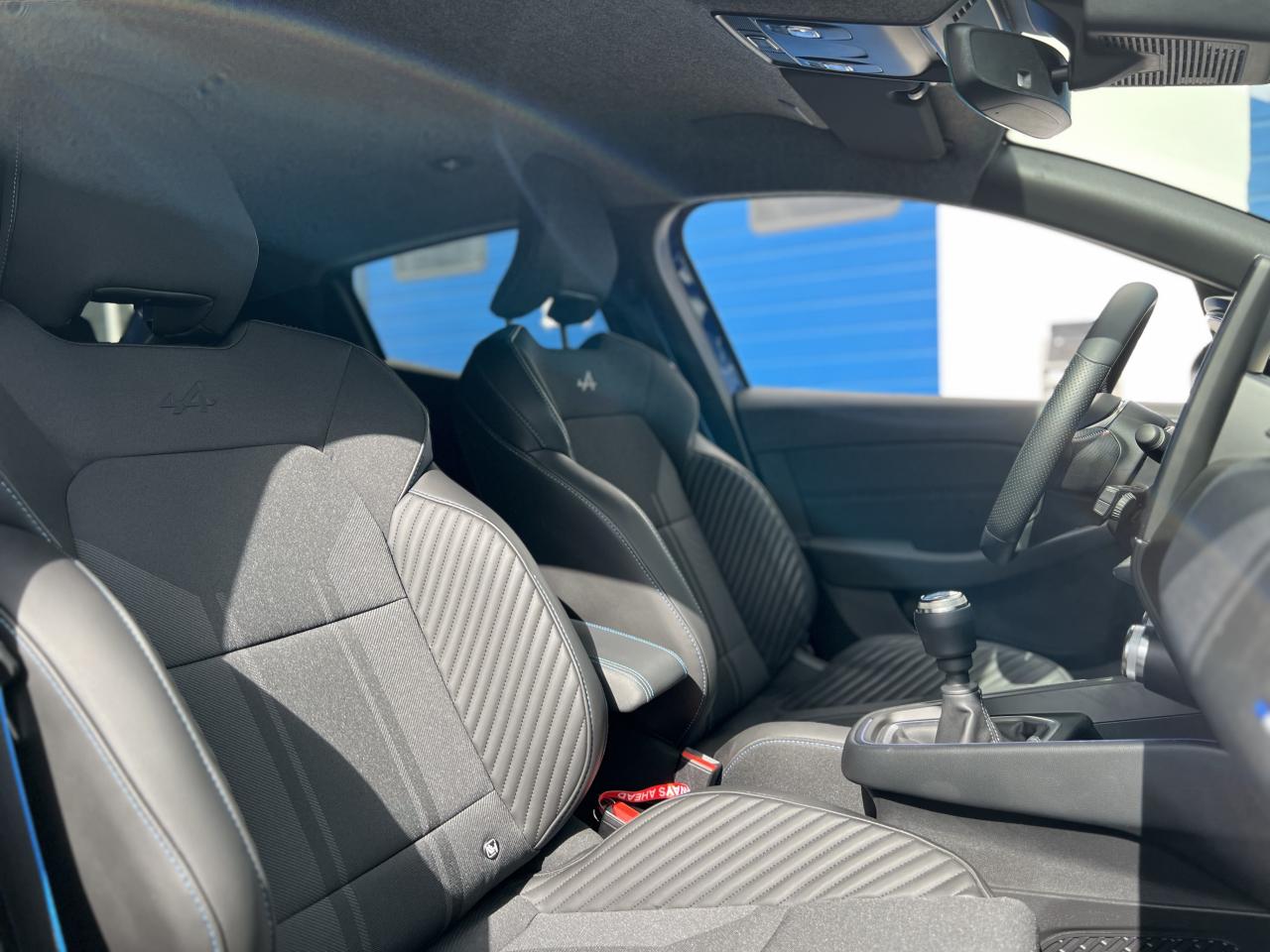 6 haut-parleursABS avec aide au freinage d'urgenceAccoudoir avant, coulissant - avec rangement fermé de 2,2 lAérateurs latéraux chrome satinéAide au démarrage en côteAide au parking avant et arrière avec indicateur sonore et visuelAirbags frontaux et latéraux à l'AVAirbags rideaux de têtes aux places avant et arrièreAlerte attention conducteurAlerte de franchissement de ligneAlerte distance de sécuritéAlerte oubli des ceintures de sécurité aux 5 places avec détection des occupantsAllumage automatique des essuie-glacesAllumage automatique des projecteursAntenne de type requin couleur noir brillantAppel d'Urgence RenaultAppuie-tête AV anti "coup du lapin"Appuis-têtes avant fin et 3 appuis-têtes arrière réglables en hauteurAssistance au maintien de voieAssistant de sortie de stationnement perpendiculaire en marche arrièreAvertisseur d'angles mortsBadges ice black sur les ailes avant et la porte de coffreBanquette arrière rabattable 40/60Bluetooth, 2 USB, 1 AUXBoîte à gants fermée, éclairage et refroidissement, avec abattant à ouverture douce (8,4 l)Bouclier avant sport lame F1 gris schiste satinCaméra de reculCanule d’échappement chromée ovaleCarte Renault avec accès et démarrage mains-libres avec fermeture à l’éloignementCeinture centrale arrière 3 points, avec prétensionneurCeintures de sécurité AV et latérales AR à prétensionneurs et limiteurs d'effortCeintures de sécurité avant réglables en hauteurChargeur de smartphone par inductionClimatisation automatiqueCoiffe de planche de bord en noir, avec matériau mousséCommutation automatique des feux de routeCompteur avec écran conducteur 10” personnalisableConsole centrale avant flottante, avec gainage en matériau softContrôle électronique de stabilité (ESC)Désactivation manuelle de l'airbag passagerDiffuseur arrière peint en gris schisteDirection assistée électrique variableEasy link 9,3” avec navigation : radio et navigation avec écran tactile 9,3” haute résolution, finition brillante antireflet (compatible avec Android Auto et Apple CarPlay)Eclairage intérieur avant et arrière avec 4 liseuses LEDEntourage de vitres latérales noir brillantEntourage levier de vitesses chromésFeux arrière à LED avec signature lumineuse en forme de C avec effet profondeurFeux de jour à LED intégrés aux projecteursFixation ISOFIX sur siège passager avantFixations Isofix aux places latérales arrièreFrein de parking assistéFreinage actif d’urgence, avec détection des voitures, motos, piétons, cyclistes (jour et nuit)Grille inférieure de calandre en nid-d’abeillesInserts décoratifs sur le volant à effet "chromé-satiné"Jantes alliage 17” «la flèche» (cabochon gris schiste/bleu selon couleur carrosserie)Joncs noirs grand brillant dans le bandeau supérieur de calandreJupe de bouclier arrière gris schiste satinKit de gonflage de pneumatiquesLecture des panneaux de signalisationLève-vitres arrière électriques impulsionnelsLimiteur de vitesseLogo Renault ice black, avec bandeau supérieur de calandre noir brillantLogo sur le volantMode ECO avec bouton d'activationMontants latéraux en noir brillantOrnements latéraux chromésPack Ambiance Esprit AlpinePlancher de coffre mobilePoignées arrière intégrées noir brillantPoignées de porte avant couleur carrosseriePommeau de levier de vitesse revêtu textile enduit grainé noirPrévention survitesseProjecteurs avant 100% à LED Performance éclairage Renault LED pure vision avec faisceau allongé et élargiProtections inférieures des portes gris schisteRéception radio numérique (DAB+ et traditionnels FM/AM)Régulateur de vitesse adaptatif avec fonction Stop & GoRenault MULTI-SENSE, personnalisation des modes de conduites et ambiance intérieures (3 mode pré-définis: MY SENSE, ECO, SPORT)Rétroviseur intérieur électrochrome sans contourRétroviseurs extérieur rabattables automatiquementRétroviseurs extérieurs couleur noirRétroviseurs extérieurs électriques et dégivrantsSellerie en tissu noir, surpiqûres bleues, et broderie en forme de A sur le dossier et étiquette drapeau françaisService Auto-Update - 3 ans inclusServices de navigation connectée - 3 ans inclusSiège conducteur avec réglage en hauteurSièges avant esprit Alpine, avec soutiens latéraux augmentés, logo Alpine et étiquette bleu/blanc/rougeSystème d'appel en cas de panne : B-CallSystème de surveillance de pression des pneusVéhicule connecté 4G avec pack de données inclus pendant 3 ansVitres avant électriques avec descente et remontée à impulsionVitres latérales et lunette arrière surteintéesVolant multifonctionVolant réglable en hauteur et en profondeurVolant textile enduit grainé fraganza perforé, signature esprit Alpine, surpiqûres bleu, blanc, rouge