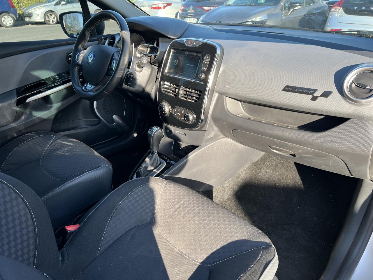 1 porte-gobelet central arrière2 appuis-tête avant réglables en hauteur avec marquage GT2 porte-gobelets centraux jumelés3 appuis-tête arrière "virgule" réglables en hauteurABS avec aide au freinage d'urgenceAirbag latéral tête-thorax conducteur et passager avantAirbags frontaux conducteur et passager (déconnectable côté passager)Alerte débouclage (SBR) conducteur et passager avant et 3 places passagers arrièreAllumage automatique des projecteursAssistance au démarrage en côteBadging GT sous logo de face avantBanquette avec fonctionnalité 1/3 - 2/3Barreau supérieur de calandre noir grand brillant sans joncs chromeBas de caisse spécifique (bavolets)Becquet de hayon arrièreBoîte à gants fermable (volume 7 L)Bouclier avant sport ton carrosserie, bouclier arrière avec badging Renault SportBouton sur volant pour commande vocaleCarte Renault, accès et démarrage « mains-libres »Ceinture centrale arrière à fixation au pavillon (3 points)Ceintures arrière 3 points à enrouleur avec limiteur d'effort aux places latéralesCeintures de sécurité conducteur et passager avant réglables en hauteur et avec limiteur d'effortChâssis “Sport”Clignotants gauche / droite avec fonction autoroute (impulsion)Climatisation régulée avec filtre combiné pollen / charbon actifCommande d'ouverture de porte avant et arrière chrome brillantCommandes d'ouverture de portes extérieures arrière masquées dans montant de porteCompteur spécifique GT avec marquage Renault Sport, aiguilles d'instrumentation rougeCondamnation centralisée à distanceCondamnation des ouvrants en roulantCoques de rétroviseurs Dark MetalDécor extérieur GT : jupe de bouclier arrière, joncs de protection inférieure latérale de porte et jonc de hayon Dark MetalDécor intérieur Dark MetalDépose minute ouverte côté passager avantDirection assistée électrique à assistance variableDouble canule chroméeEclairage commandé par carte de démarrage ou ouverture / fermeture de porteEclairage du coffre (s'allume avec le plafonnier à l'ouverture d'un ouvrant)Enjoliveur de pied milieu noir brillantEntourage HP avant injecté Dark Metal avec inscription Bass ReflexEssuie-glace à déclenchement automatiqueEssuie-glace arrière avec déclenchement automatique en marche arrièreFeux de jour à LED déportés, avec allumage permanentHarmonie Carbone très foncéIndicateur de changement de vitesse spécifique GT avec mode sportIndicateur de style de conduite 3 couleurs (vert, jaune, ambre)Jantes 17" GT Dark MetalLève-vitres électriquesLève-vitres électriques, impulsionnel côté conducteurLevier de vitesse spécifique en cuir, avec surpiqûre gris technique et vignette Dark MetalOrdinateur de bordPack Renault R-LinkPare-soleil conducteur avec pochette et miroir de courtoisie (sans éclairage), avec occultantPare-soleil passager avec miroir de courtoisie occultablePatins de pédales et seuils de porte avec marquage Renault Sport en aluminiumPlanche de bord gris pailleté avec badging Renault SportPoignées de maintien passager avant et arrière rabattablesPrise 12VProjecteurs double optique halogènesR.S. drive (3 modes : normal, sport, race)Rangement côté conducteurRangement ouvert en bas de console centraleRangement sous plancher de coffre (85L)Rangements ouverts dans les portes avant et arrièreRecyclage de l'airRégulateur et limiteur de vitesseRétroviseurs extérieurs électriques dégivrants avec sonde de température, rabattables électriquementRoue de secoursSiège conducteur réglable en hauteurSièges avant Sport, sellerie tissu matelassé et médaillons de porte tissu gris pailleté avec sérigraphie GTSpot de lecture passager avantSystème anti sous-marinage (Fix4sure) aux sièges avant et arrièreSystème audio d'optimisation des basses Renault Bass ReflexSystème de contrôle de trajectoire (ESP) et système antipatinage (ASR)Système Isofix aux places latérales arrière et passager avantVitres arrières surteintéesVolant réglable en hauteur et en profondeurVolant spécifique GT cuir et palettes de passage de vitesses gris techniqueZone de vide-poche côté passager