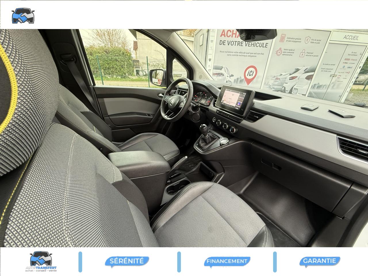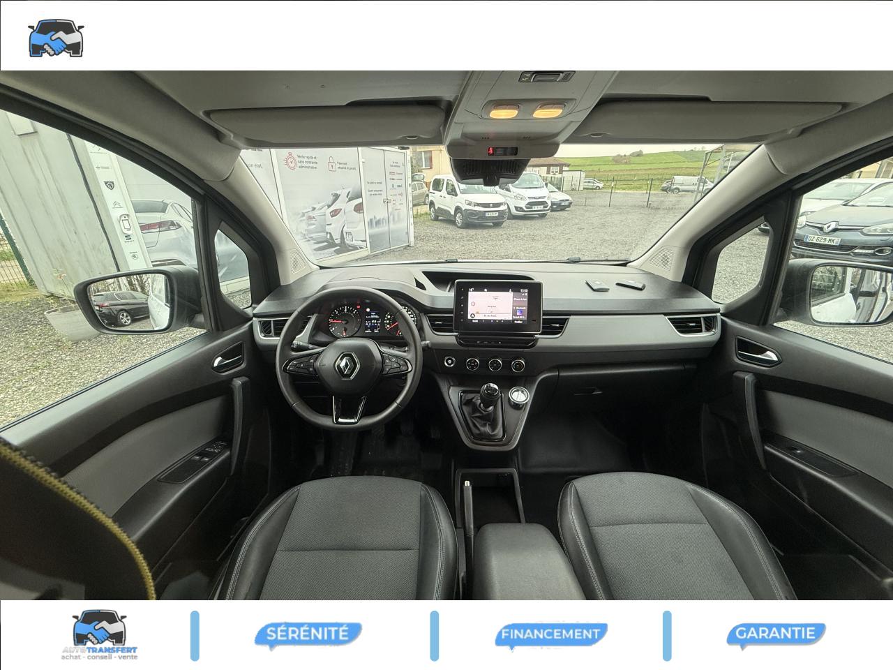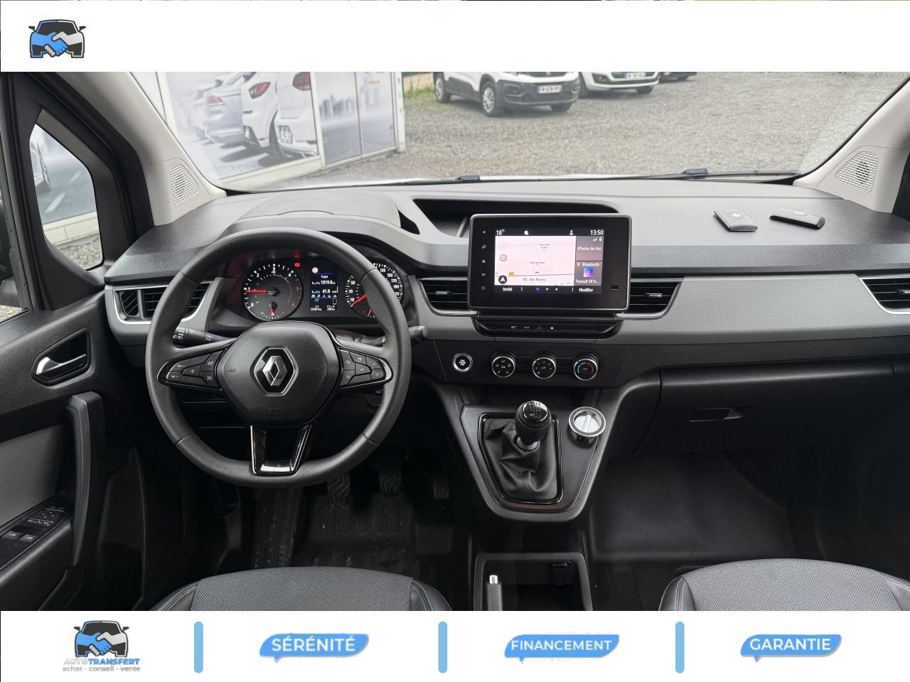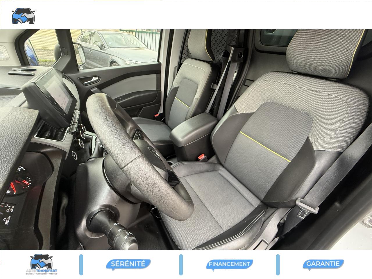 2 USB et 1 prise 12 V dans rangement au dessus du volant6 anneaux d’arrimage rotatifs au solAide au démarrage en côteAide au stationnement arrièreAirbag frontal conducteurAirbags rideauxBluetoothBoucliers avant/arrière noir grainéClé rétractable 3 boutonsCondamnation automatique des ouvrants en roulantConnexions Apple CarPlay et Android AutoContrôle de stabilité de l'attelageContrôle dynamique de trajectoire (ESP)Eclairage LED de la zone de chargementEnjoliveur Carten 16"Essuie-glaces avant automatique avec détecteur de pluie et allumage automatique des feuxFermeture centralisée à distanceFeux de jour LED C-ShapeFonction appel d'urgenceHarmonie planche de bord noir titaneLève-vitres avant électriques, impulsionnel côté conducteurPack ConfortPack Easy LinkPack Easy ParkPanneau latéral gauche tôléPorte latérale droite coulissante tôléePortes arrière tôlées ouvrant à 180°Prise 12 V dans l'espace de chargementPrise USB en façadeProjecteurs Full LEDProtections latérales Noir grainéRégulateur et limiteur de vitesseRétroviseurs extérieurs électriques et dégivrantsRétroviseurs extérieurs noir grainéRétroviseurs extérieurs rabattables électriquementRoue de secoursRoues tôlées 16"Sellerie tissu INTISésame ouvre-toi par RENAULT (pas de montant vertical entre les portes passager et latérale pour une largeur de chargement jusqu’à 1,45 m) avec cloison pivotante grillagée et siège passager escamotable en plancher platSiège conducteur réglage lombaireSiège passager rabattable et repliable formant plancher platSmartphone RéplicationTapis de sol en caoutchouc pour l'habitacleTiroir Easy Life coulissantVoyant d‘alerte et alarme sonore de bouclage de ceinture conducteur