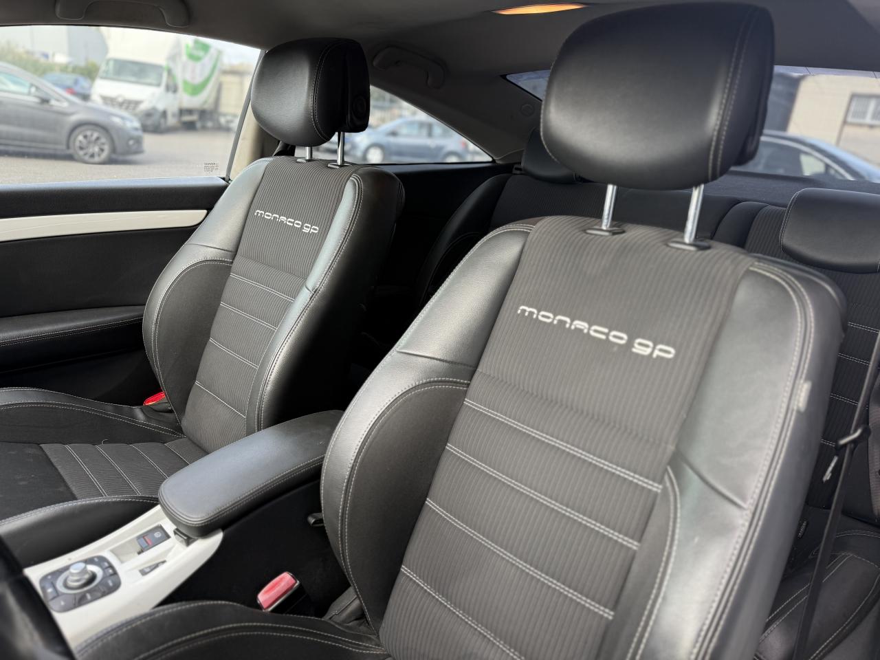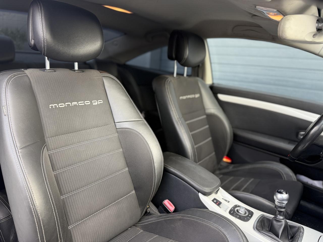 2 ceintures arrière 3 points + limiteur d'effort et prétentionneurs6 Airbags : conducteur et passager adaptatif, latéral thorax / bassin avant, airbags rideaux avant et arrièreAttelage remorqueFrein de parking électromécaniqueRadar de stationnement arrièreAide au parking arrière avec indicateur sonore et visuelBadges extérieurs Monaco GPBanquette arrière rabattable 1/3 - 2/3 avec système Easybreak (poignées de commande dans le coffre)Bornier audio numérique "Plug & Music" (prises USB + jack)Carte Renault à télécommandeCeintures de sécurité avant, limiteur d'effort et double prétensionneursCerclage chromé des vitres latéralesClimatisation régulée bi-zone (3 programmes : Soft, Auto, Fast)Condamnation des ouvrants en roulantConsole centrale avec bac de rangement sous l'accoudoirCoques de rétroviseurs extérieurs et toit noir nacréDécondamnation automatique en cas de chocDécors intérieurs, blanc nacréDésactivation manuelle de l'airbag passager avantESP + ABS + AFU (assistance au freinage d'urgence)Essuie-glaces avant automatique avec détecteur de pluie et allumage automatique des feuxFeux arrière avec signature lumineuse à LEDFeux de jour à LEDFrein de parking assistéGrille de calandre aluminiumJantes alliage 18"Lève-vitres avant à impulsion avec anti-pincementPédalier en aluminiumPeinture métalliséePommeau de levier de vitesses en aluminiumPrise accessoires 12 V à l'arrière de la console centraleProjecteurs bi-xénon avec lave-projecteursRadio CD mp3 avec spatialisation «3D Sound by Arkamys», connectivité Bluetooth, double antenne, 8HP et commandes au volantRégulateur et limiteur de vitesseRenault R-Link : système multimédia connecté, avec écran 7". Navigation TomTom avec cartographie FranceRétroviseurs extérieurs à réglages électriques (asphérique côté conducteur), dégivrantsSellerie mixte, tissu noir avec signature Monaco GPSièges avant à réglages manuels : réglage longitudinal, hauteur, inclinaison du dossier et lombaire côté conducteurSièges avant sport, avec maintien latéral renforcéTéléphonie mains libres BluetoothTémoin de bouclage/débouclage des ceintures arrièreVolant réglable en hauteur et en profondeur