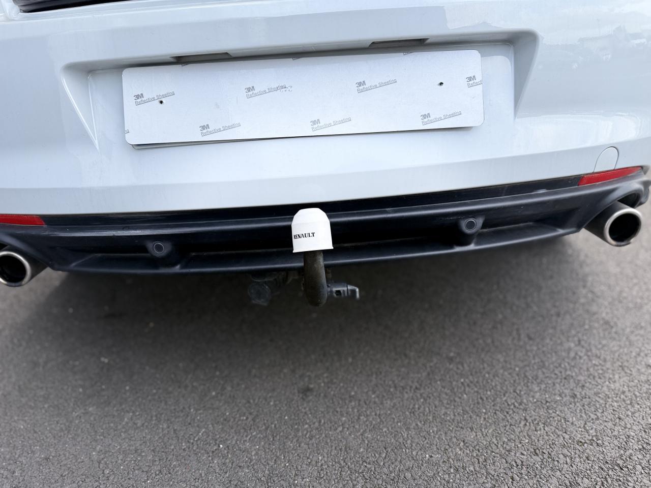 2 ceintures arrière 3 points + limiteur d'effort et prétentionneurs6 Airbags : conducteur et passager adaptatif, latéral thorax / bassin avant, airbags rideaux avant et arrièreAttelage remorqueFrein de parking électromécaniqueRadar de stationnement arrièreAide au parking arrière avec indicateur sonore et visuelBadges extérieurs Monaco GPBanquette arrière rabattable 1/3 - 2/3 avec système Easybreak (poignées de commande dans le coffre)Bornier audio numérique "Plug & Music" (prises USB + jack)Carte Renault à télécommandeCeintures de sécurité avant, limiteur d'effort et double prétensionneursCerclage chromé des vitres latéralesClimatisation régulée bi-zone (3 programmes : Soft, Auto, Fast)Condamnation des ouvrants en roulantConsole centrale avec bac de rangement sous l'accoudoirCoques de rétroviseurs extérieurs et toit noir nacréDécondamnation automatique en cas de chocDécors intérieurs, blanc nacréDésactivation manuelle de l'airbag passager avantESP + ABS + AFU (assistance au freinage d'urgence)Essuie-glaces avant automatique avec détecteur de pluie et allumage automatique des feuxFeux arrière avec signature lumineuse à LEDFeux de jour à LEDFrein de parking assistéGrille de calandre aluminiumJantes alliage 18"Lève-vitres avant à impulsion avec anti-pincementPédalier en aluminiumPeinture métalliséePommeau de levier de vitesses en aluminiumPrise accessoires 12 V à l'arrière de la console centraleProjecteurs bi-xénon avec lave-projecteursRadio CD mp3 avec spatialisation «3D Sound by Arkamys», connectivité Bluetooth, double antenne, 8HP et commandes au volantRégulateur et limiteur de vitesseRenault R-Link : système multimédia connecté, avec écran 7". Navigation TomTom avec cartographie FranceRétroviseurs extérieurs à réglages électriques (asphérique côté conducteur), dégivrantsSellerie mixte, tissu noir avec signature Monaco GPSièges avant à réglages manuels : réglage longitudinal, hauteur, inclinaison du dossier et lombaire côté conducteurSièges avant sport, avec maintien latéral renforcéTéléphonie mains libres BluetoothTémoin de bouclage/débouclage des ceintures arrièreVolant réglable en hauteur et en profondeur