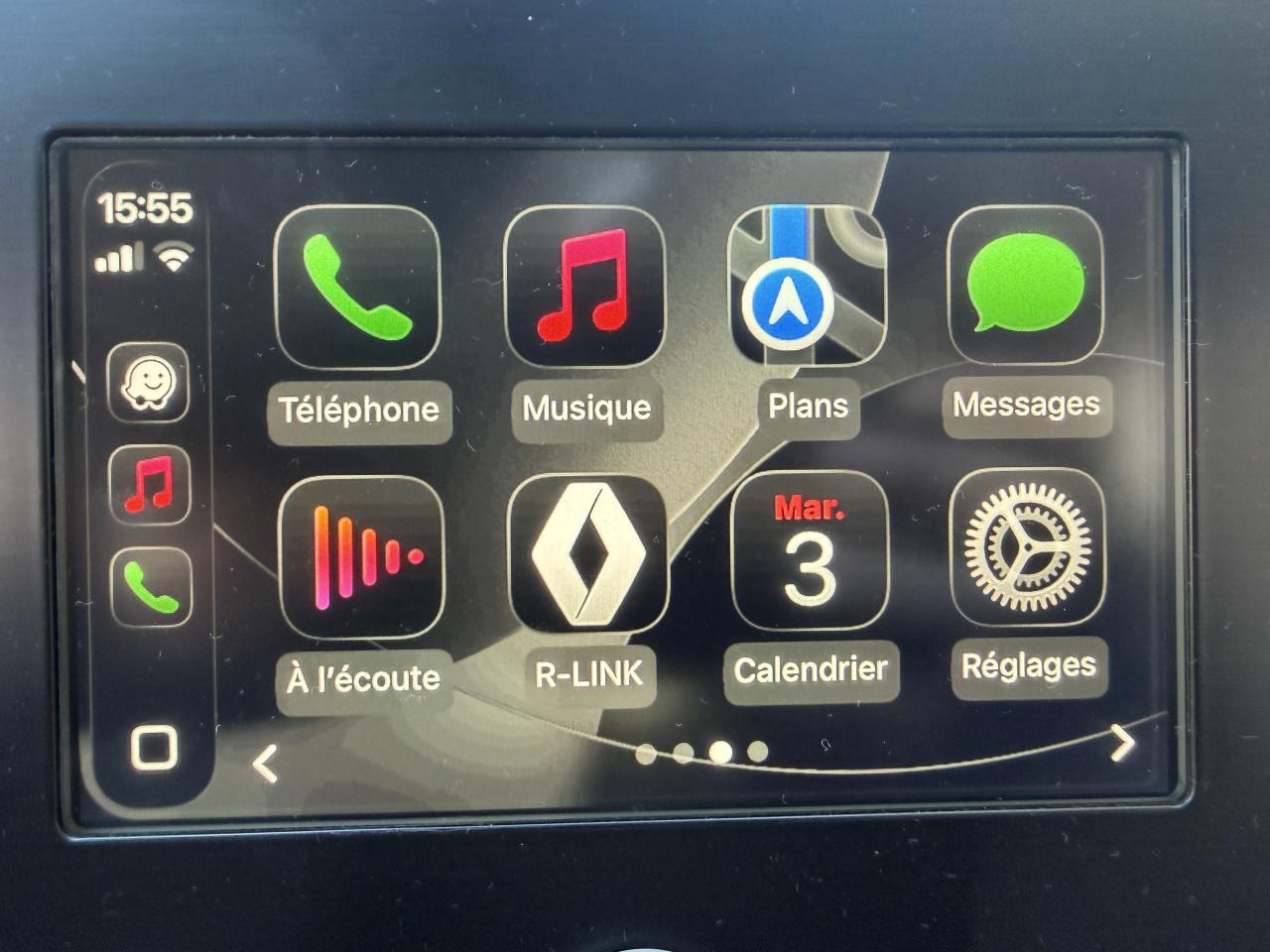 ABS avec aide au freinage d'urgenceAide au stationnement arrièreAirbags frontaux conducteur et passager adaptatifs (airbag passager déconnectable)Airbags latéraux (thorax / bassin) avantAirbags rideaux de têtes aux places avant et arrièreCarte Renault avec accès et démarrage mains-libres avec fermeture à l’éloignementClimatisation automatique bi-zoneCompatibilité Apple CarPlay et Android AutoCondamnation automatique des ouvrants en roulantCondamnation centralisée des portesContrôle dynamique de trajectoire (ESC)Feux de jour à guide de lumière LED et effet 3DFeux de jour arrière LED 3D Edge LightHarmonie intérieure carbone foncéKit de réparation des pneusLève vitres avant électriques à impulsionPoignées de portes extérieures avec jonc chroméProjecteurs antibrouillardRégulateur et limiteur de vitesseRétroviseurs extérieurs électriques et dégivrantsRétroviseurs extérieurs rabattables électriquementSiège conducteur avec réglage lombaireVolant multifonctionVolant réglable en hauteur et en profondeur