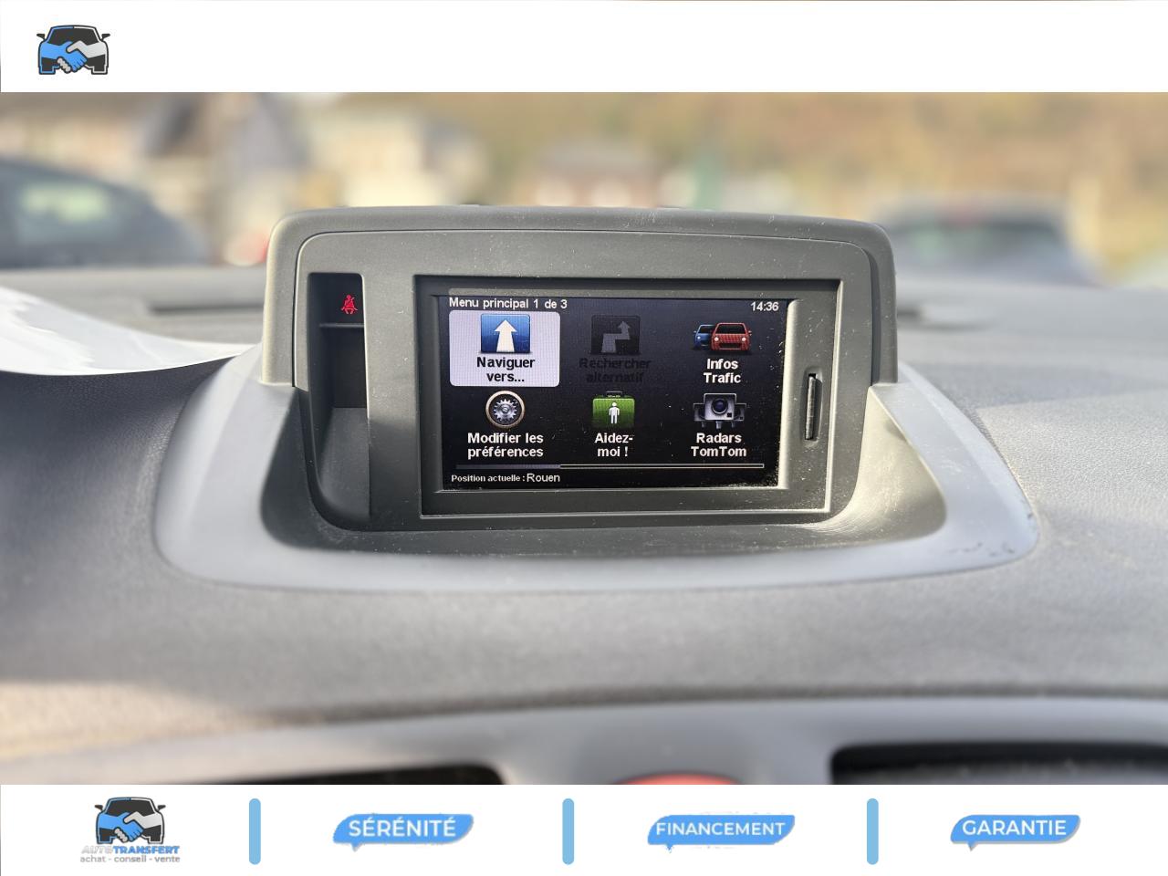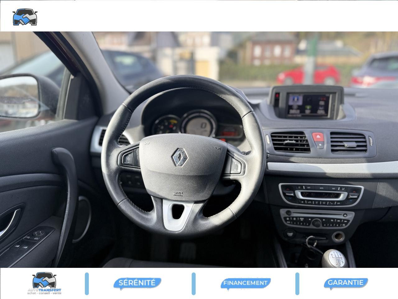3 appuie-tête arrière réglables en hauteur3 ceintures de sécurité arrière 3 points avec limiteur d'effortABS avec aide au freinage d'urgenceAide au stationnement arrièreAirbag frontal conducteur auto-adaptatifAirbag frontal passager auto-adaptatif (déconnectable)Airbags anti-sous marinage dans assises conducteur et passager avantAirbags latéraux (thorax / bassin) avantAirbags rideaux avant et arrièreAllumage automatique des feux de détresseAllumage automatique des projecteursAppuis-tête avant anti "coup du lapin" réglables en hauteur et réglage confortBanquette arrière rabattable 1/3-2/3Carte Renault, accès et démarrage « mains-libres »Ceintures de sécurité avant 3 points avec double prétensionneurs et limiteurs d'effortClimatisation automatique bi-zoneCondamnation automatique des ouvrants en roulantConsole centrale avant avec accoudoirContrôle dynamique de trajectoire (ESP)Direction à assistance variable électriqueEclairage d'extérieur d' accompagnementEclaireurs de cave et sol avantEssuie-glace à déclenchement automatiqueEssuie-glace arrière avec déclenchement automatique en marche arrièreFiltre combiné odeurs - particulesIndicateur de température d'extérieureJantes alliage 17''Kit de regonflage + aménagement du coffreKit fumeurLève-vitres avant électriques à impulsion avec dispositif anti-pincementOrdinateur de bordPare-soleil avec miroirs de courtoisie conducteur et passagerPoches aumônières au dos des sièges avantPoignées extérieures chroméesPoignées intérieures des portes chroméesPrise 12 volts pour passagers arrièreProjecteurs antibrouillardProjecteurs double optique halogènesRadioSat « 3D Sound By Arkamys » CD MP3 Bluetooth, bornier audio intégré en planche de bordRecyclage de l'airRéglage lombaire du siège conducteurRégulateur et limiteur de vitesseRétroviseurs extérieurs couleur carrosserieRétroviseurs extérieurs électriques et dégivrantsSellerie Ted carbone foncé + surpiqûresSiège conducteur réglable en hauteurSiège passager réglable en hauteurSpots de lecture conducteur et passagerSystème "easy entry"Système d'antidémarrage électronique codéSystème de fixation Isofix sur places latérales arrièreTémoins lumineux et sonore d'oubli de ceintures avantTrappes de rangement sous pieds avantVitres et lunette arrière sur-teintéesVolant réglable en hauteur et en profondeur