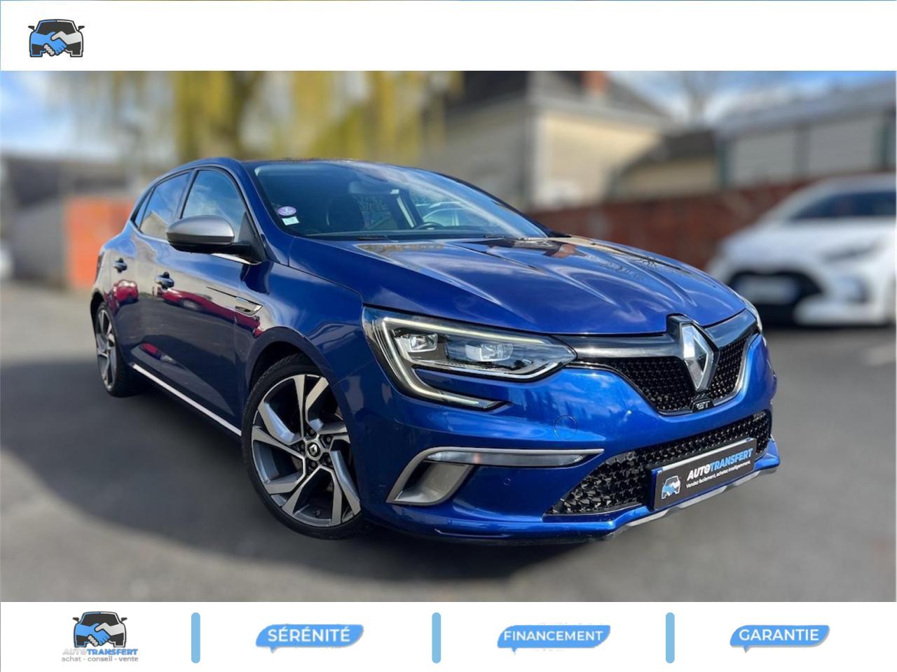 ABS avec aide au freinage d'urgenceAide au démarrage en côteAide au stationnement arrièreAirbags frontaux conducteur et passager adaptatifs (airbag passager déconnectable)Airbags latéraux (thorax / bassin) avantAirbags rideaux de têtes aux places avant et arrièreAlerte de franchissement de ligneAlerte de survitesse avec reconnaissance des panneaux de signalisationBanquette arrière rabattable 1/3-2/3Bouclier avant spécifique avec écopes intégrées et entrée d'air élargie (sans antibrouillard)Bouton d'activation RS DriveCapteur de toxicité avec recyclage d'airCarte Renault avec accès et démarrage mains-libres avec fermeture à l’éloignementChâssis et suspensions Renault Sport TechnologiesClimatisation automatique bi-zoneCommutation automatique des feux de croisement et de route, Light AssistCompteur digital TFT 7“ avec matrice couleurCondamnation automatique des ouvrants en roulantCondamnation centralisée des portesConsole centrale avec accoudoir et compartiment de rangementContrôle dynamique de trajectoire (ESC)Détecteur de pluie et allumage automatique des projecteursDouble canules d'échappement intégrées au diffuseurEclairage d‘ambiance sur les panneaux de portes avant et arrièreEclairage plafonnier avant et arrière à LEDFeux de jour à guide de lumière LED et effet 3DFeux de jour arrière LED 3D Edge LightFrein de parking assistéGrille de calandre nid d'abeilles noire avec badge GTJantes alliage 18“ Magny-CoursKit de réparation des pneusLécheurs de vitres chromésLève vitres avant électriques à impulsionLève-vitres arrière électriques impulsionnelsMultichange down (système de rétrogradage avancé)Pack CityPack R-Link 2Pack SécuritéPalettes au volant en aluminiumPoignées de porte avec jonc chroméPrise 12 V à l'arrièrePrise 12V à l'avantProgramme Eco-modeProjecteurs avant Full Led Pure VisionRégulateur et limiteur de vitesseRenault Multi-SenseRépétiteurs de clignotant à LED intégrés aux rétroviseursRétroviseur intérieur électrochromeRétroviseurs Dark MetalRétroviseurs extérieurs électriques et dégivrantsSellerie alcantara GT noire & surpiqûres bleuesSéquence d‘accueil à l‘approche du véhicule avec éclairage de signature lumineuse et éclairage de solSeuils de portes chromésSiège conducteur avec réglage lombaireSiège conducteur réglable en hauteurSiège passager réglable en hauteurSièges avant chauffantsSièges sport GT avec appuis-têtes intégrésSignature latérale et arrière GT/Renault SportSystème 4-control (Chassis à 4 roues directrices)Système de fixations ISOFIX aux 2 places latérales arrièreSystème de freinage spécifique GTSystème de Launch Control (Aide aux départs arrêtés)Système de surveillance de pression des pneusVitres latérales et lunette arrière surteintéesVolant et pommeau de levier de vitesse en cuir Nappa perforé GTVolant réglable en hauteur et en profondeur