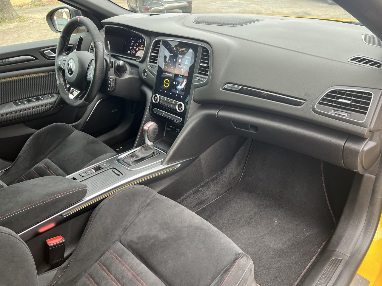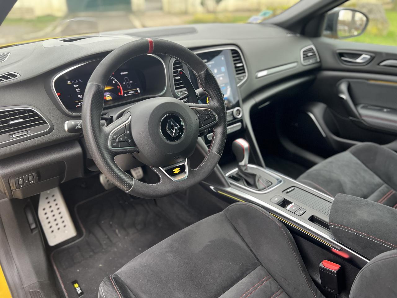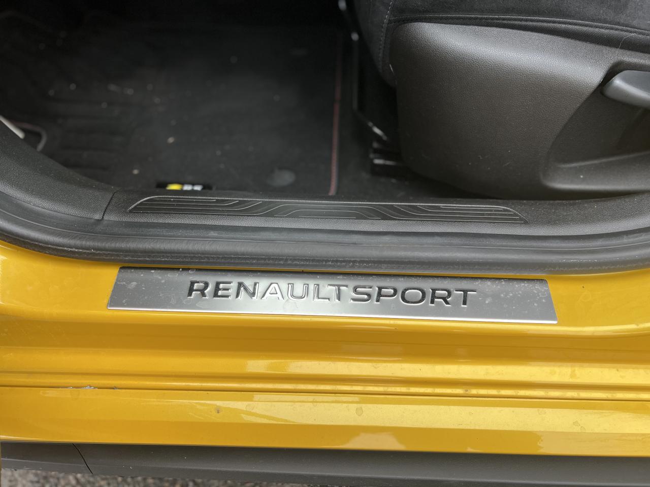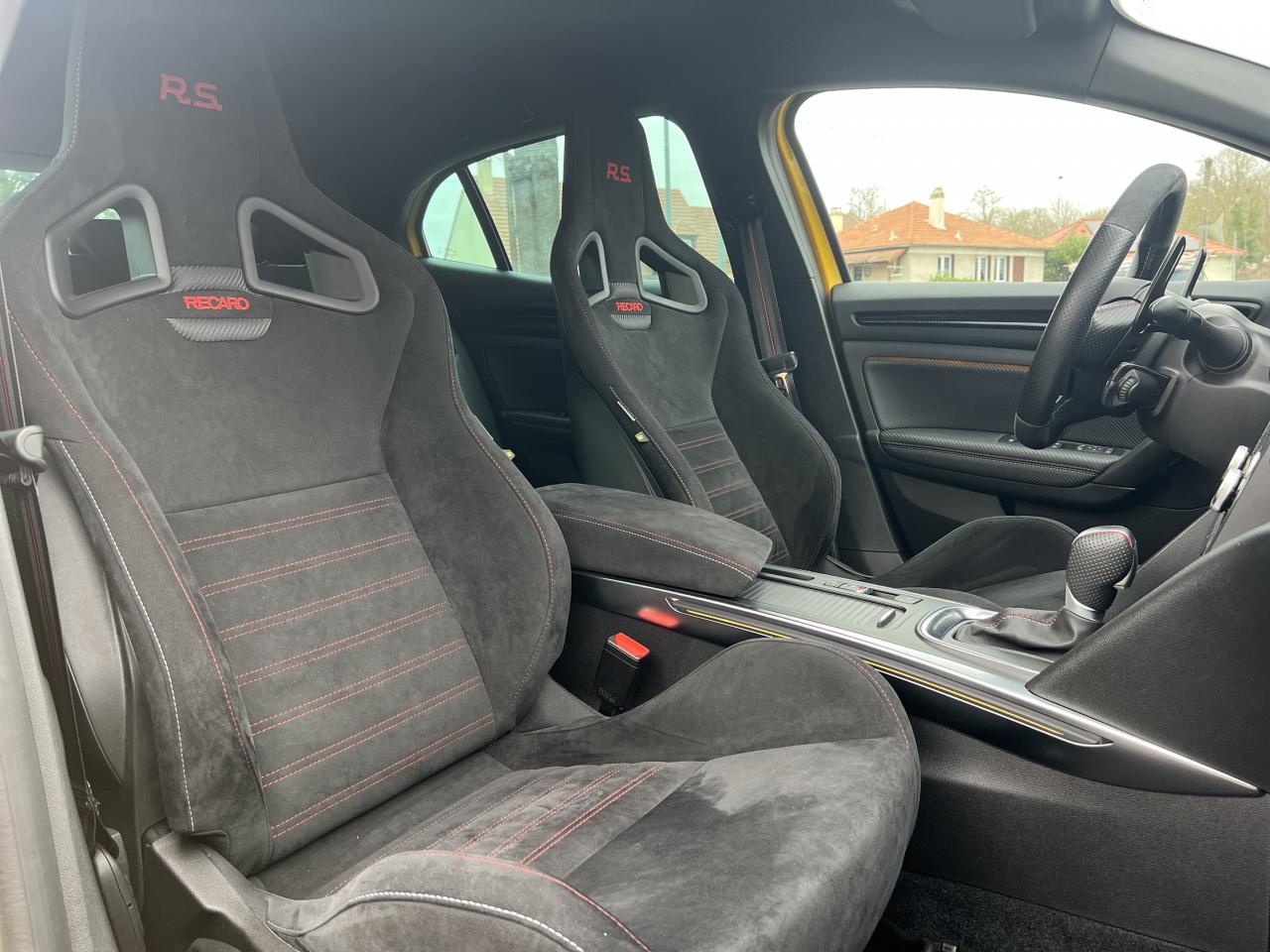 ABS avec aide au freinage d'urgenceAccoudoirs TEP Carbone avec surpiqûres Gris Argent et RougeAffichage tête hauteAide au démarrage en côteAide au parking avantAide au stationnement arrièreAide au stationnement latéralAiles avant et arrière élargies R.SAirbags frontaux conducteur et passager adaptatifs (airbag passager déconnectable)Airbags latéraux (thorax / bassin) avantAirbags rideaux de têtes aux places avant et arrièreAlerte de franchissement de ligneAlerte de survitesse avec reconnaissance des panneaux de signalisationAlerte Distance SécuritéAnimations chromes satinéesAntenne aileron de requin noireAppel d'Urgence RenaultAppuis-têtes intégrés sportBadge spécifique R.S.Bavolet souligné d’une lame noireBecquet arrièreBoîte à gants éclairéeBose Sound SystemBouclier arrière spécifique élargi avec diffuseur fonctionnel et échappement centralCaméra de reculCapteur de toxicité avec recyclage d'airCarte Renault avec accès et démarrage mains-libres avec fermeture à l’éloignementChâssis CupClimatisation automatique bi-zoneCompatibilité Apple CarPlay et Android AutoCompteur avec écran conducteur 10” personnalisableCondamnation automatique des ouvrants en roulantCondamnation électrique des vitres arrière depuis le poste de conduiteCoques de rétroviseurs noir étoiléDétecteur de fatigue du conducteurDétecteur de pluie et allumage automatique des projecteursDifférentiel à glissement limitéDisques de frein bi-matièreDouble-canules d’échappement peintes Gun metal greyEclairage d‘ambiance sur les panneaux de portes avant et arrièreEclairage plafonnier avant et arrière à LEDEtriers de freins rouges siglés BremboExtracteurs d’air à l’arrière des roues avantFeux clignotants arrière dynamiques LEDFeux de jour à guide de lumière LED et effet 3DFeux de jour arrière LED 3D Edge LightFeux de jour avant à LED avec signature lumineuse en forme de CFrein de parking assistéFreinage actif d’urgence avec détection piétonsGrille de calandre spécifiqueInsert carbone sur la planche de bord et les panneaux de porteJantes 19” R.S. Triple ton JerezKit de gonflageKit de réparation des pneusLame F1 spécifiqueLécheurs de vitres chromésLève vitres avant électriques à impulsionLève-vitres arrière à impulsion avec fonction anti-pincementLogo « double-diamant » sur le volantLunette arrière chauffanteMarquage Trophy sur lame F1Multichange down (système de rétrogradage avancé)Palettes au volantPare-brise feuilleté teintéPare-soleil avec miroirs de courtoisie éclairés, conducteur et passager avantPédalier et repose-pied aluminiumPeinture Blanc GlacierPoignées de portes extérieures avec jonc chroméPoignées de portes ton caissePré-équipement alarmePrise 12 V à l'arrièrePrise 12V à l'avantProjecteurs avant Full Led Pure VisionRégulateur et limiteur de vitesseRenault EASY LINK : système multimédia connecté avec tablette tactile 9,3”, navigation embarquée avec cartographie europe, connectivité Bluetooth, radio DAB, commande vocaleRenault Multi-SenseRépétiteurs de clignotant à LED intégrés aux rétroviseursRétroviseurs extérieurs électriques et dégivrantsRétroviseurs rabattables électriquementSellerie AlcantaraSéquence d‘accueil à l‘ouverture du véhicule avec éclairage de signature lumineuseSeuils de portes avant Inox avec marquage Renault SportSiège conducteur avec réglage lombaireSiège conducteur réglable en hauteurSiège passager réglable en hauteurSièges avant à réglage manuel longitudinalSièges avant chauffantsSignature lumineuse R.S. Vision en forme de damier : feux de position, projecteurs antibrouillard, feux de virage, feux de route longue portéeSuspensions à butées hydrauliques de compressionSystème 4-control (Chassis à 4 roues directrices)Système de contrôle de trajectoire (ESC) et fonction antipatinage (ASR)Système de Launch Control (Aide aux départs arrêtés)Système de surveillance de pression des pneusSystème Isofix aux places latérales arrière et passager avantTémoin de non-bouclage des ceintures de sécuritéTrain avant à pivot indépendant travaillé par RSTVolant en alcantara